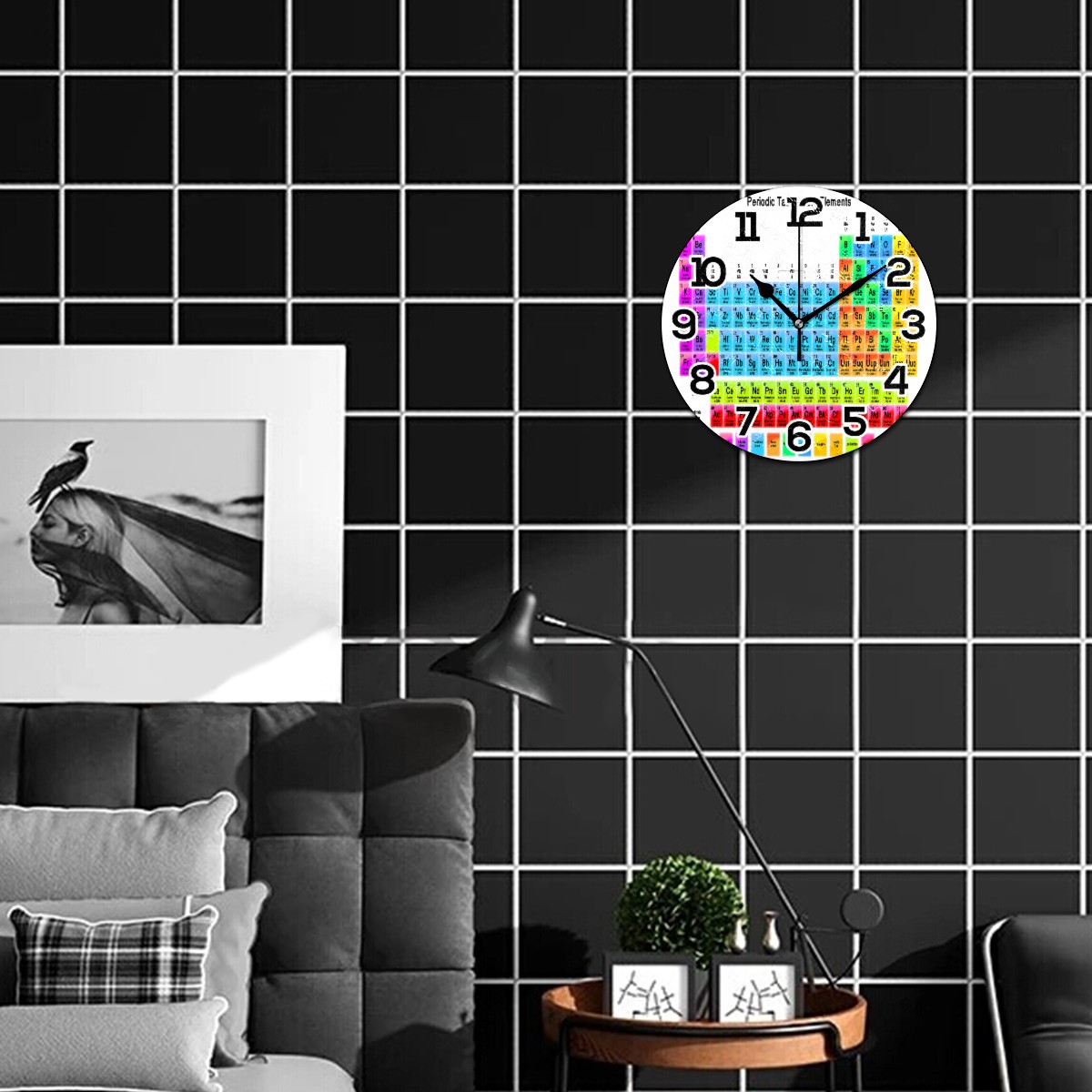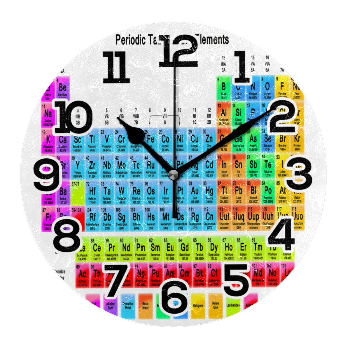 Periodic Table Of The Elements Clock Wall Decor Acrylic Decorative Round Battery Operated Wall Clocks for Home Bedroom Living Room Decor Silent Non Ticking