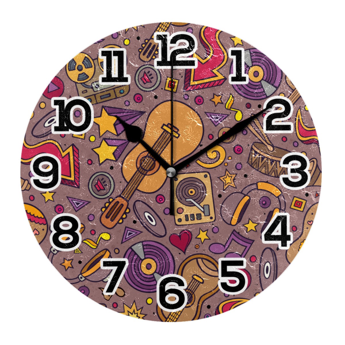 Musical Piano Notes Pattern Clock Wall Decor Acrylic Decorative Round Battery Operated Wall Clocks for Home Bedroom Living Room Decor Silent Non Ticking