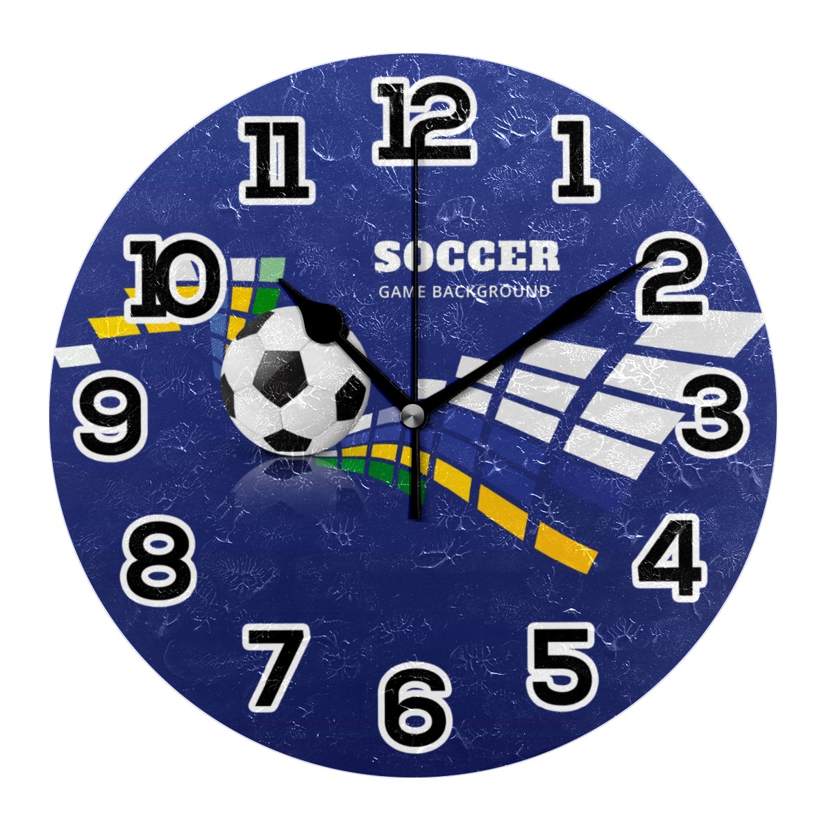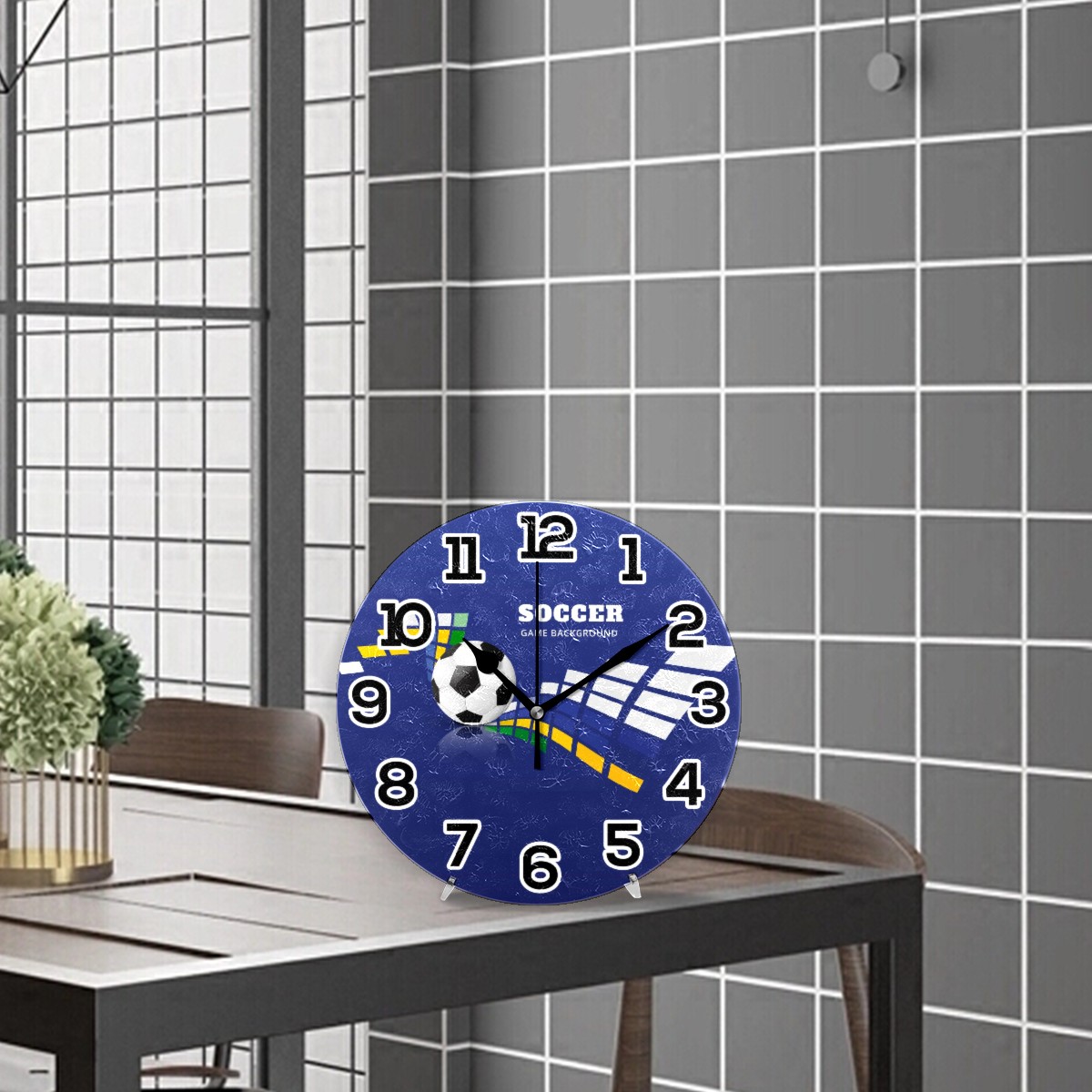 Soccer Ball Sport Blue Clock Wall Decor Acrylic Decorative Round Battery Operated Wall Clocks for Home Bedroom Living Room Decor Silent Non Ticking