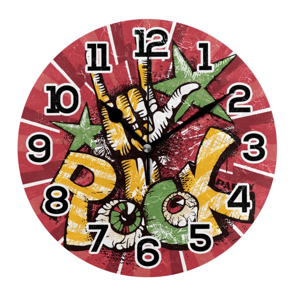 Musical Rock Stars Funny Clock Wall Decor Acrylic Decorative Round Battery Operated Wall Clocks for Home Bedroom Living Room Decor Silent Non Ticking