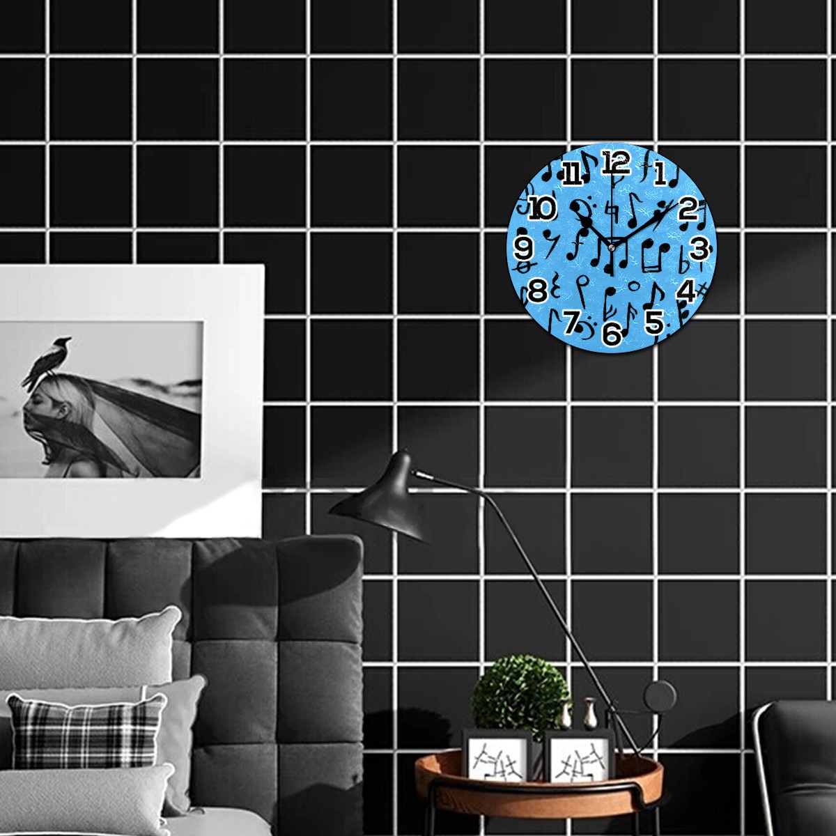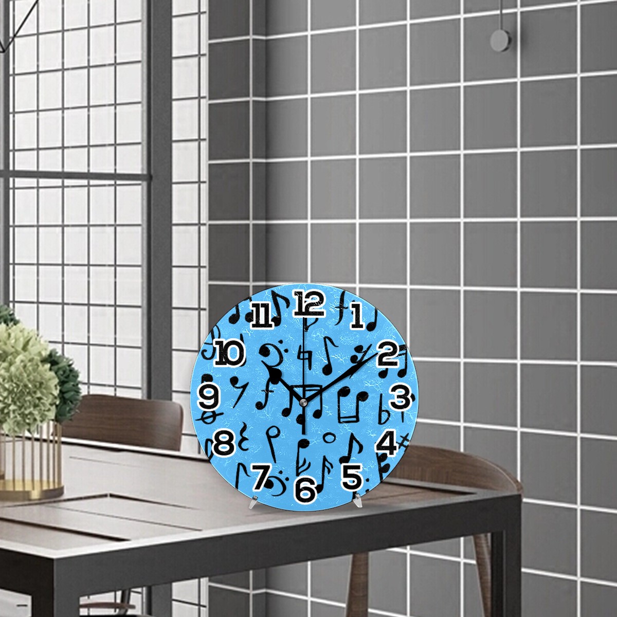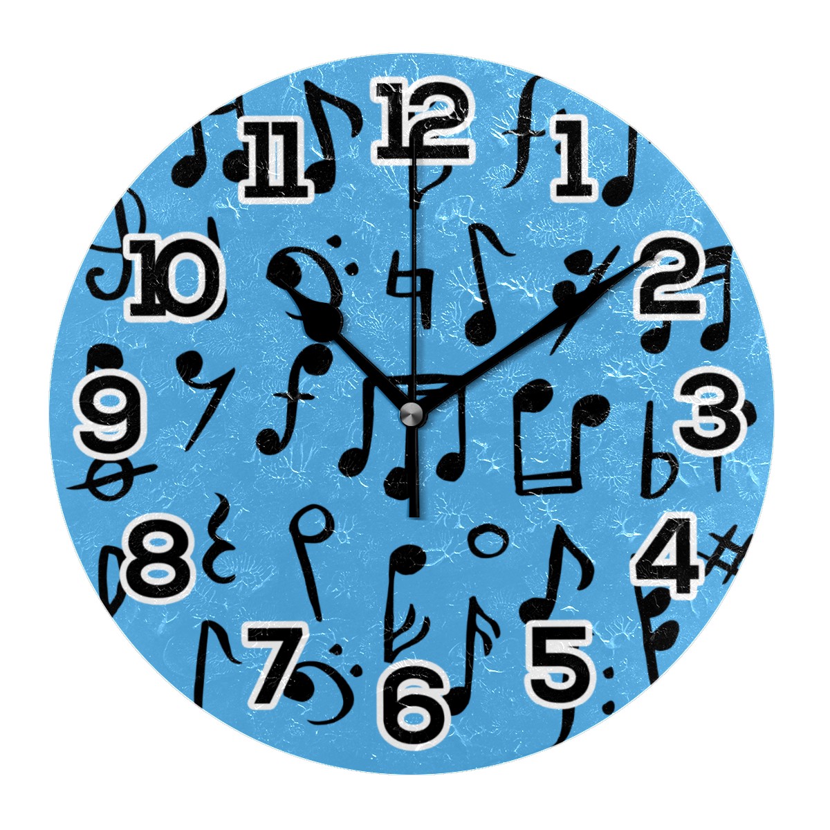 Musical Notes Blue Pattern Clock Wall Decor Acrylic Decorative Round Battery Operated Wall Clocks for Home Bedroom Living Room Decor Silent Non Ticking