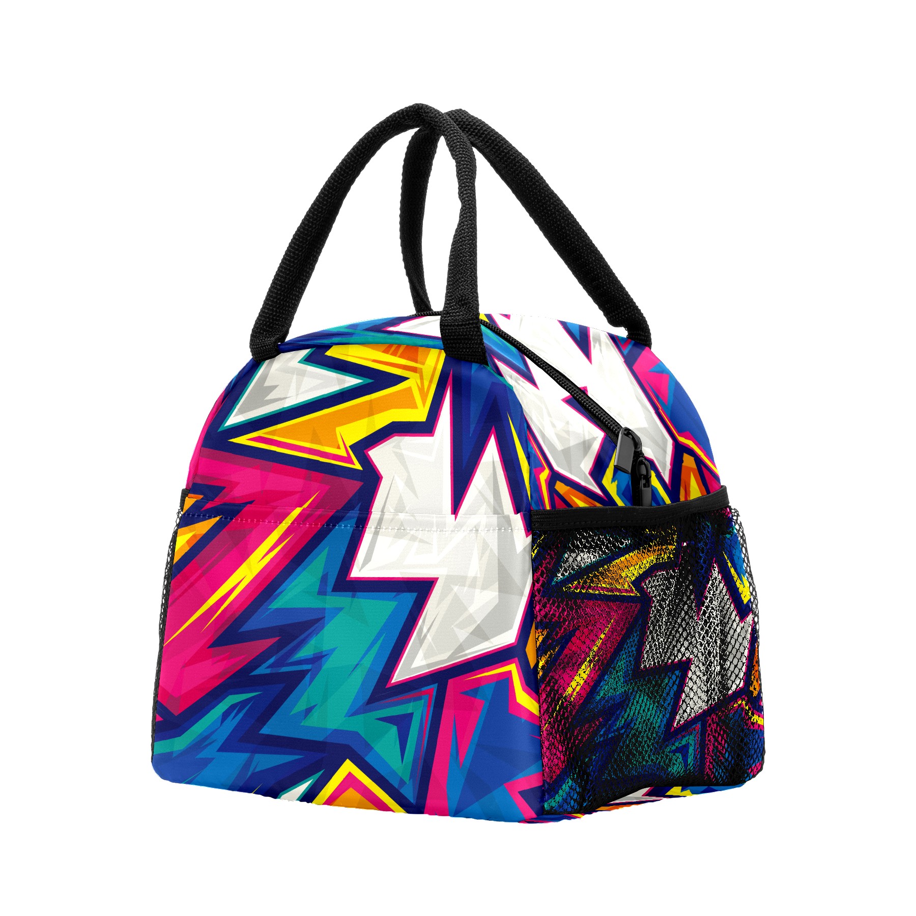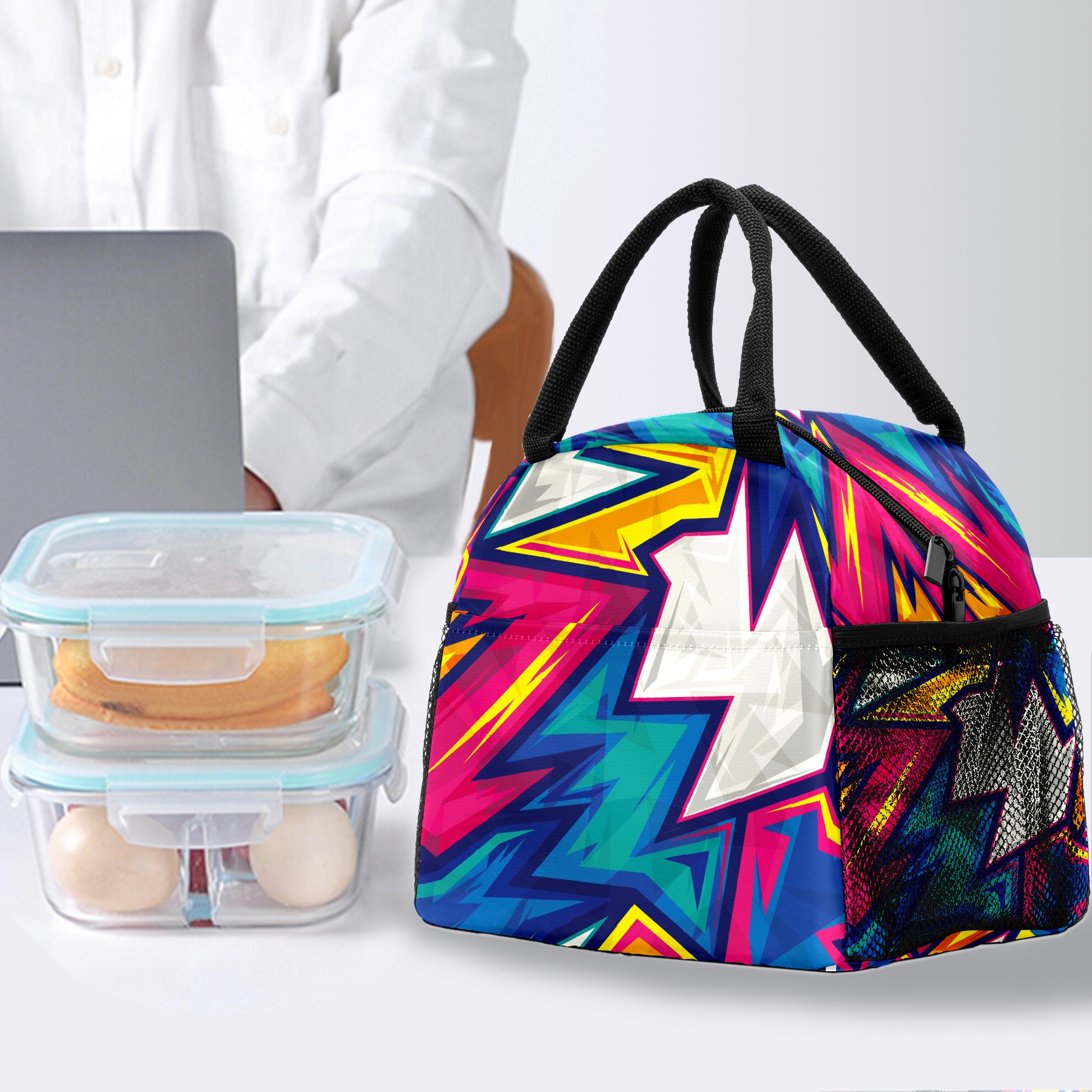Lunch Bag for Women Men, Colorful Abstract Lightning Pattern Insulated Reusable Lunch Box Thermal Cooler Tote Bag for Work Picnic Hiking Travel Beach