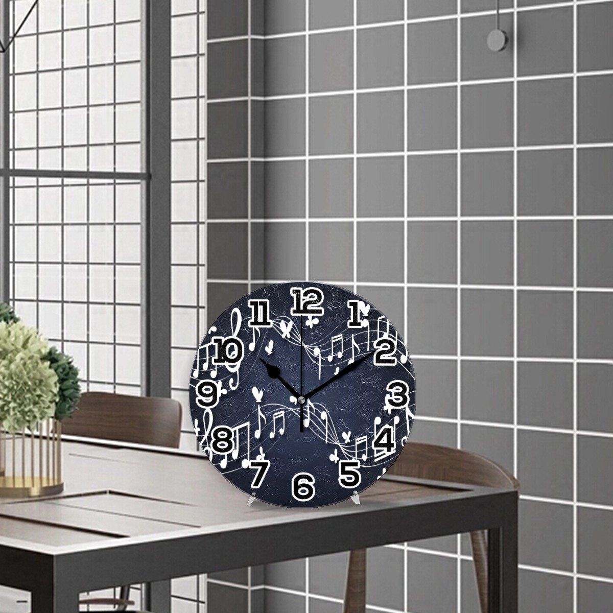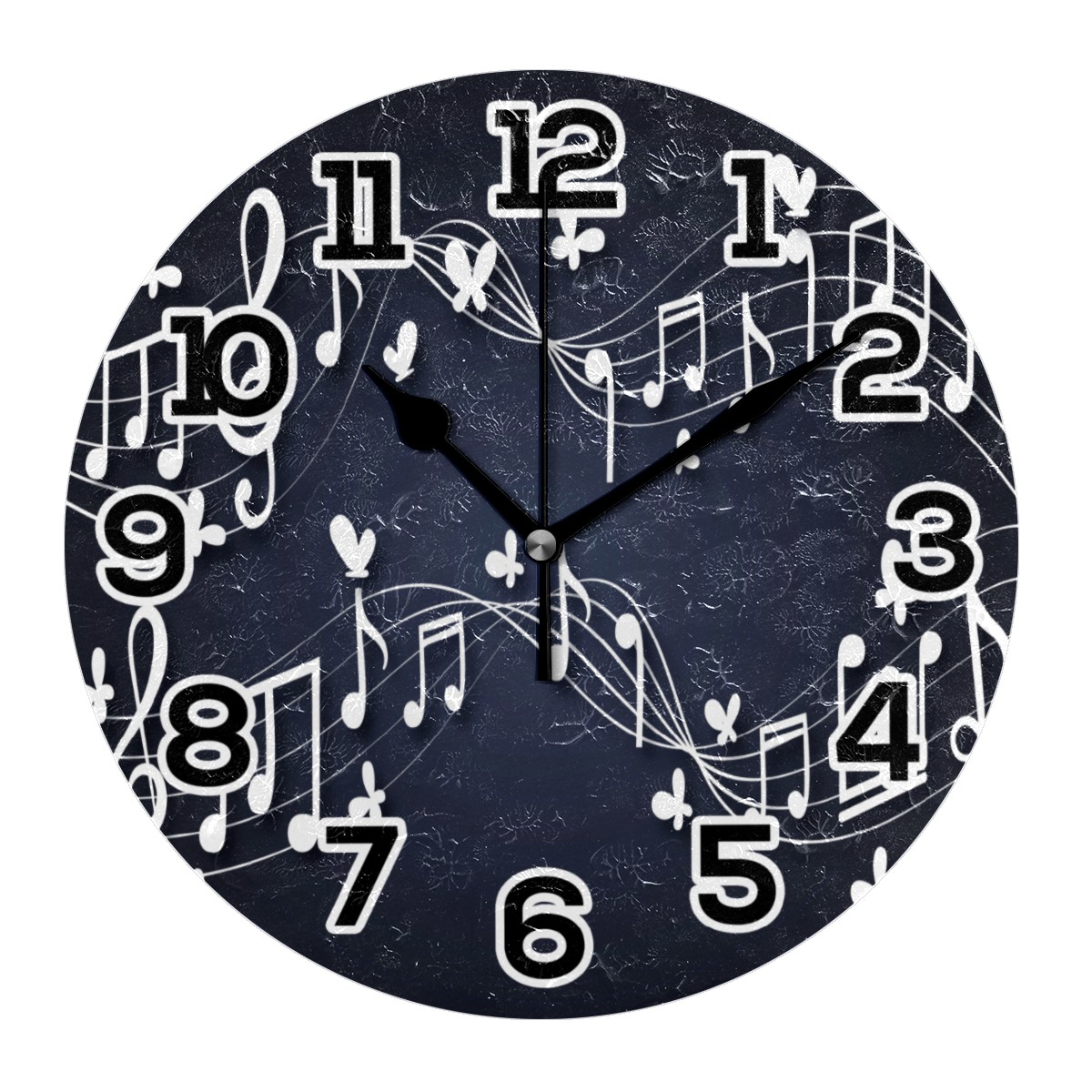 Music Note With Butterlfy Clock Wall Decor Acrylic Decorative Round Battery Operated Wall Clocks for Home Bedroom Living Room Decor Silent Non Ticking