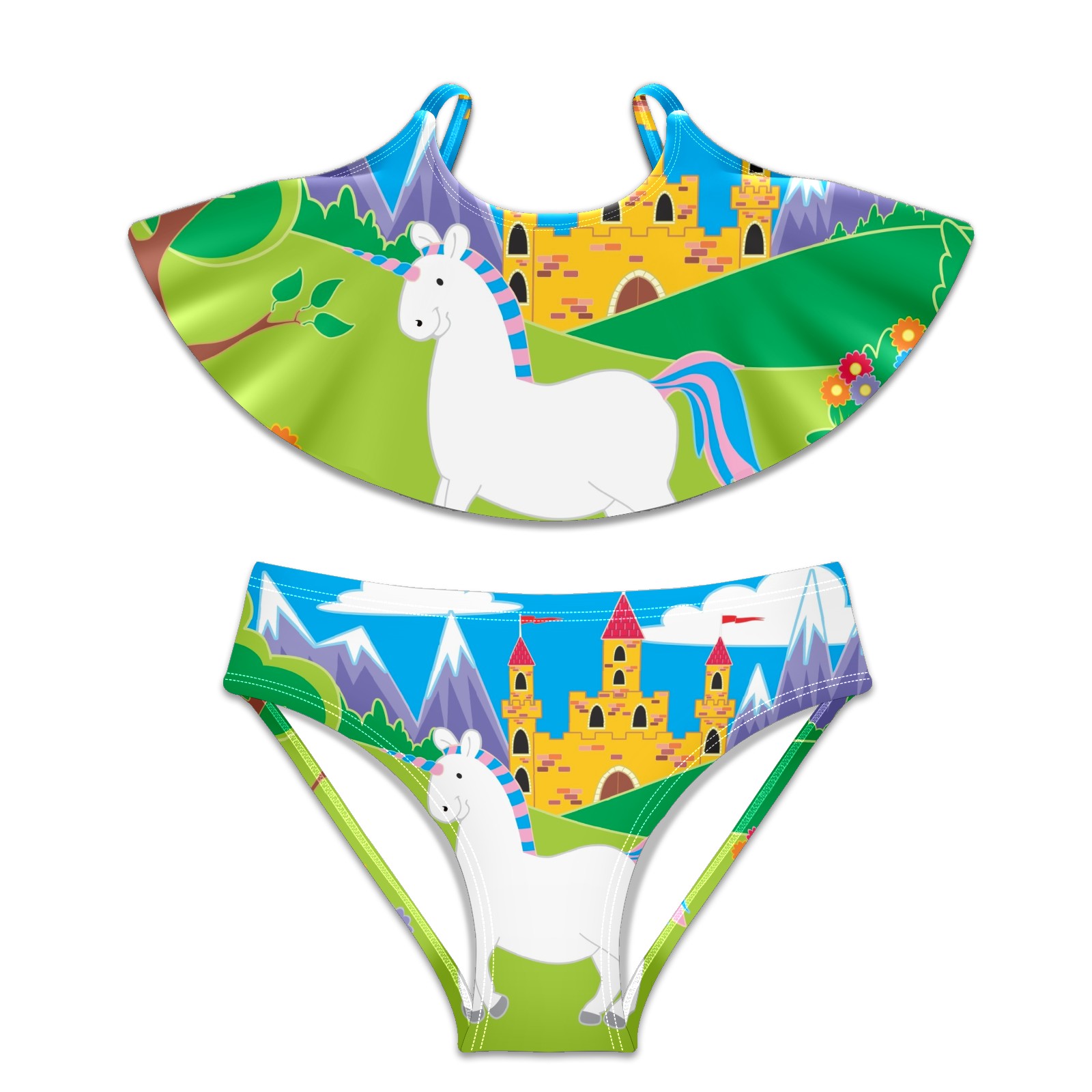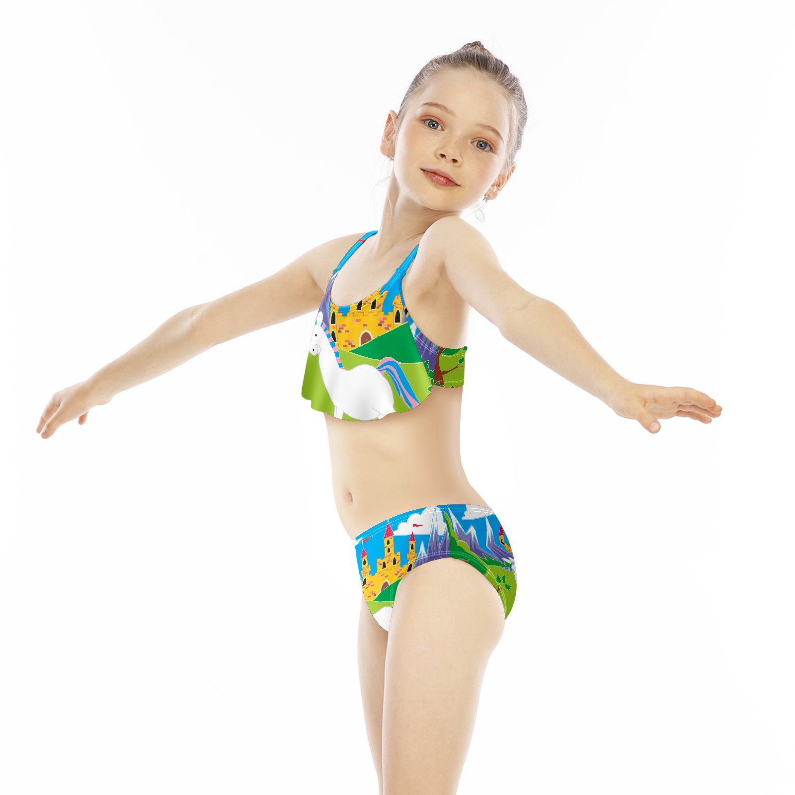 Swimsuits for Girls Two Pieces Bathing Suit Quick Dry Swimwear Unicorn Fairy Tale S