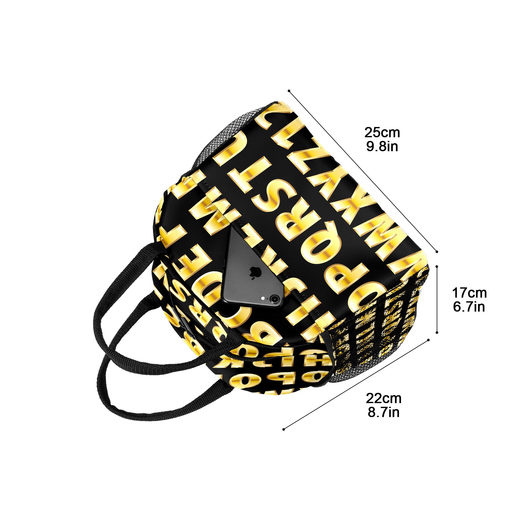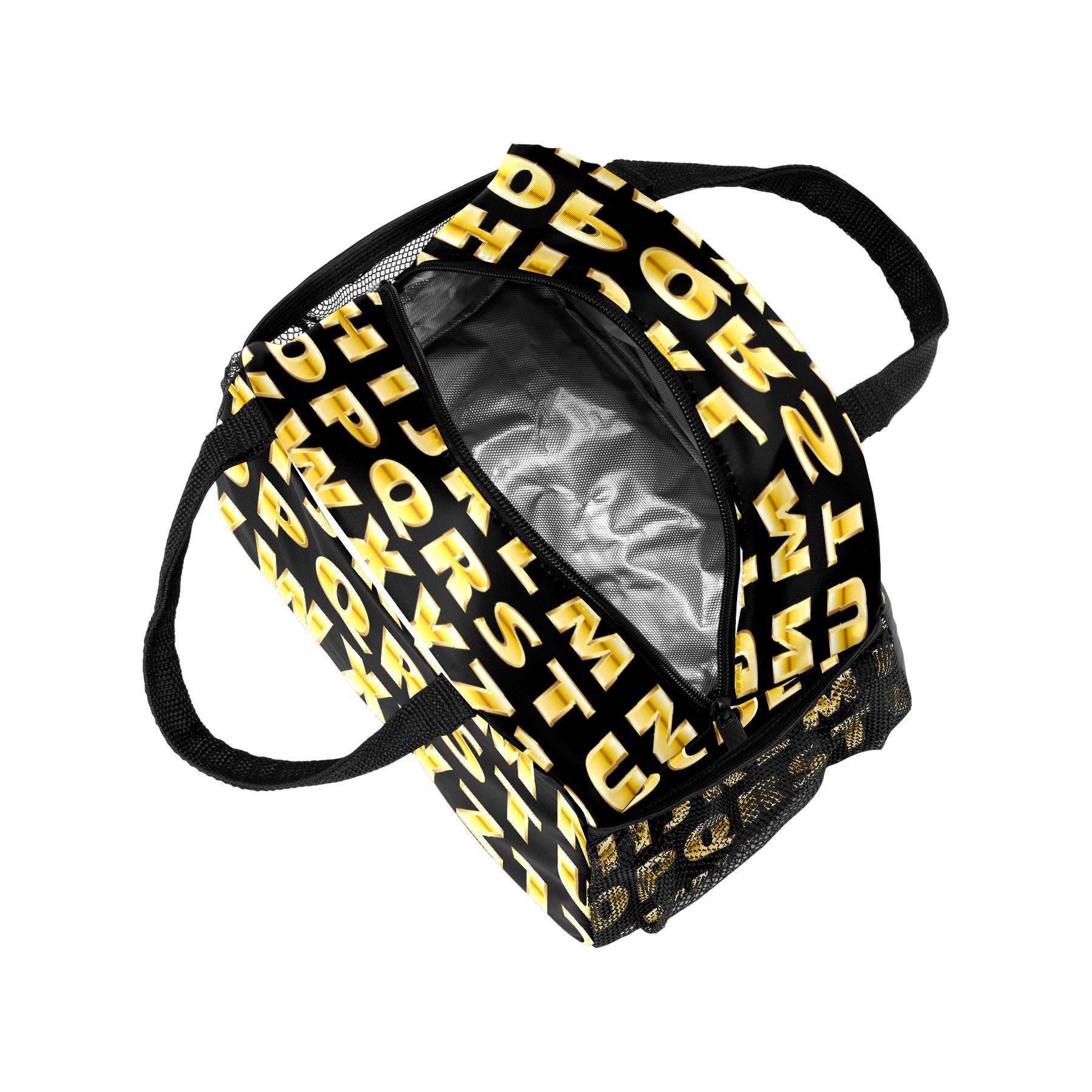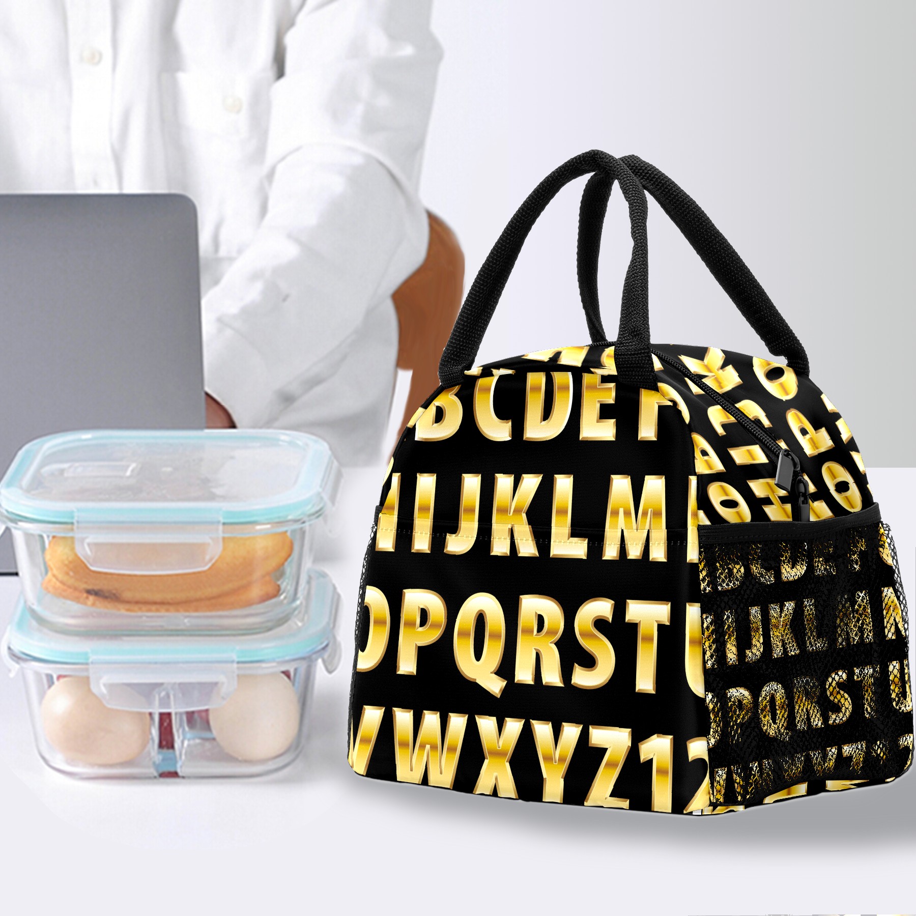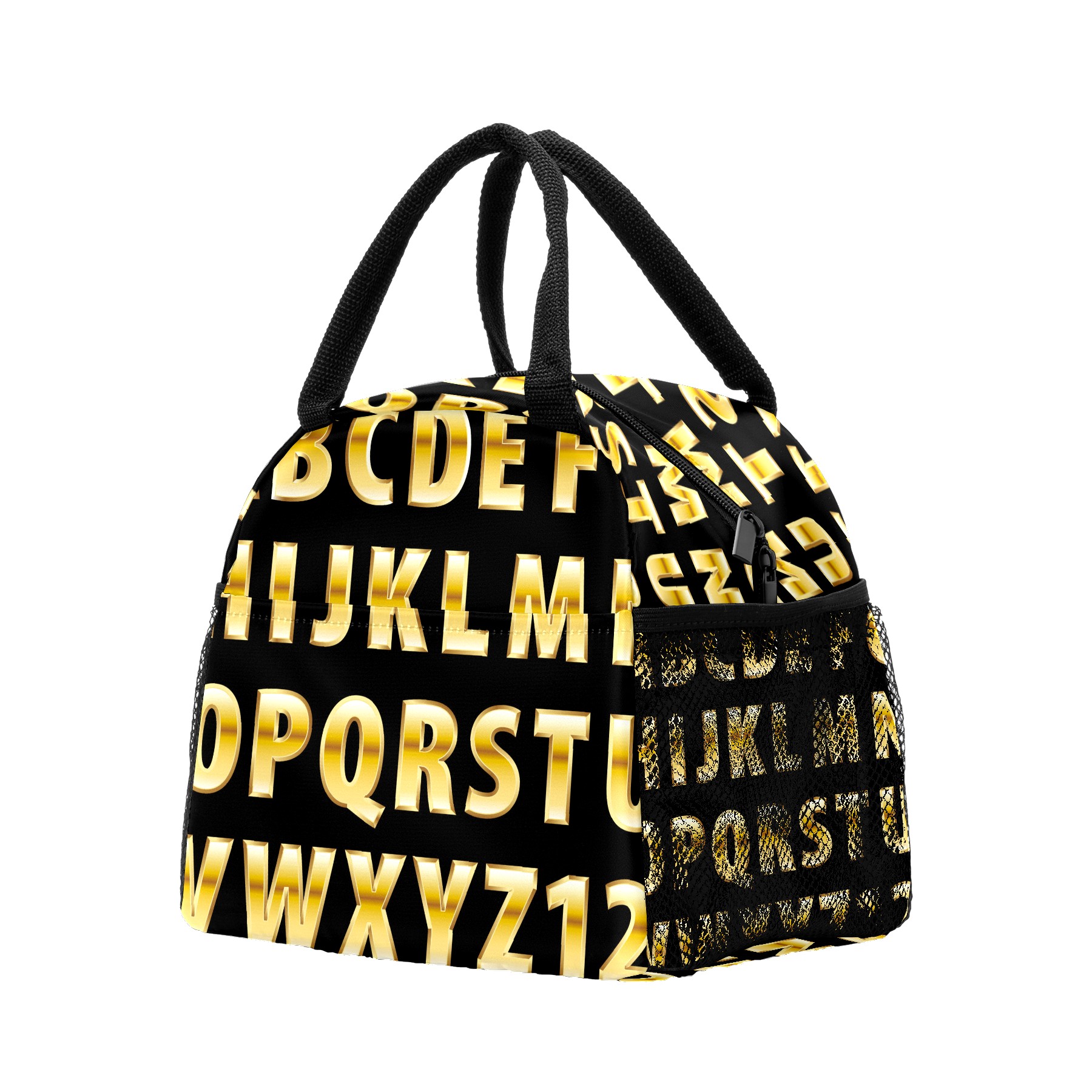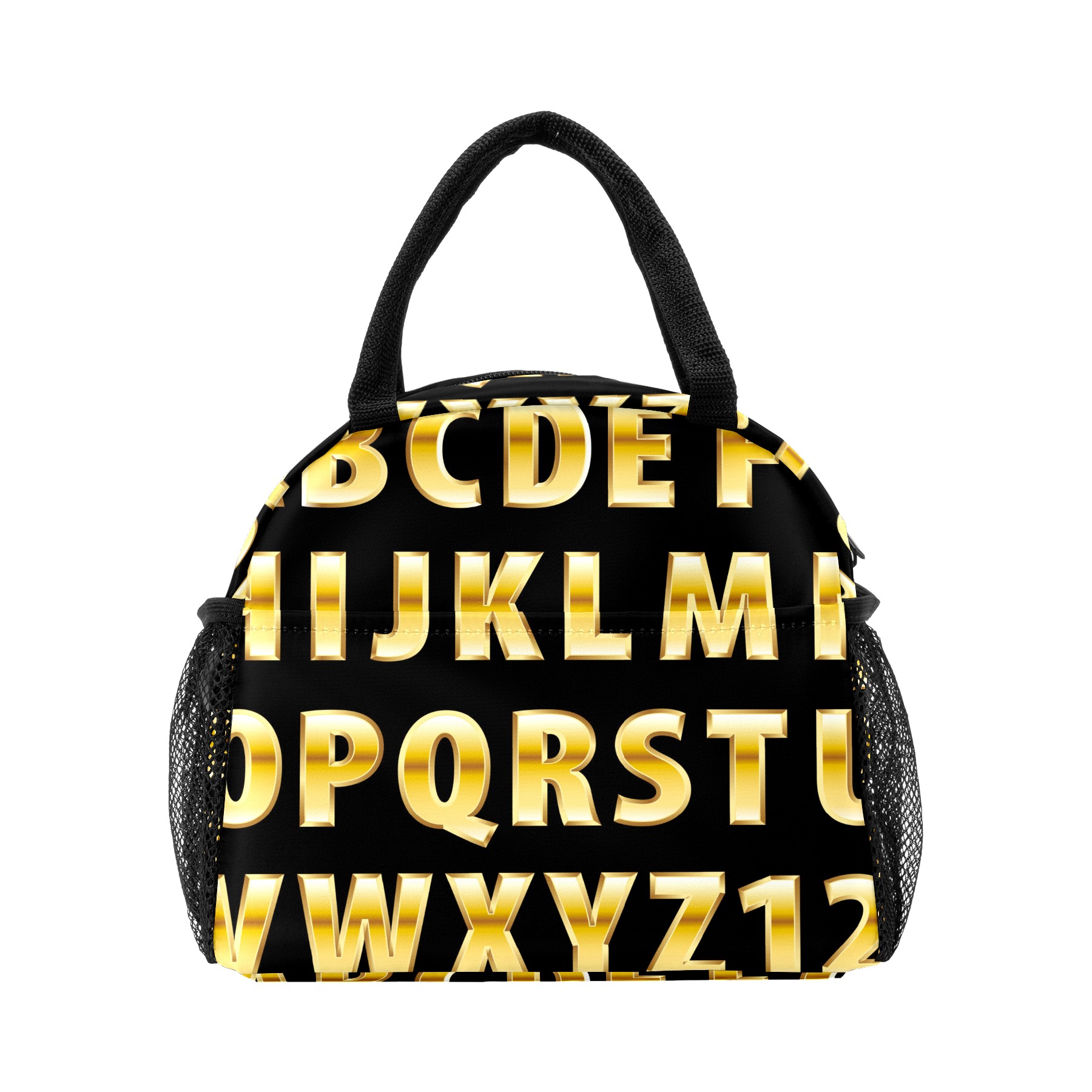 Lunch Bag for Women Men, Educational Alphabet Golden Insulated Reusable Lunch Box Thermal Cooler Tote Bag for Work Picnic Hiking Travel Beach