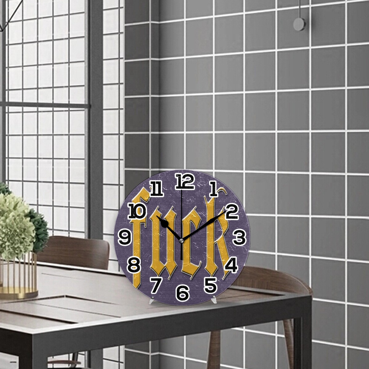 Funny Design Fuck Clock Wall Decor Acrylic Decorative Round Battery Operated Wall Clocks for Home Bedroom Living Room Decor Silent Non Ticking