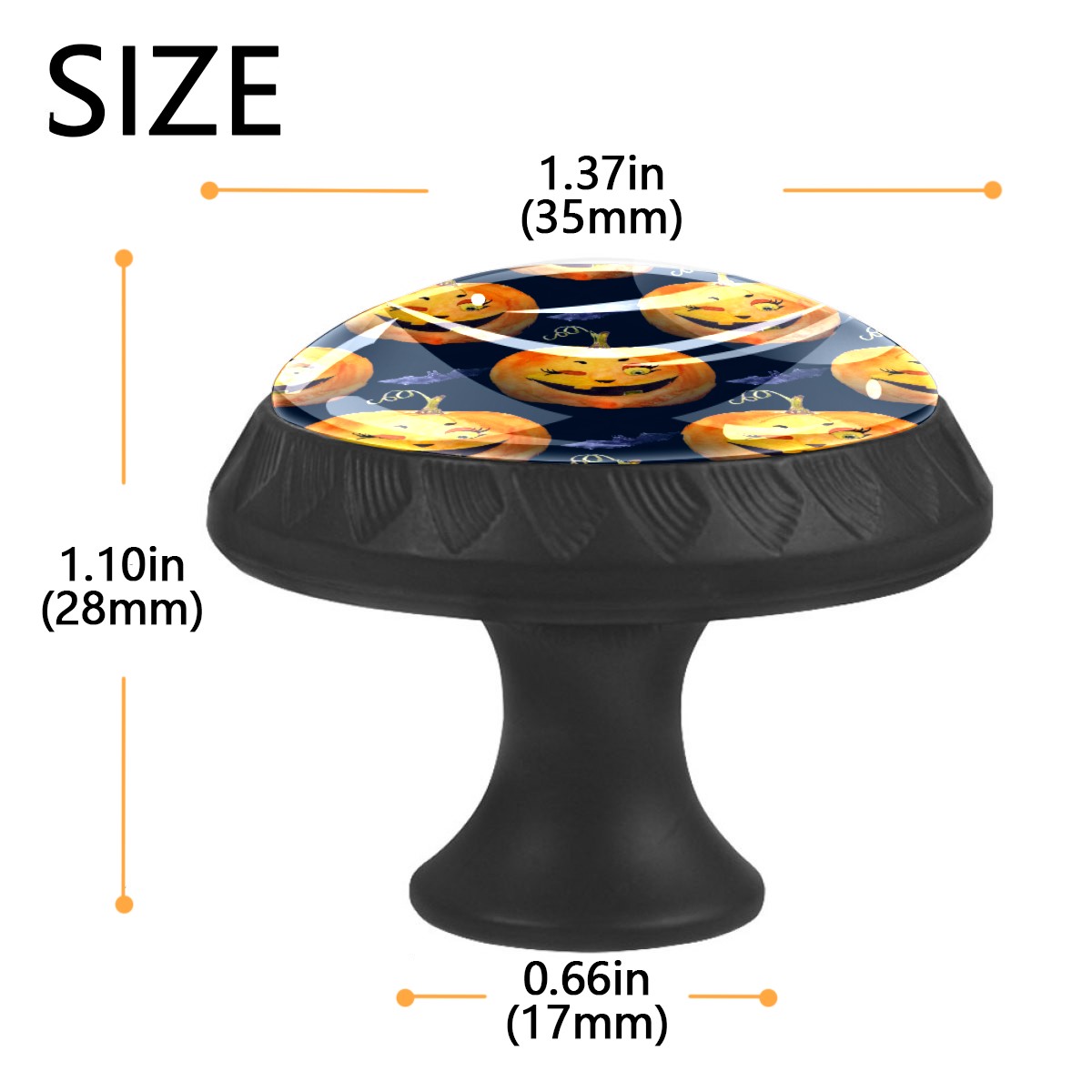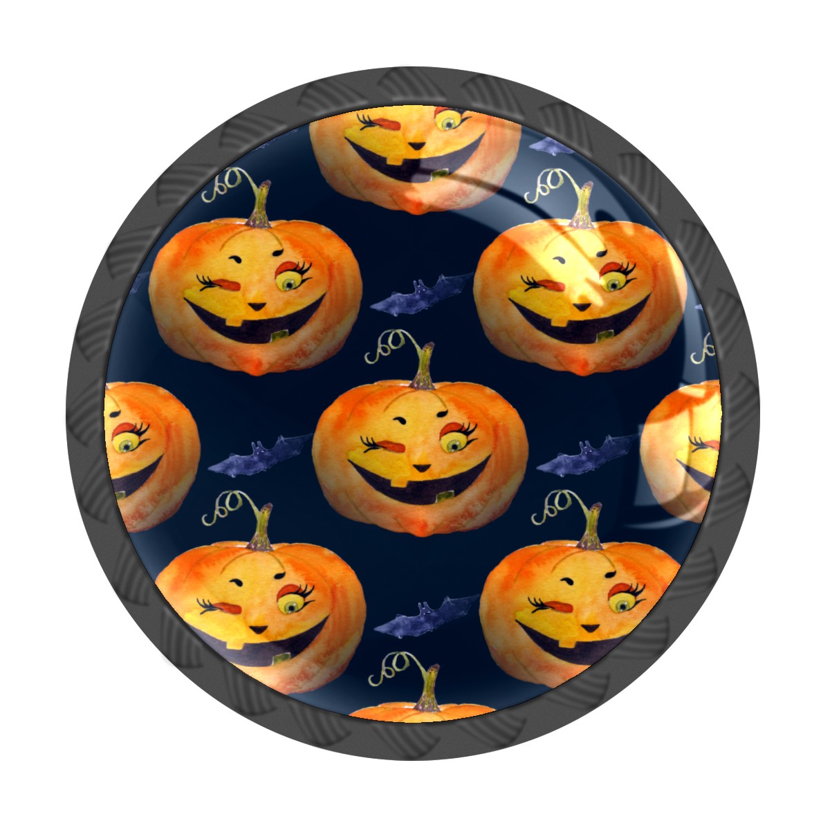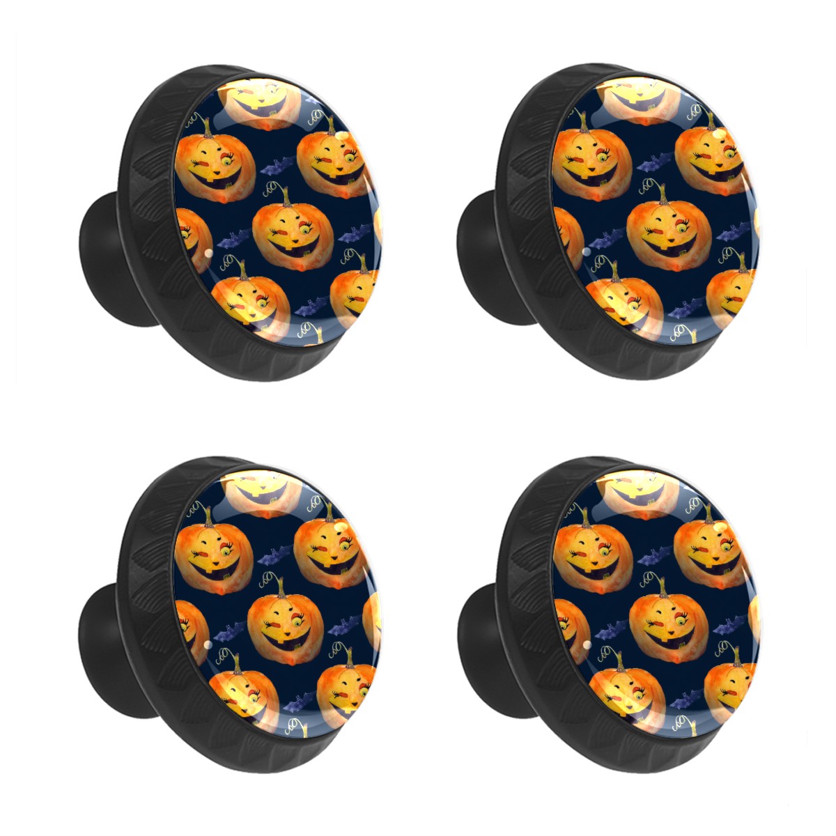 Cabinet Drawer Knobs Set of 4 Halloween Orange Pumpkin Smile Face Bat Dark Blue Cabinet Furniture Knobs Drawer Pulls Handle Crystal Glass Round Cupboard Knobs with Screws for Cabinets Kitchen Dresser Wardrobe DIY