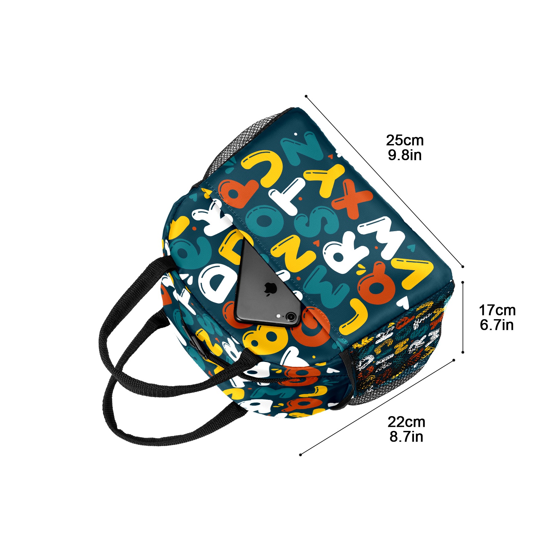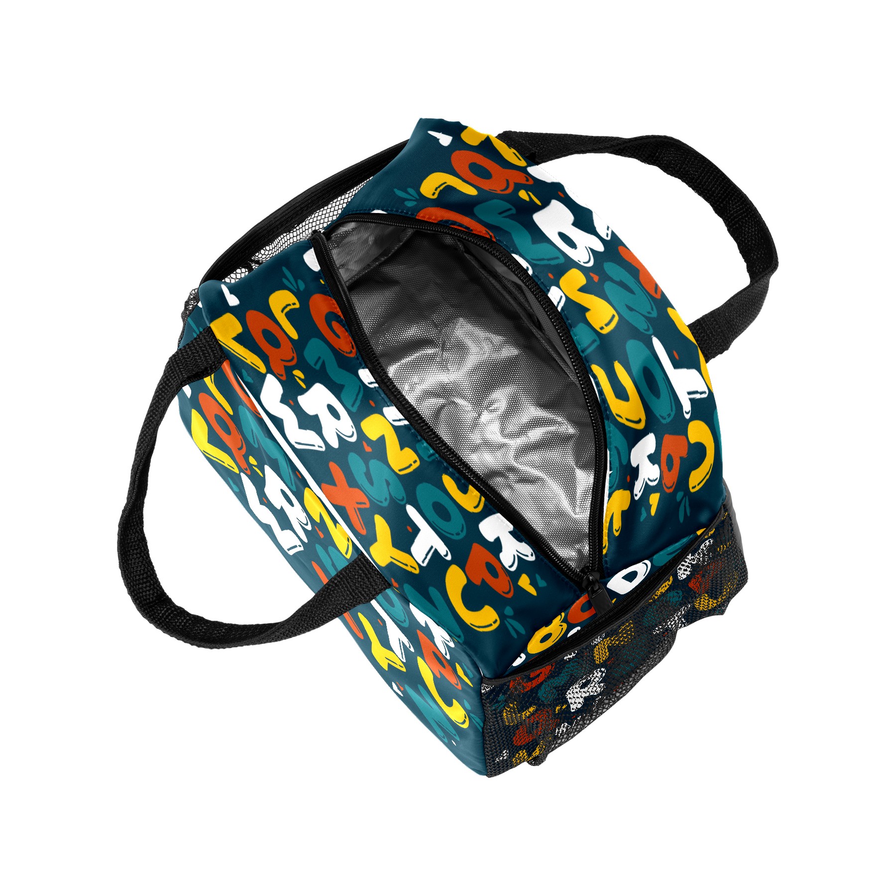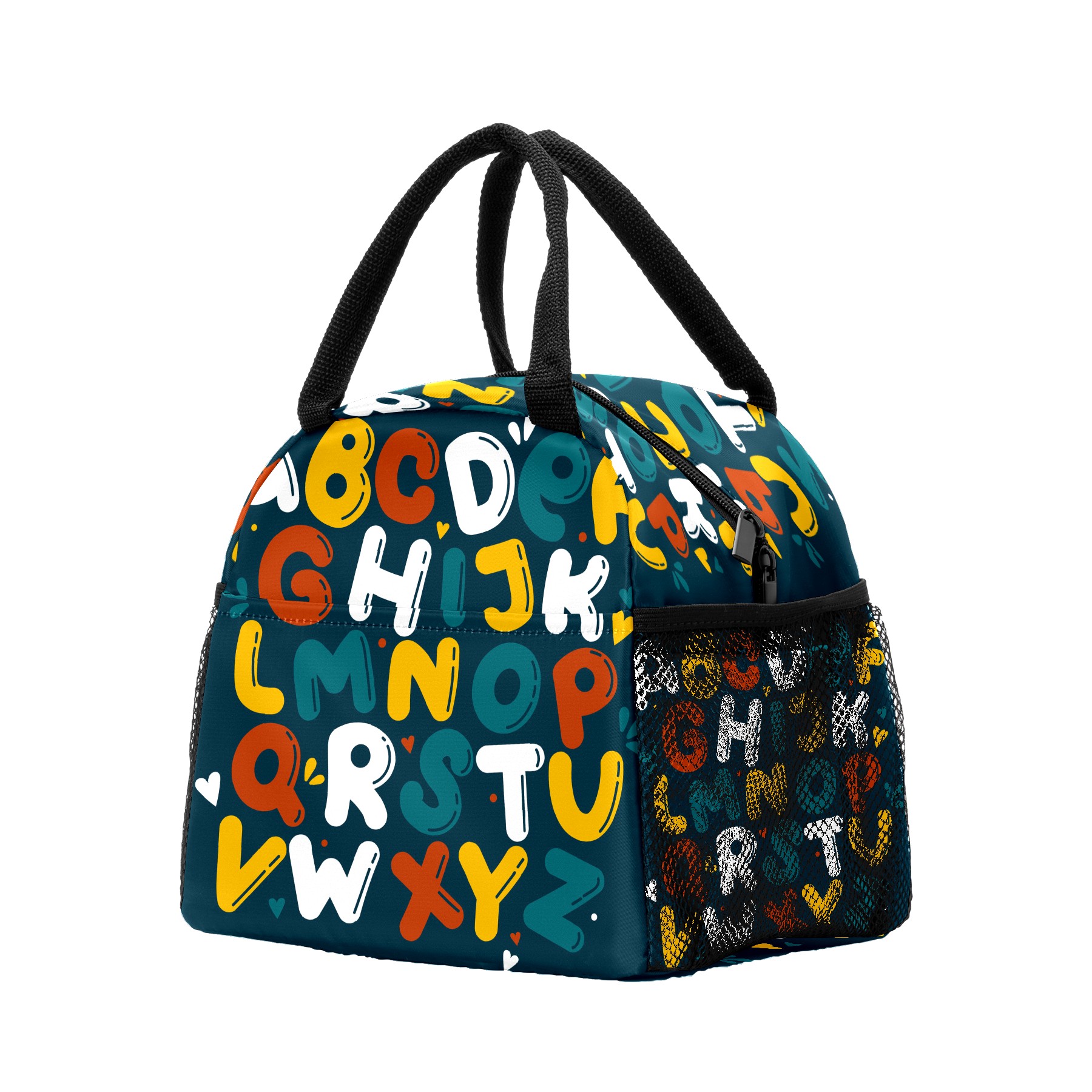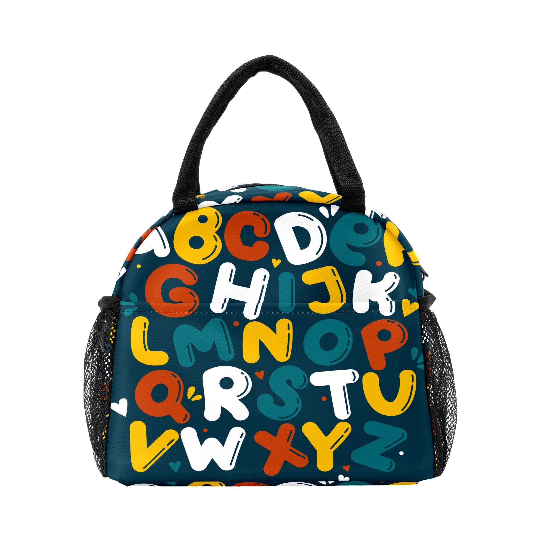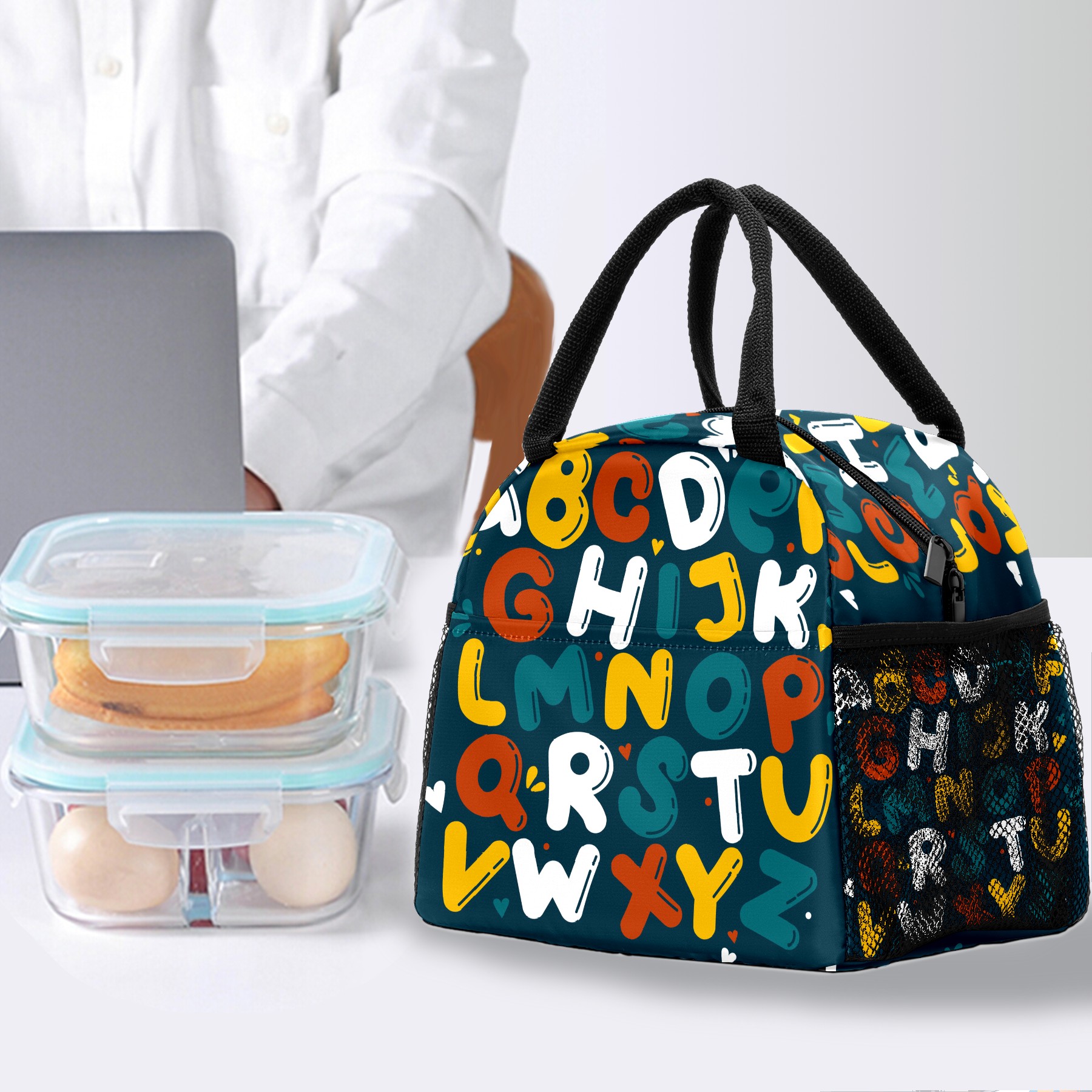 Lunch Bag for Women Men, Cartoon Kids Educational Alphabet Insulated Reusable Lunch Box Thermal Cooler Tote Bag for Work Picnic Hiking Travel Beach