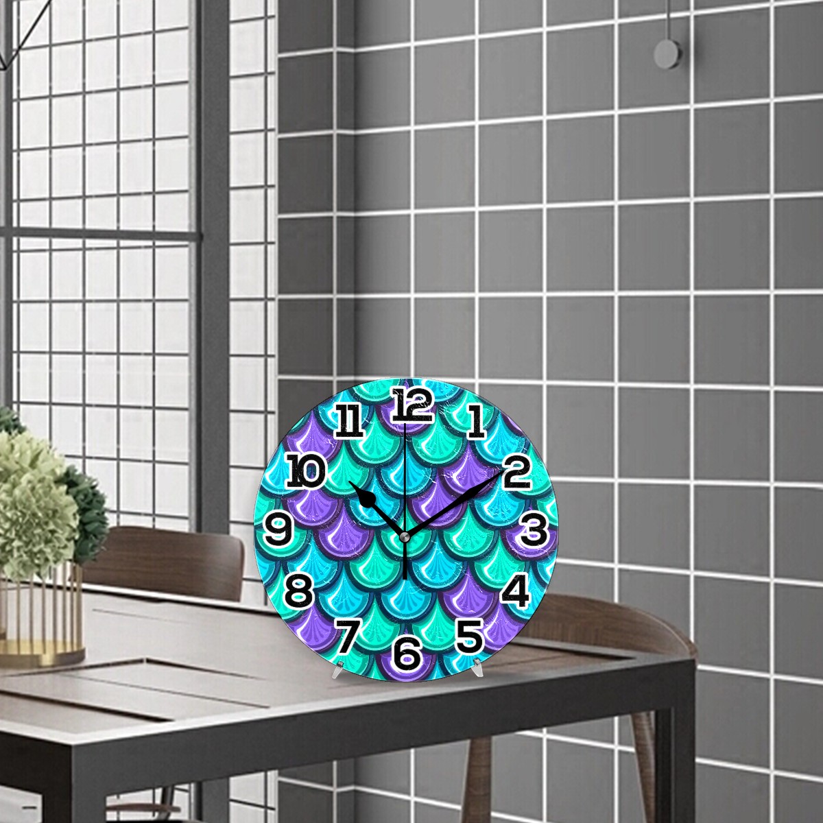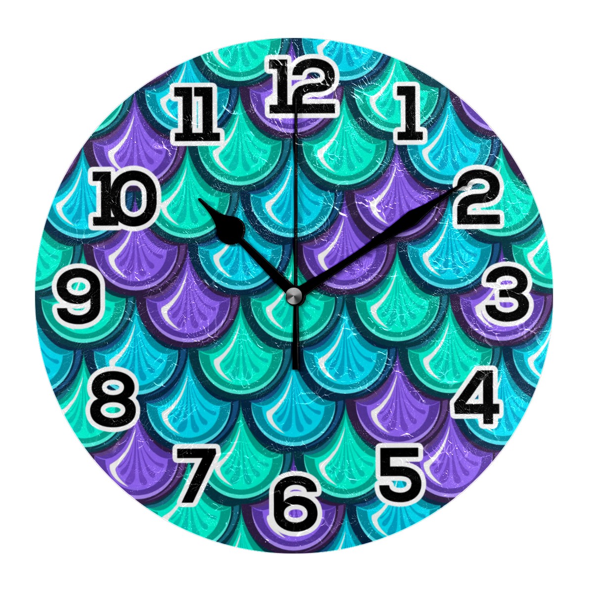 Colorful Mermaid Scales Clock Wall Decor Acrylic Decorative Round Battery Operated Wall Clocks for Home Bedroom Living Room Decor Silent Non Ticking