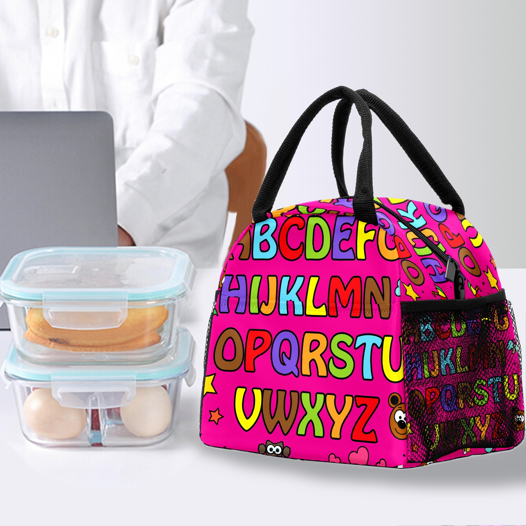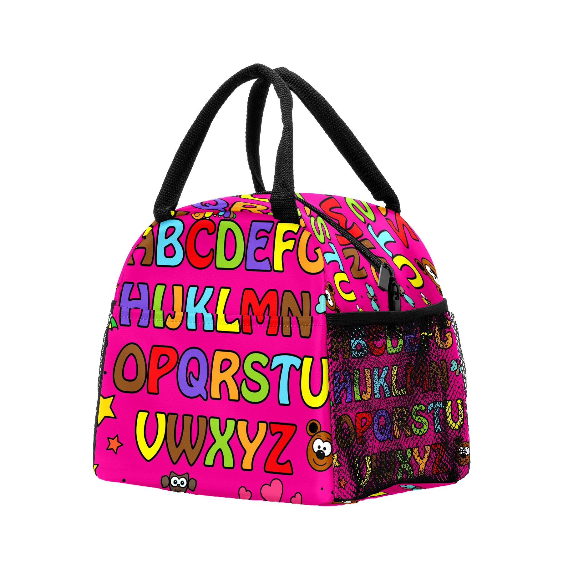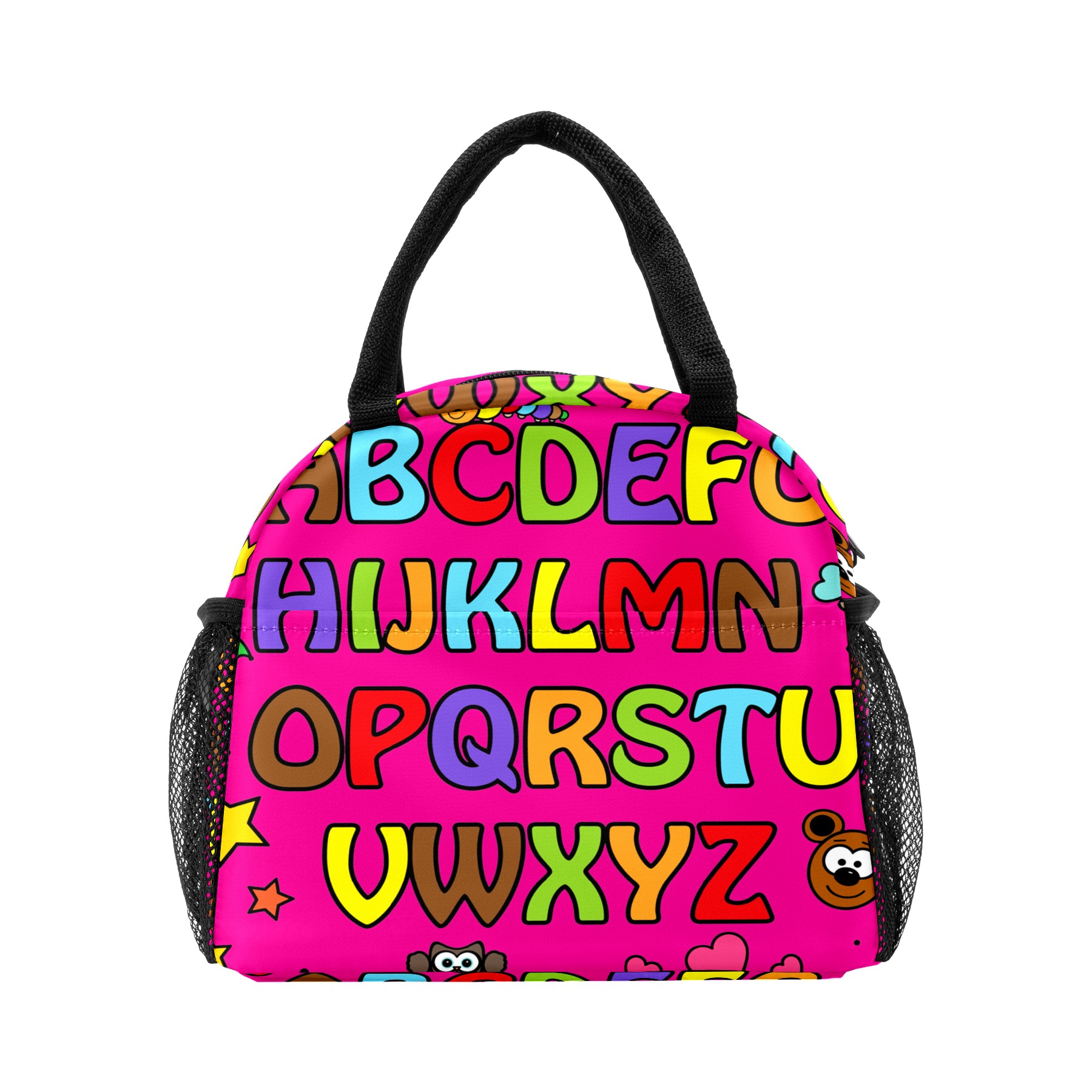 Lunch Bag for Women Men, Cartoon Pink Educational Alphabet Insulated Reusable Lunch Box Thermal Cooler Tote Bag for Work Picnic Hiking Travel Beach