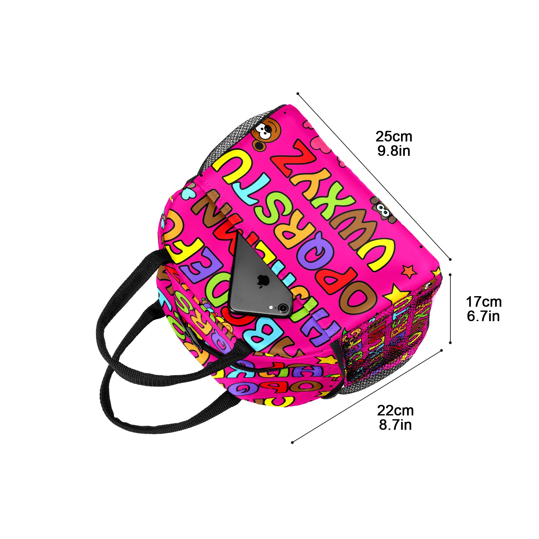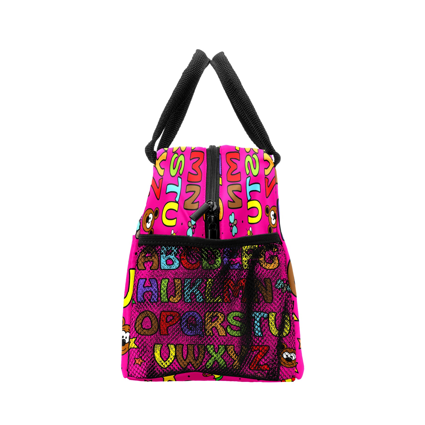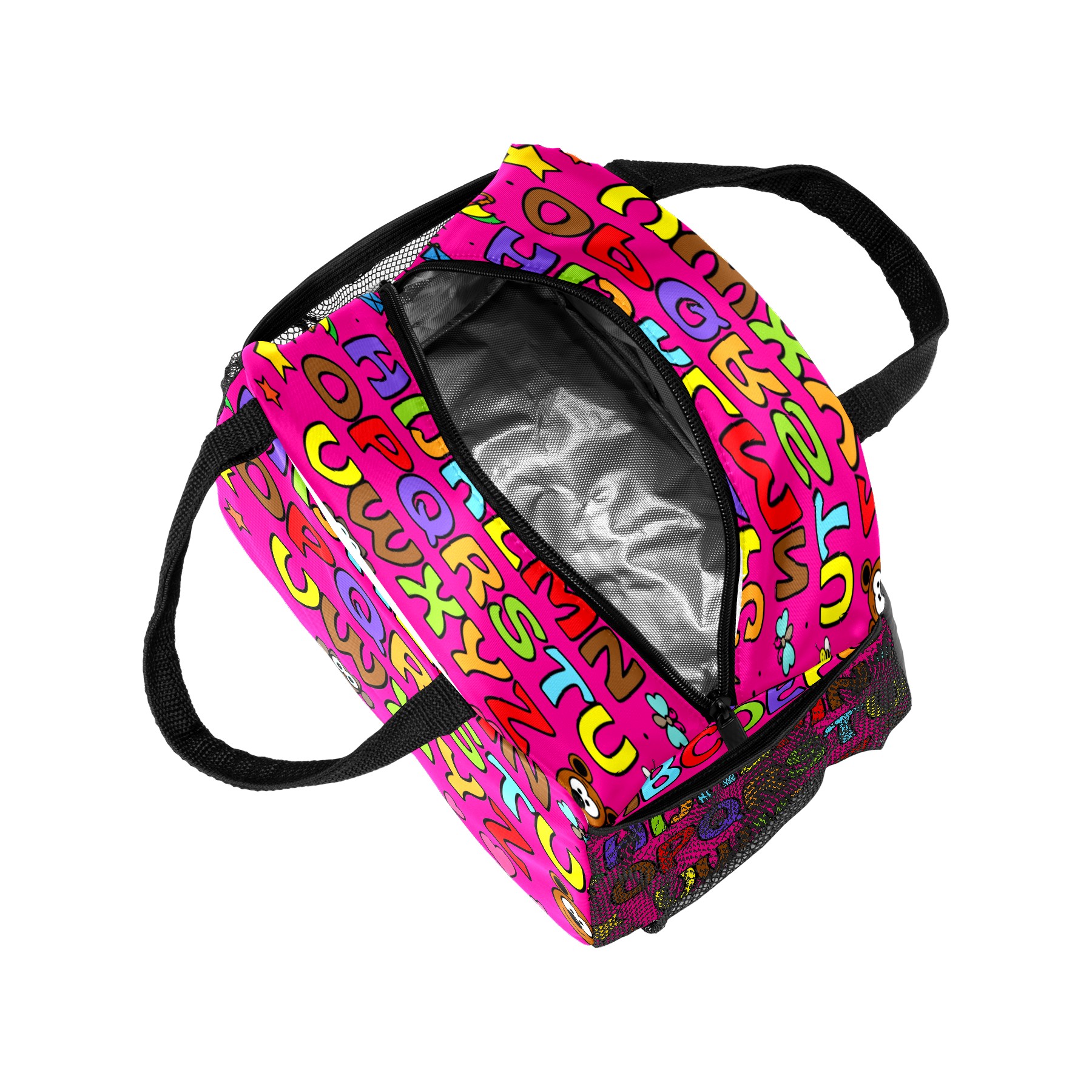 Lunch Bag for Women Men, Cartoon Pink Educational Alphabet Insulated Reusable Lunch Box Thermal Cooler Tote Bag for Work Picnic Hiking Travel Beach
