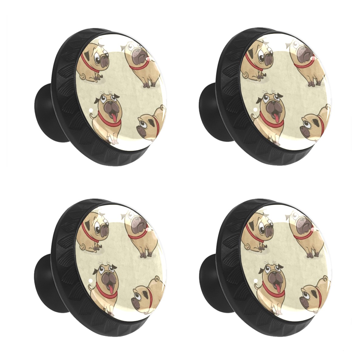Cabinet Drawer Knobs Set of 4 Cute Four Pug Dogs Cabinet Furniture Knobs Drawer Pulls Handle Crystal Glass Round Cupboard Knobs with Screws for Cabinets Kitchen Dresser Wardrobe DIY