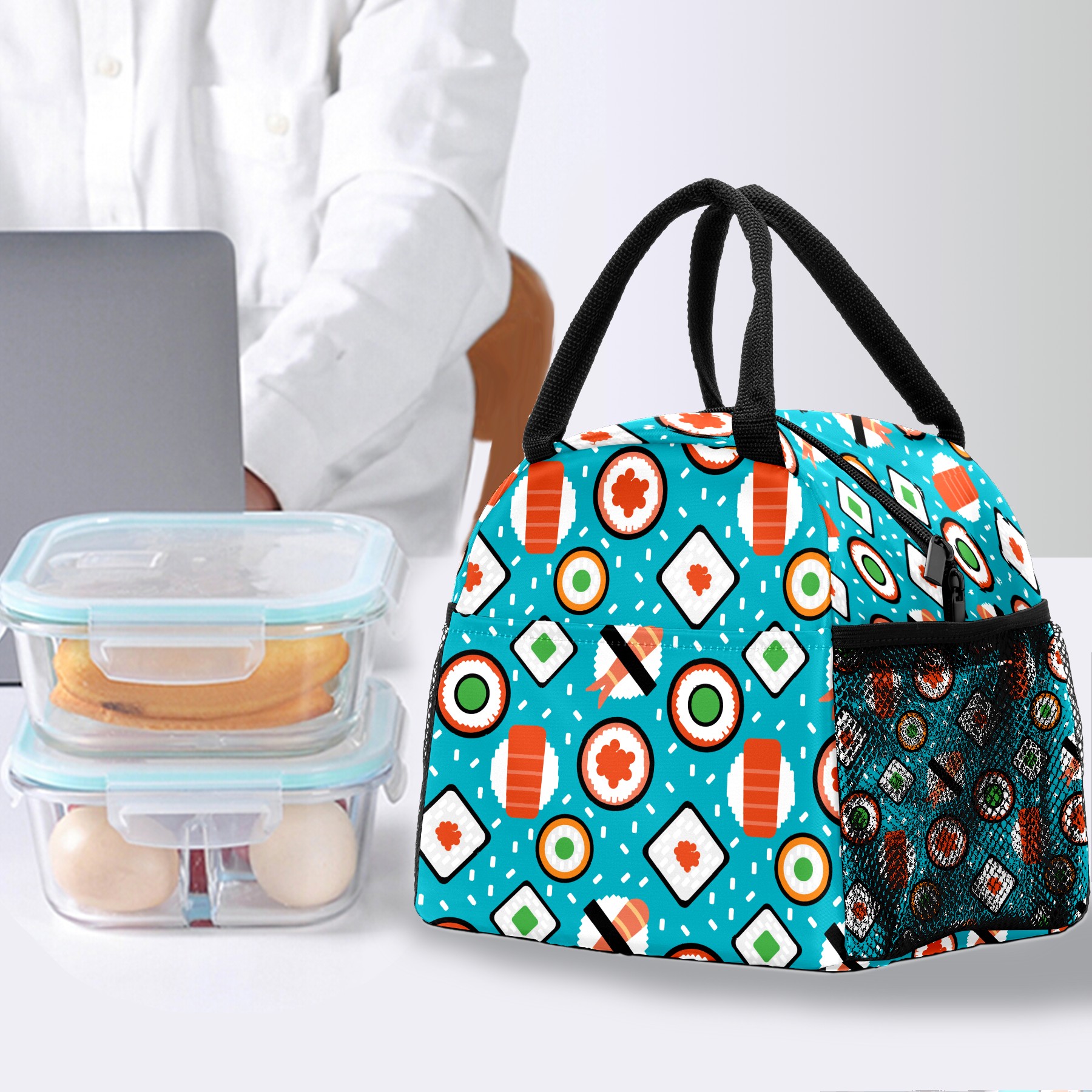 Lunch Bag for Women Men, Yummy Japanese Sushi Food Pattern Insulated Reusable Lunch Box Thermal Cooler Tote Bag for Work Picnic Hiking Travel Beach