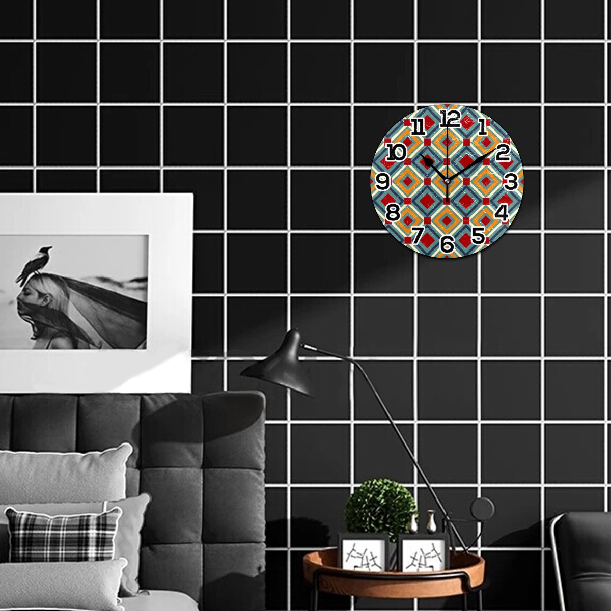 <p>Our wall clock is perfect for hanging outdoors or indoors,&nbsp; living room, bedroom, kitchen, bathroom, office, dining room, sewing room or any other room. Beautify your space, bring different color to your space. It is not only a decoration, but also a great gift for Christmas/Birthday/Kids/Family/Friend.</p><p></p><p>Product Size: 9.5" diameter x 0.25" thickness;</p><p></p><p>Material: MDF frame, Wood mechanism housing, Metal clock hands.</p><p></p><p>Non ticking: Quiet sweep second hand, no ticking to ensure a good sleeping or working environment.</p><p></p><p>Power Source: 1 x AA battery(not included)</p><p></p><p>Package Included: ONE Wall Clock</p><p></p><p>LARGE NUMBER</p><p>Large white numbers on the dark wood dial face, easy to see from a distance or side. Perfect for grandpa and grandma, parents or any others have poor sight.</p><p>Silent Movement</p><p>Quality Scanning Quartz Movement ensure accurate time and absolutely silent environment. Not bother you reading, working, thinking, conversing or sleeping.</p><p>CUSTOMER SERIVCE</p><p>Please feel free to contact us if you have any questions.</p>