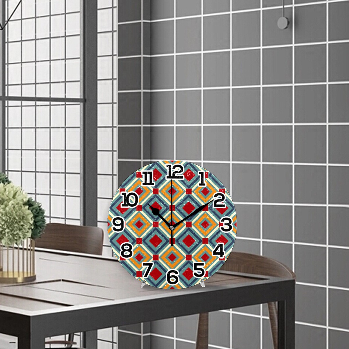 • <p>Our wall clock is perfect for hanging outdoors or indoors,&nbsp; living room, bedroom, kitchen, bathroom, office, dining room, sewing room or any other room. Beautify your space, bring different color to your space. It is not only a decoration, but also a great gift for Christmas/Birthday/Kids/Family/Friend.</p><p></p><p>Product Size: 9.5" diameter x 0.25" thickness;</p><p></p><p>Material: MDF frame, Wood mechanism housing, Metal clock hands.</p><p></p><p>Non ticking: Quiet sweep second hand, no ticking to ensure a good sleeping or working environment.</p><p></p><p>Power Source: 1 x AA battery(not included)</p><p></p><p>Package Included: ONE Wall Clock</p><p></p><p>LARGE NUMBER</p><p>Large white numbers on the dark wood dial face, easy to see from a distance or side. Perfect for grandpa and grandma, parents or any others have poor sight.</p><p>Silent Movement</p><p>Quality Scanning Quartz Movement ensure accurate time and absolutely silent environment. Not bother you reading, working, thinking, conversing or sleeping.</p><p>CUSTOMER SERIVCE</p><p>Please feel free to contact us if you have any questions.</p>