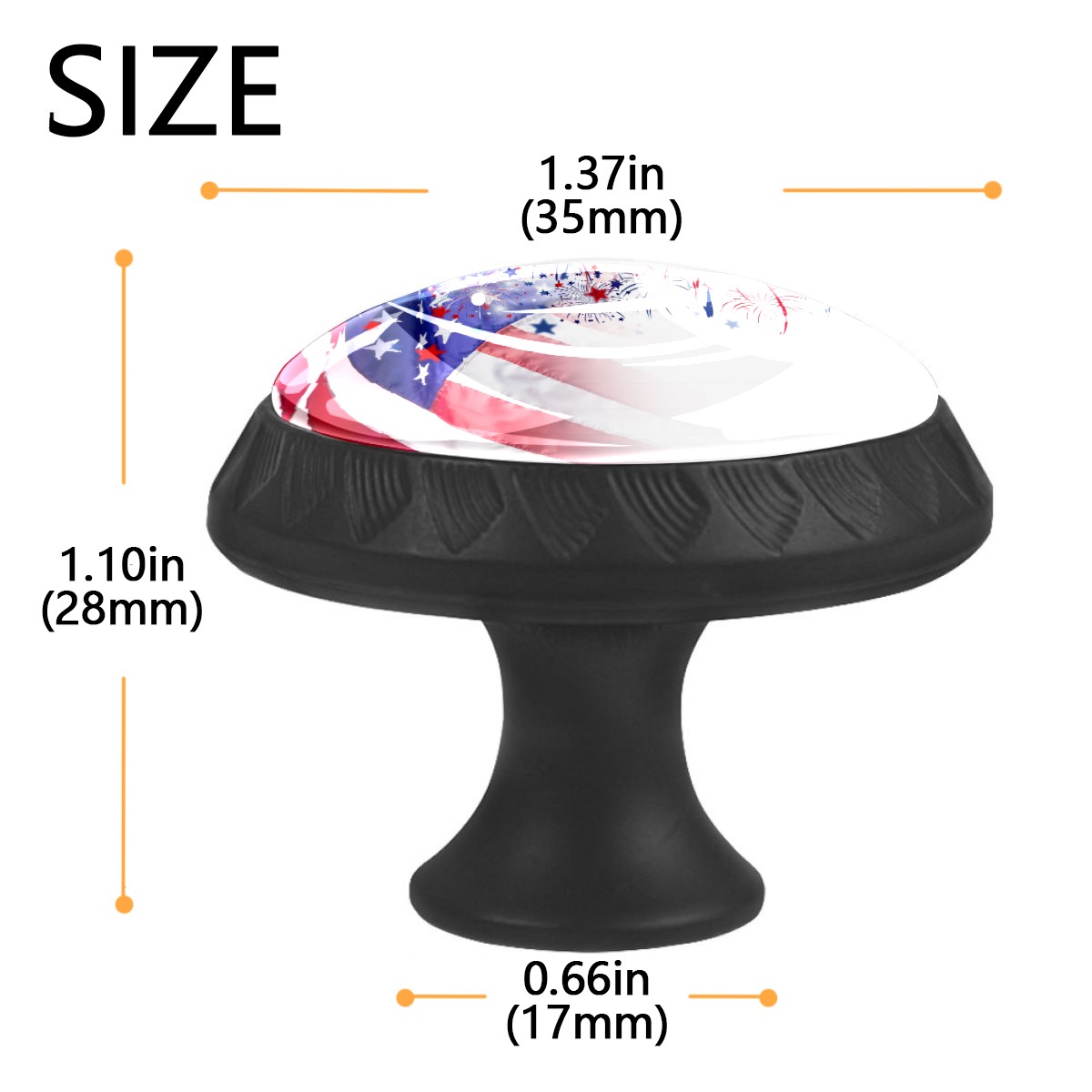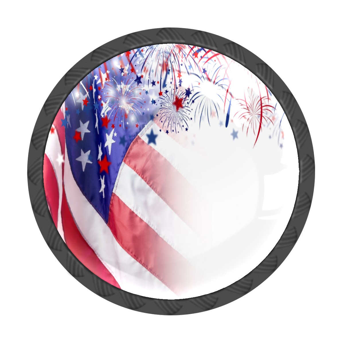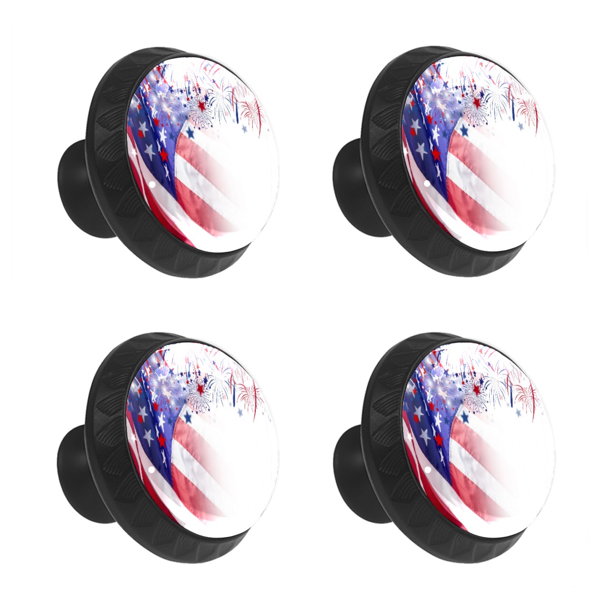 Cabinet Drawer Knobs Set of 4 July Fourth USA Flag Fireworks Cabinet Furniture Knobs Drawer Pulls Handle Crystal Glass Round Cupboard Knobs with Screws for Cabinets Kitchen Dresser Wardrobe DIY