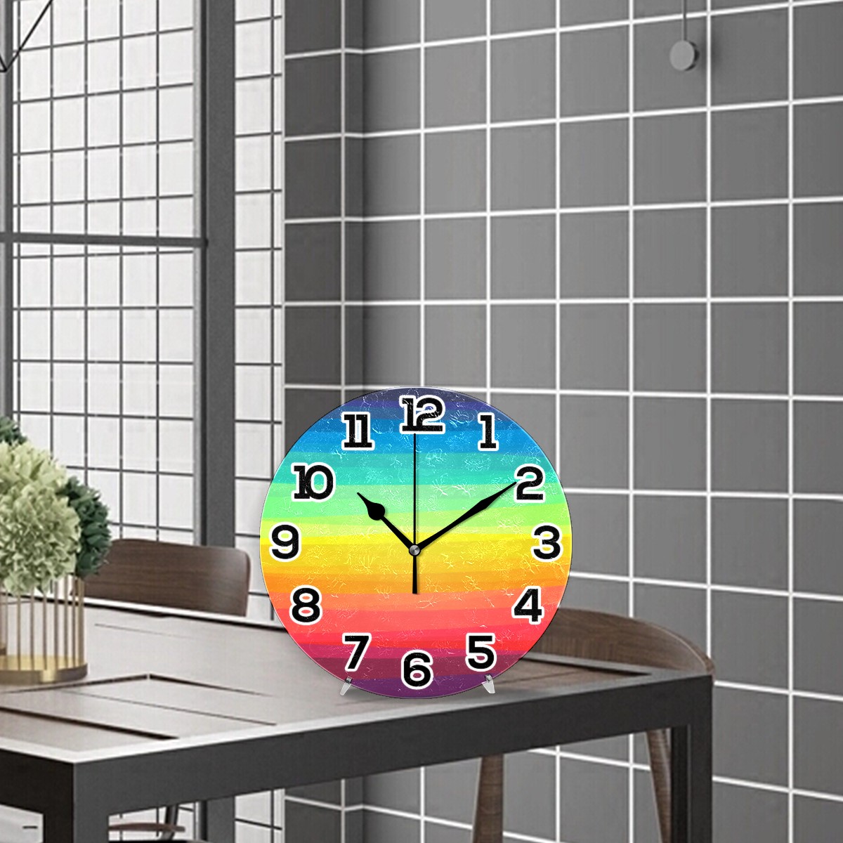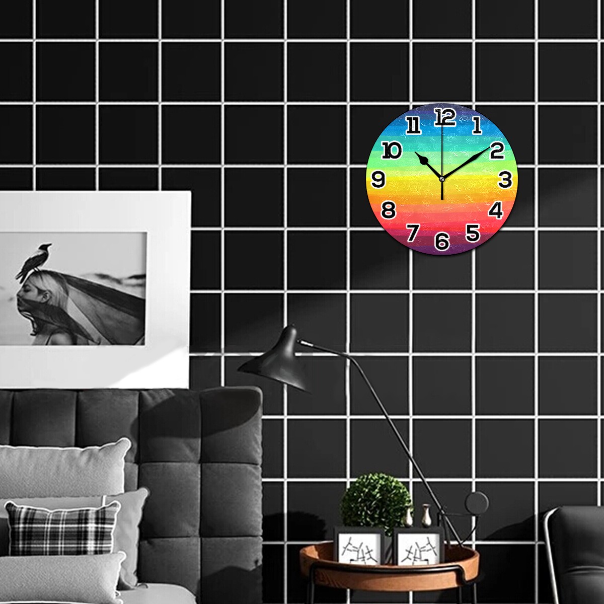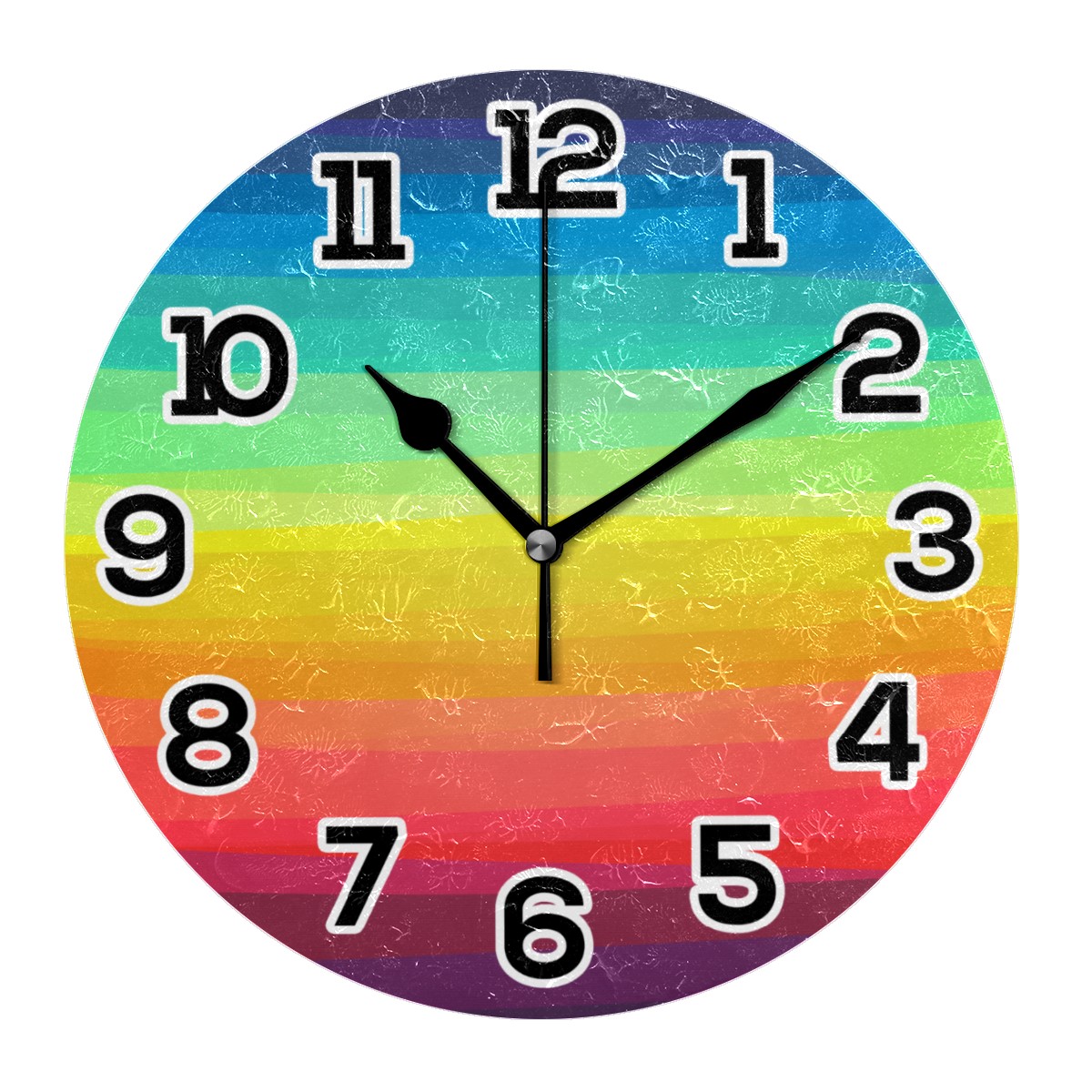 Colorful Rainbow Stripes Clock Wall Decor Acrylic Decorative Round Battery Operated Wall Clocks for Home Bedroom Living Room Decor Silent Non Ticking