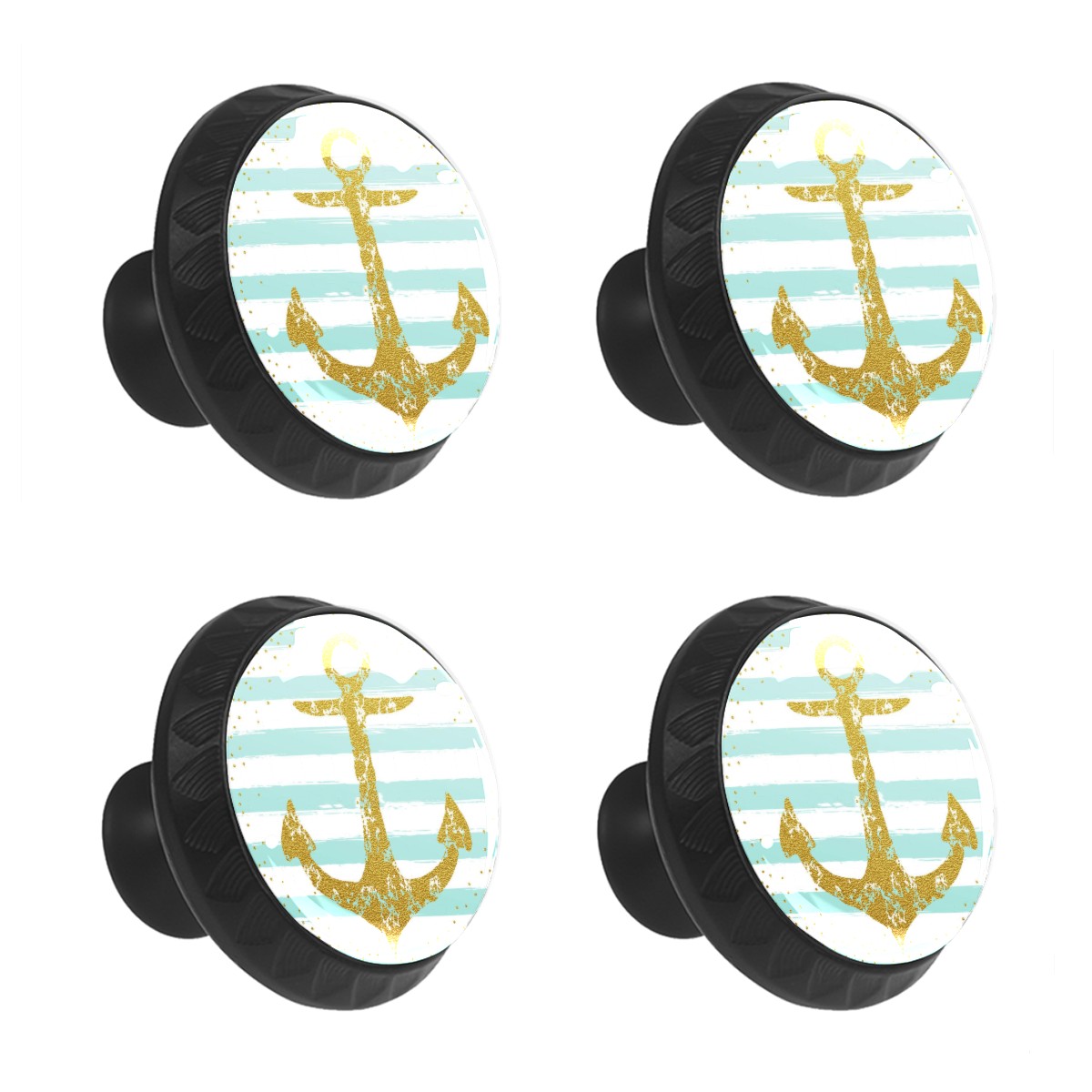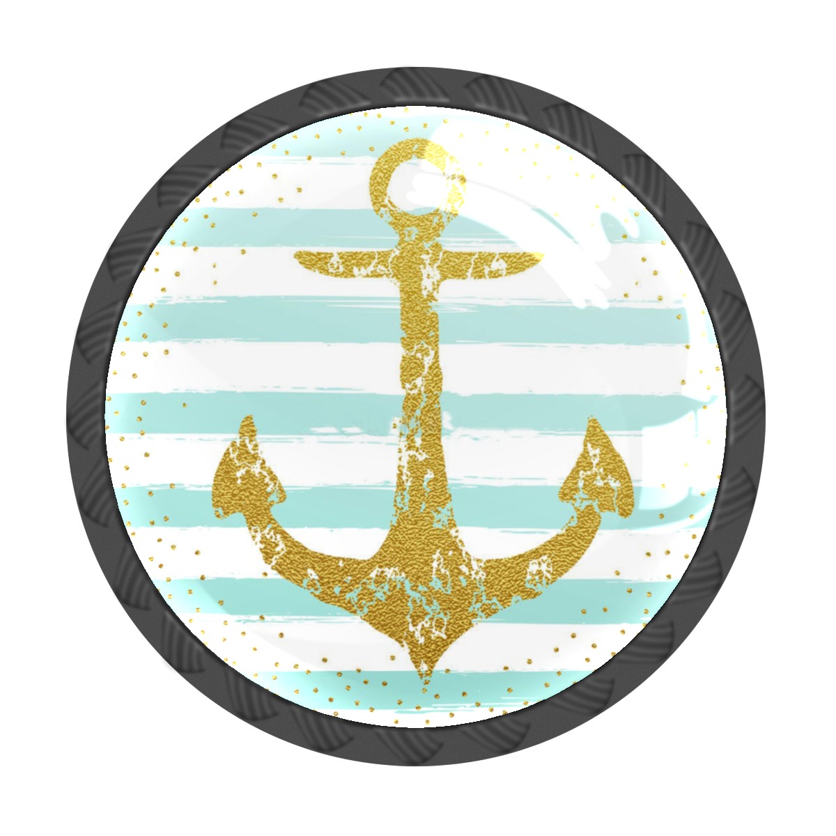 Cabinet Drawer Knobs Set of 4 Ship Anchor Cabinet Furniture Knobs Drawer Pulls Handle Crystal Glass Round Cupboard Knobs with Screws for Cabinets Kitchen Dresser Wardrobe DIY