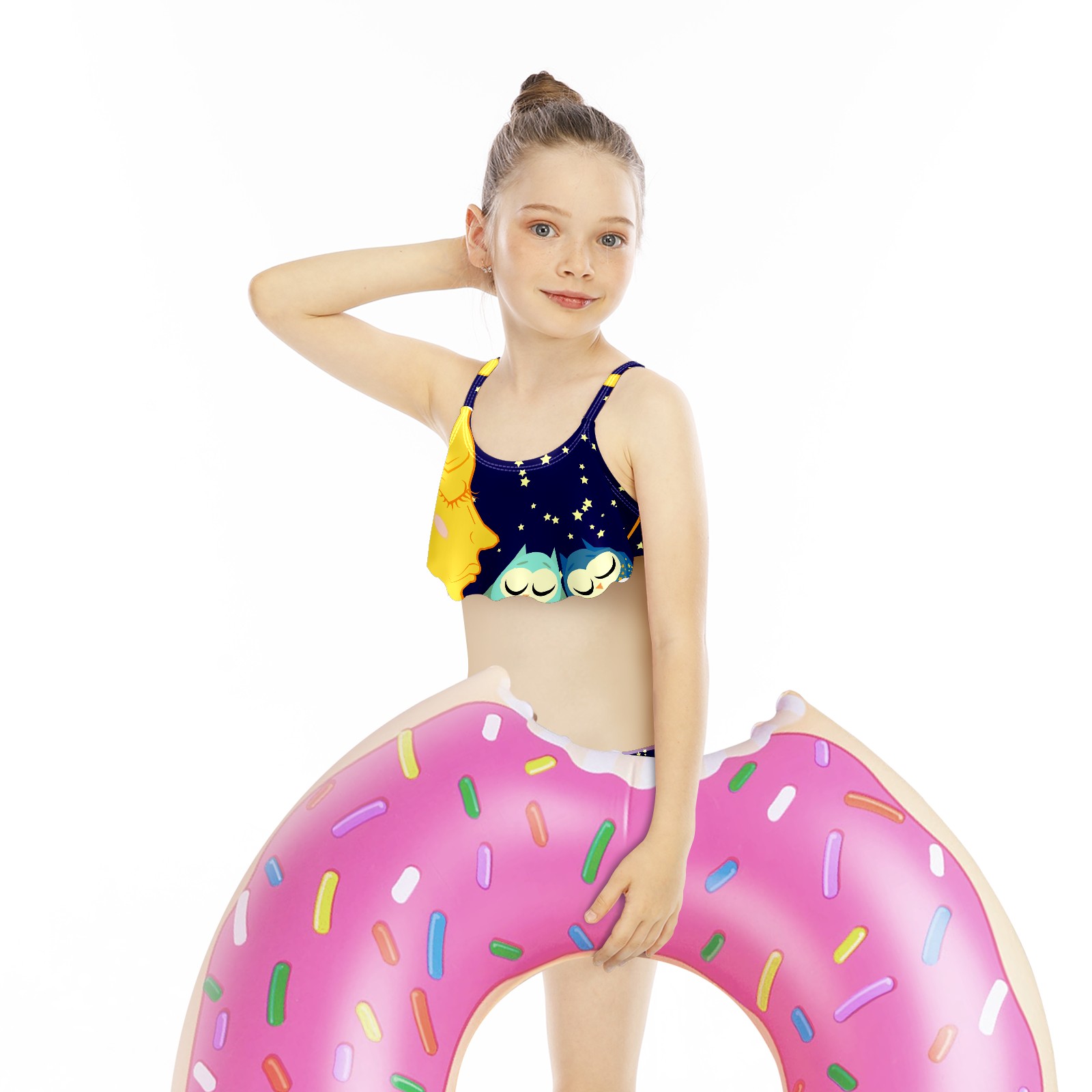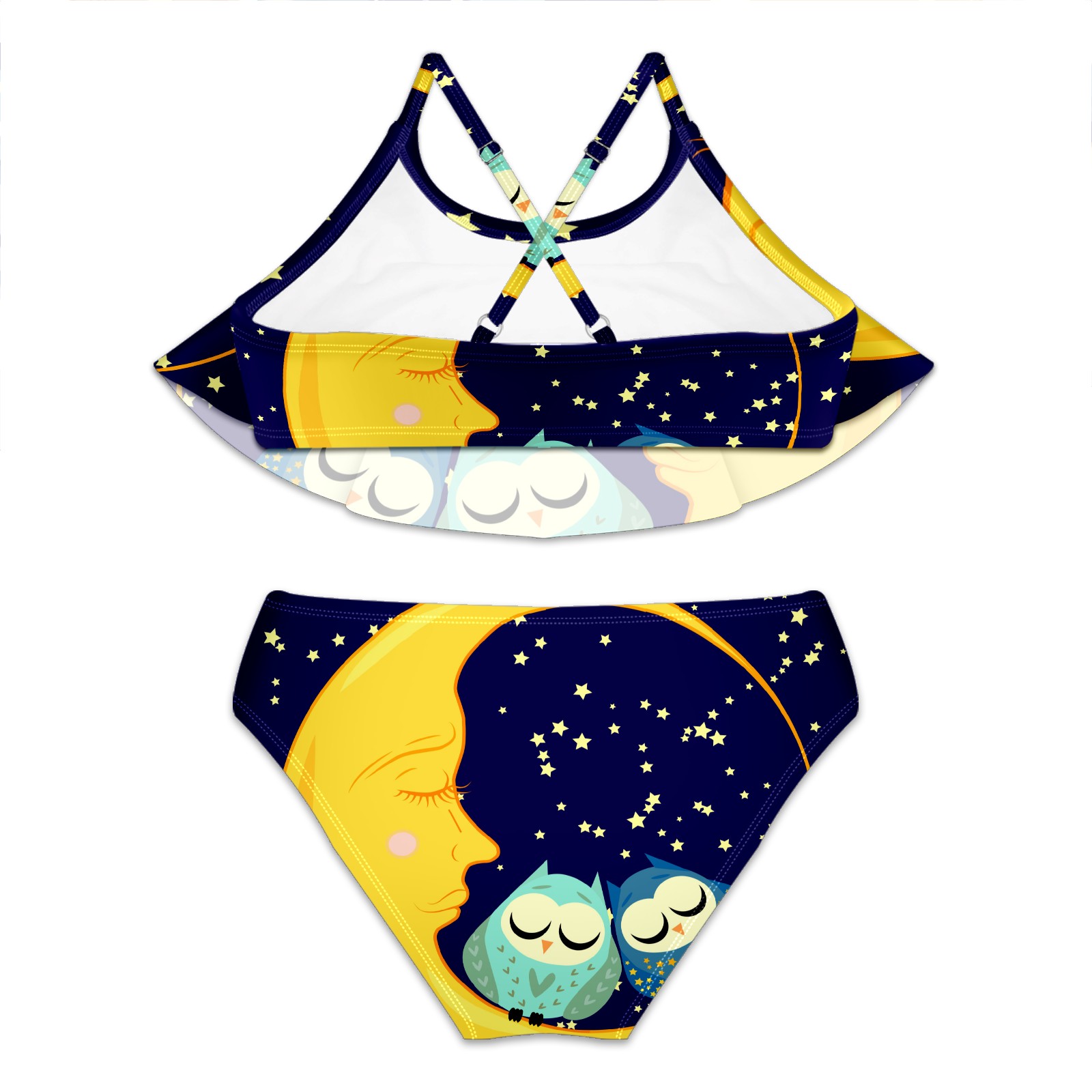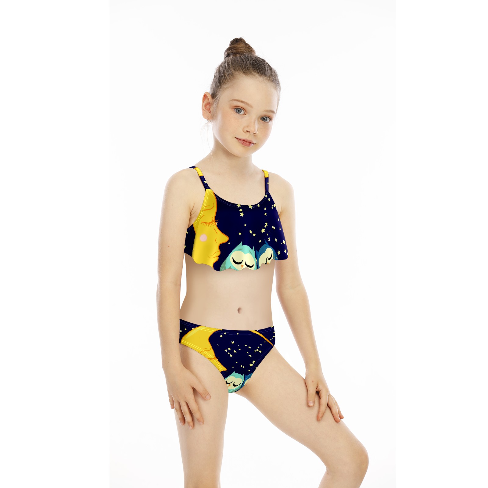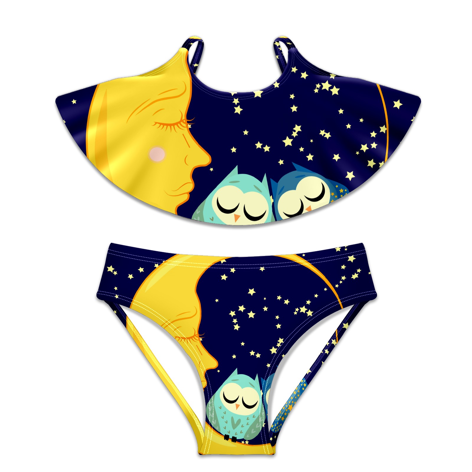 Swimsuits for Girls Two Pieces Bathing Suit Quick Dry Swimwear Moon Stars Bird Owl S