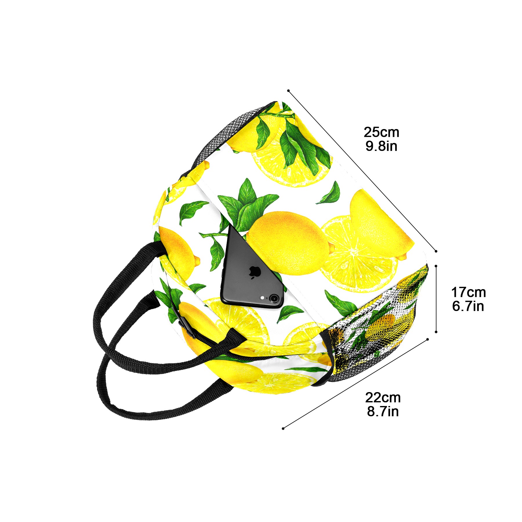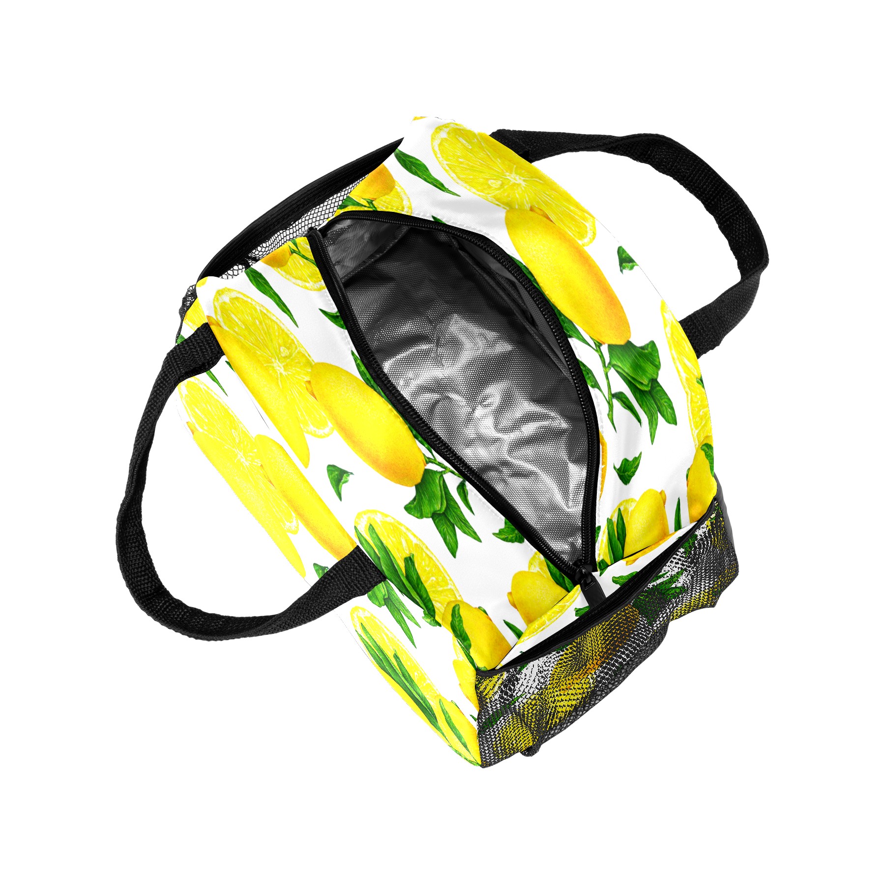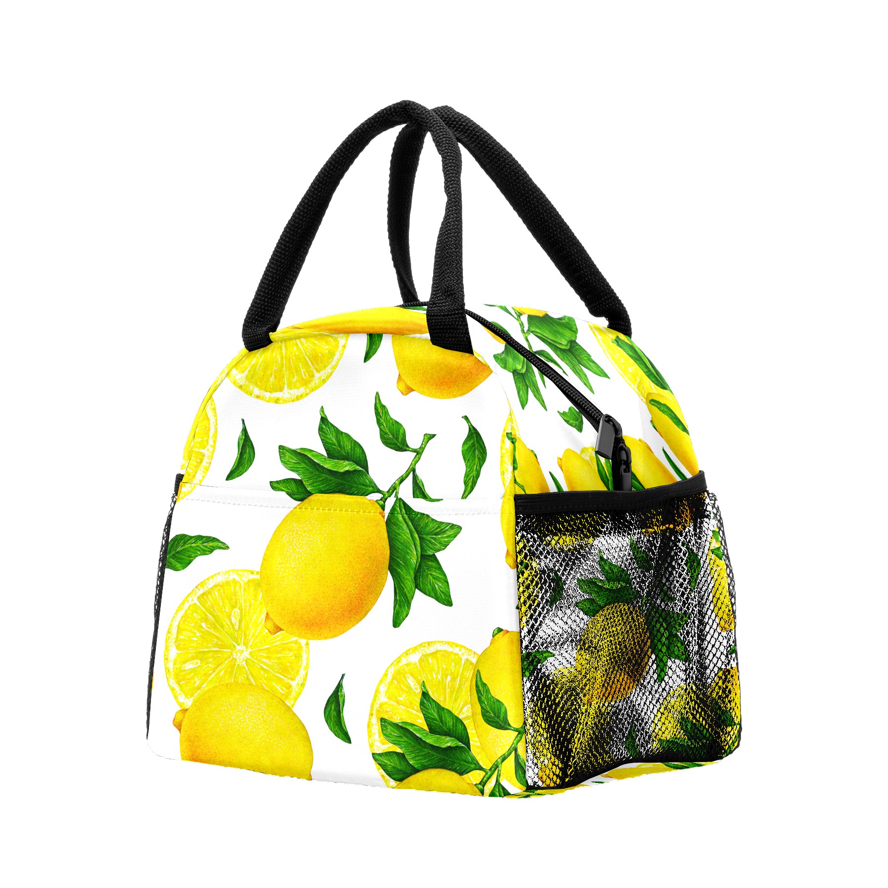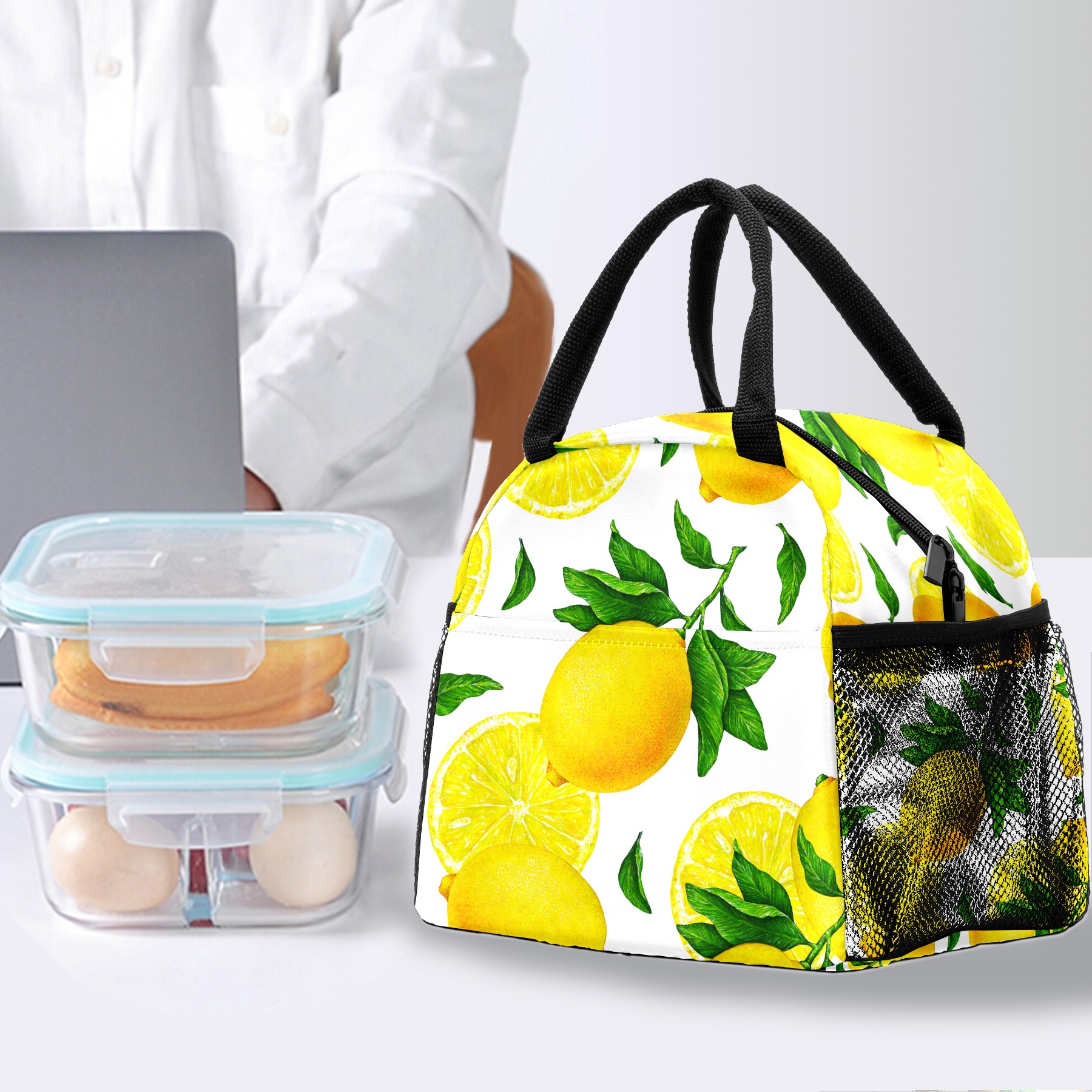 Lunch Bag for Women Men, Yellow Lemon Pattern Insulated Reusable Lunch Box Thermal Cooler Tote Bag for Work Picnic Hiking Travel Beach