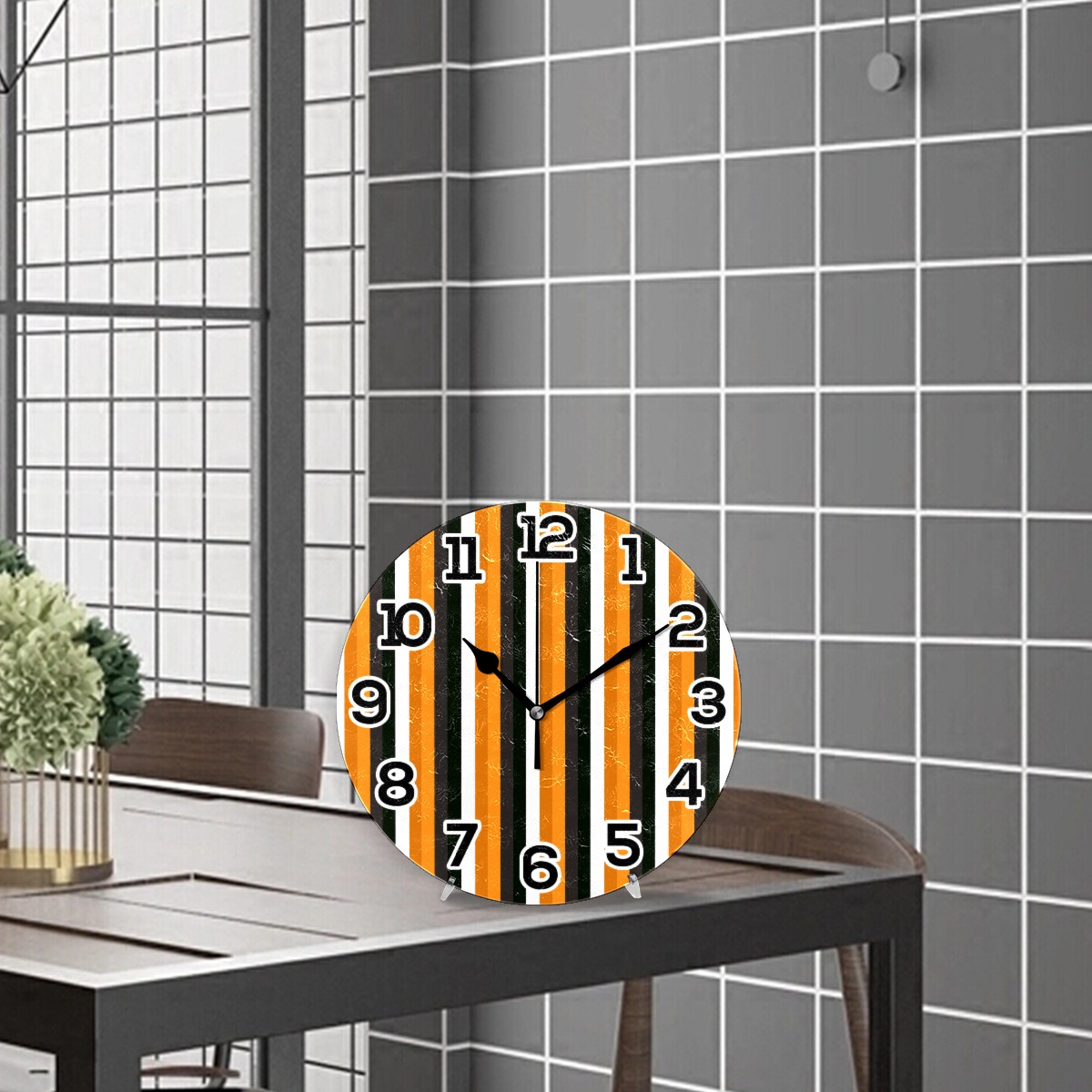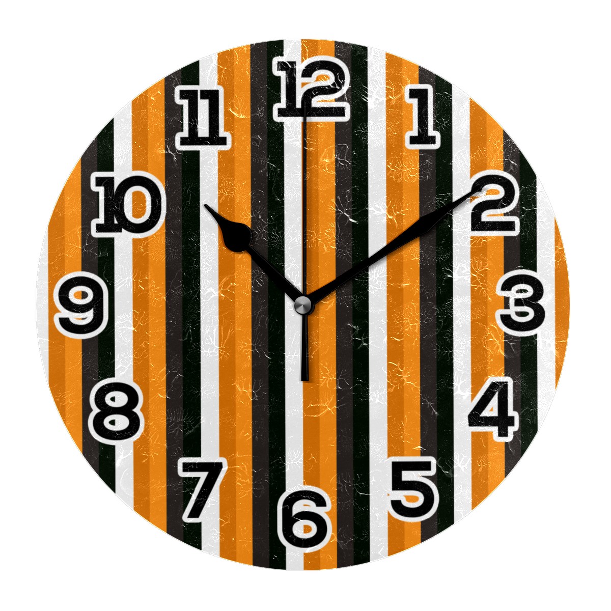 Halloween Pumpkin Stripes Clock Wall Decor Acrylic Decorative Round Battery Operated Wall Clocks for Home Bedroom Living Room Decor Silent Non Ticking