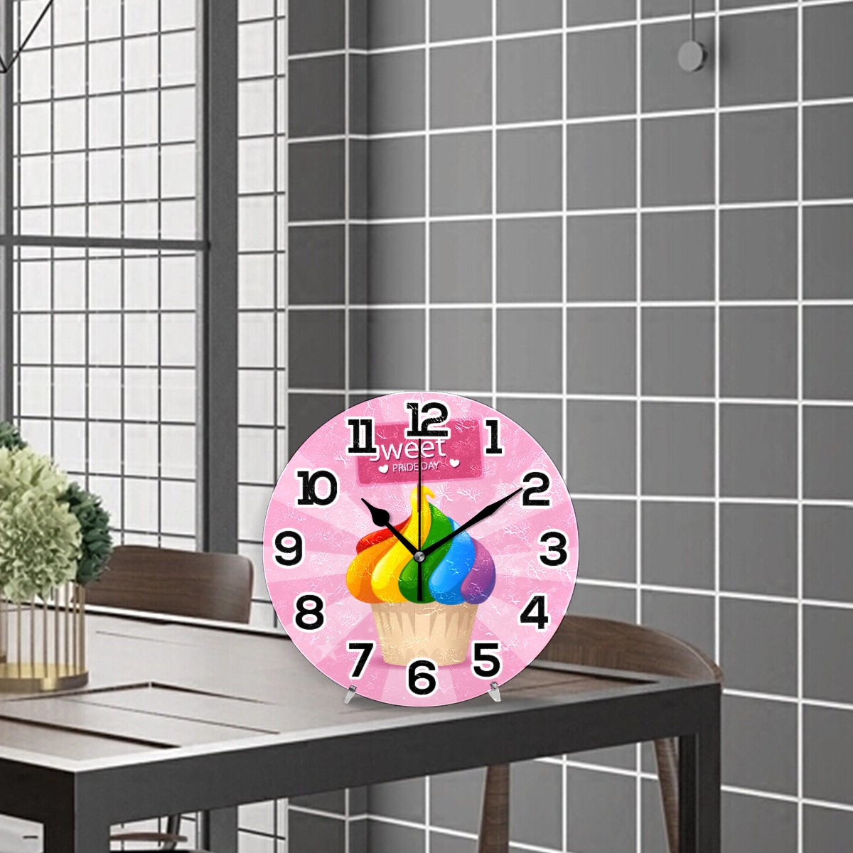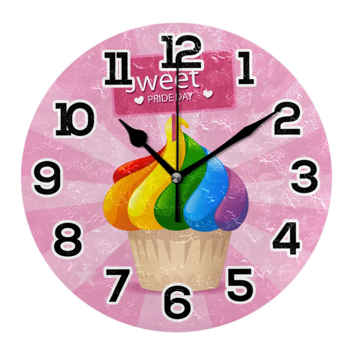 Colorful Rainbow Pride Day Clock Wall Decor Acrylic Decorative Round Battery Operated Wall Clocks for Home Bedroom Living Room Decor Silent Non Ticking