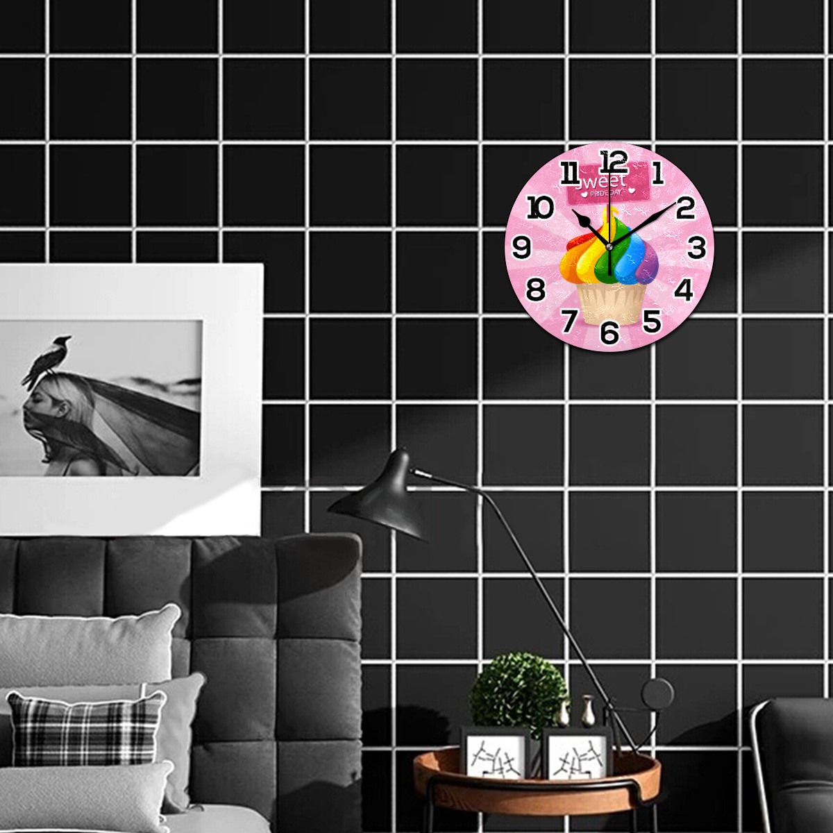 • <p>Our wall clock is perfect for hanging outdoors or indoors,&nbsp; living room, bedroom, kitchen, bathroom, office, dining room, sewing room or any other room. Beautify your space, bring different color to your space. It is not only a decoration, but also a great gift for Christmas/Birthday/Kids/Family/Friend.</p><p></p><p>Product Size: 9.5" diameter x 0.25" thickness;</p><p></p><p>Material: MDF frame, Wood mechanism housing, Metal clock hands.</p><p></p><p>Non ticking: Quiet sweep second hand, no ticking to ensure a good sleeping or working environment.</p><p></p><p>Power Source: 1 x AA battery(not included)</p><p></p><p>Package Included: ONE Wall Clock</p><p></p><p>LARGE NUMBER</p><p>Large white numbers on the dark wood dial face, easy to see from a distance or side. Perfect for grandpa and grandma, parents or any others have poor sight.</p><p>Silent Movement</p><p>Quality Scanning Quartz Movement ensure accurate time and absolutely silent environment. Not bother you reading, working, thinking, conversing or sleeping.</p><p>CUSTOMER SERIVCE</p><p>Please feel free to contact us if you have any questions.</p>