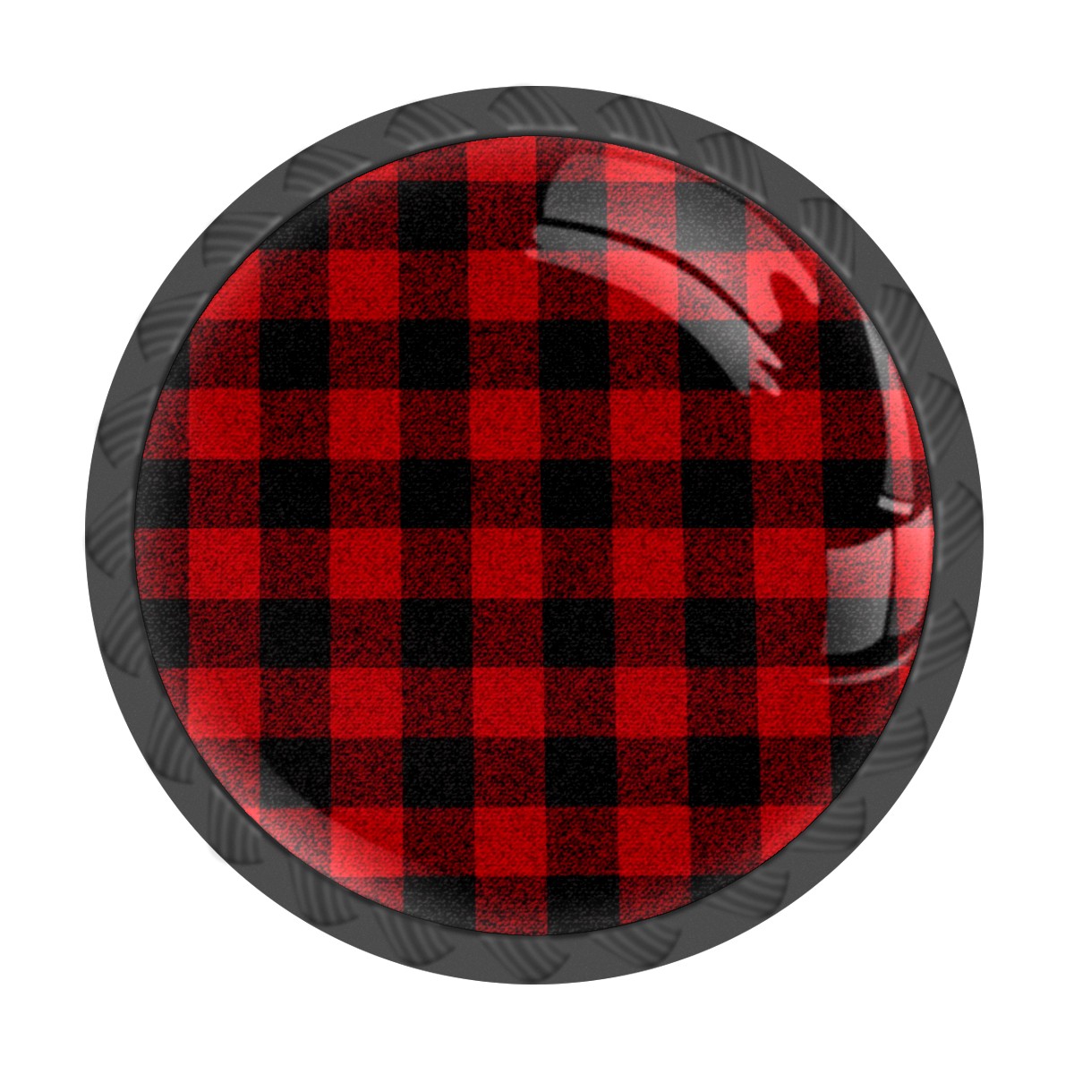 Cabinet Drawer Knobs Set of 4 Classical Black Red Square Check Plaid Pattern Cabinet Furniture Knobs Drawer Pulls Handle Crystal Glass Round Cupboard Knobs with Screws for Cabinets Kitchen Dresser Wardrobe DIY