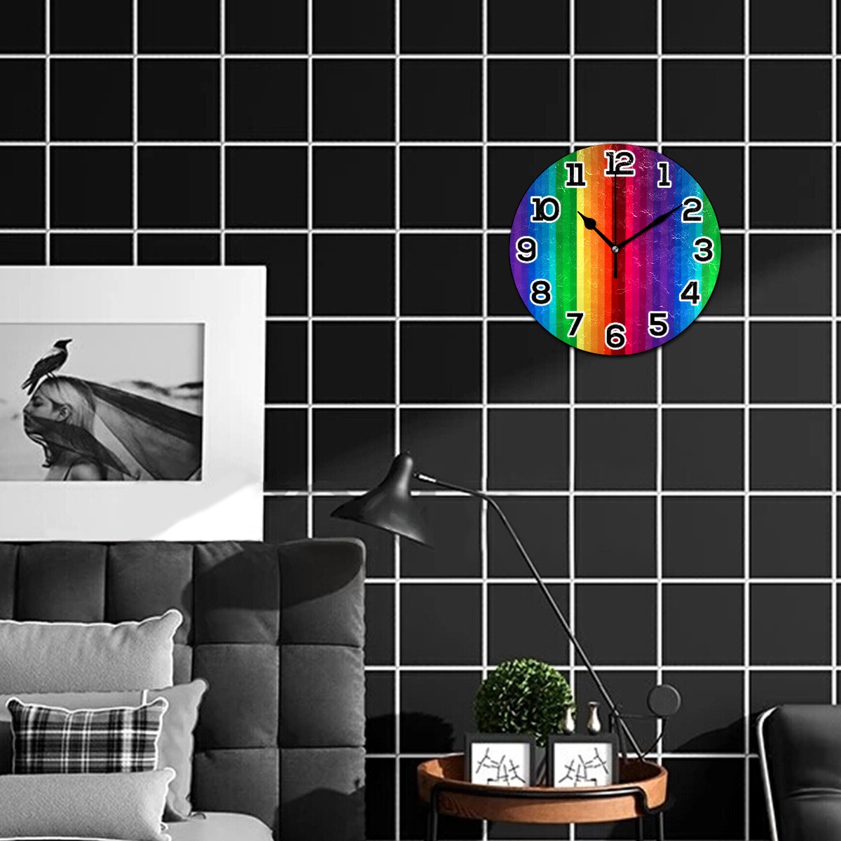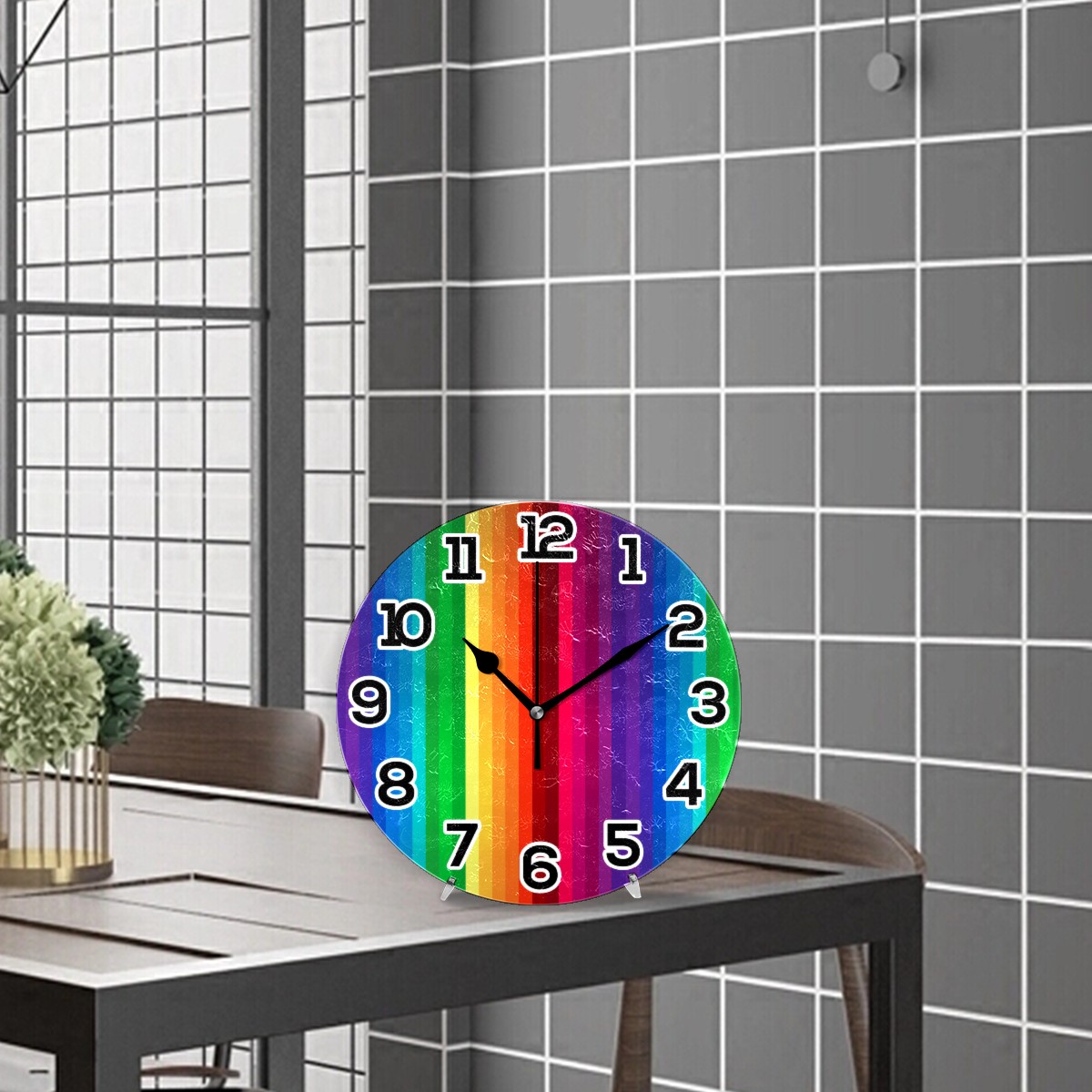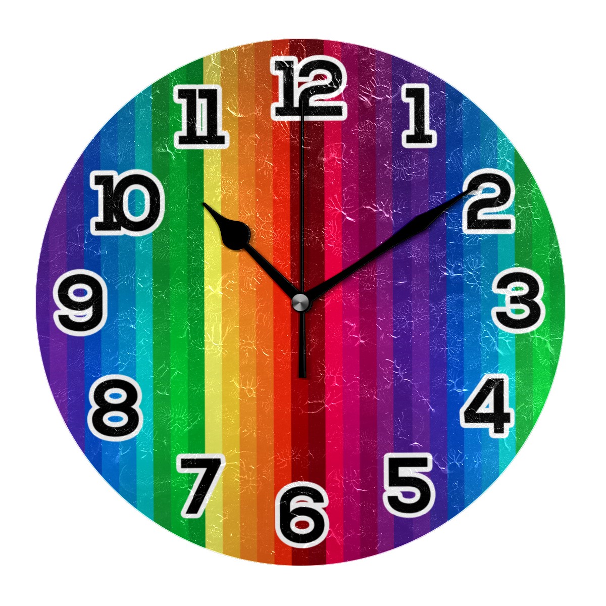 Colorful Rainbow Painting Stripes Clock Wall Decor Acrylic Decorative Round Battery Operated Wall Clocks for Home Bedroom Living Room Decor Silent Non Ticking