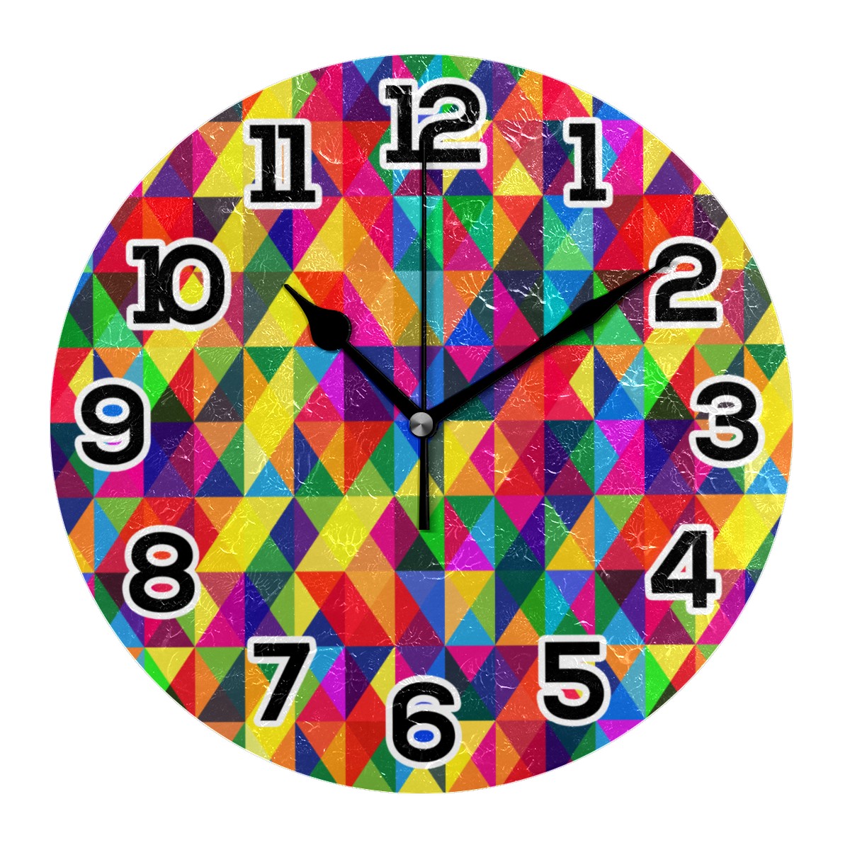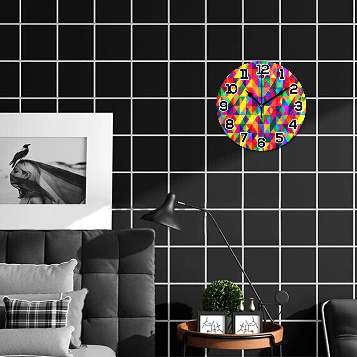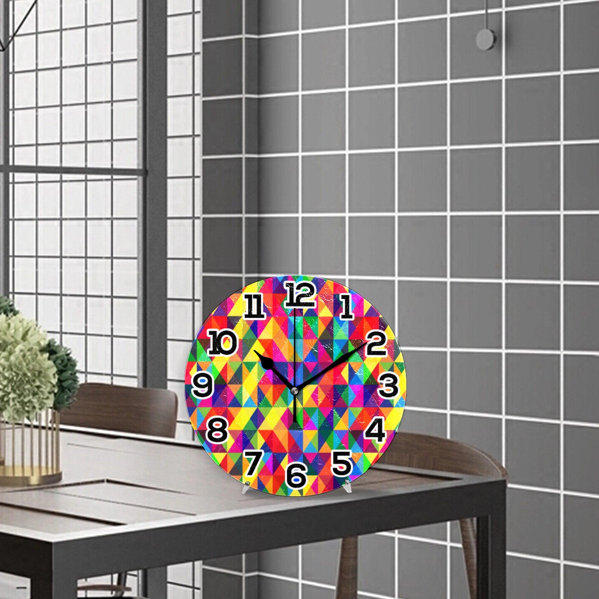 Colorful Plaid Grid Clock Wall Decor Acrylic Decorative Round Battery Operated Wall Clocks for Home Bedroom Living Room Decor Silent Non Ticking