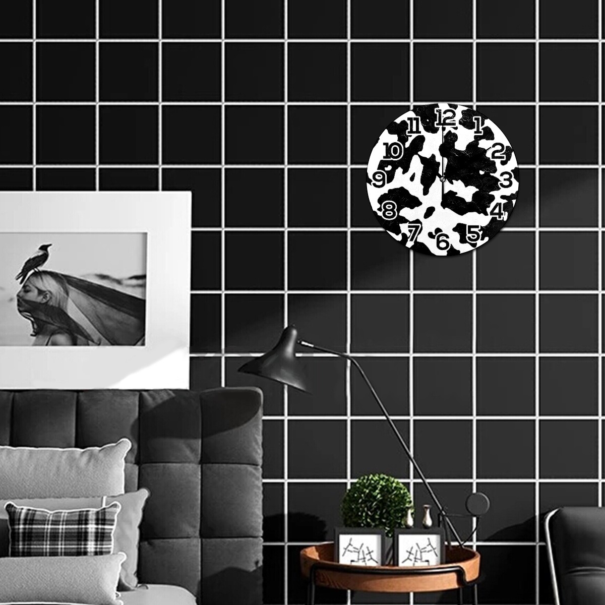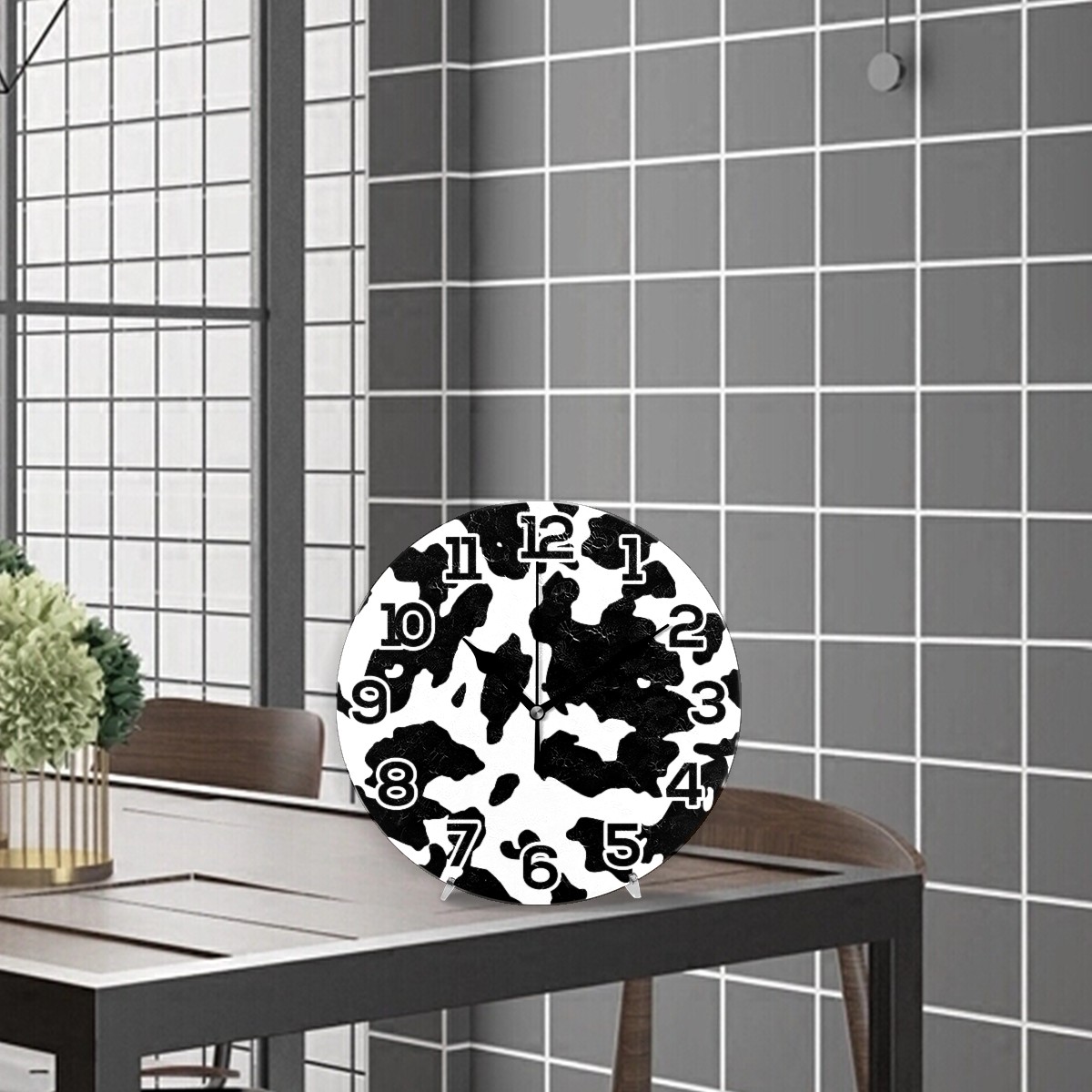 Abstract Cow Pattern Clock Wall Decor Acrylic Decorative Round Battery Operated Wall Clocks for Home Bedroom Living Room Decor Silent Non Ticking