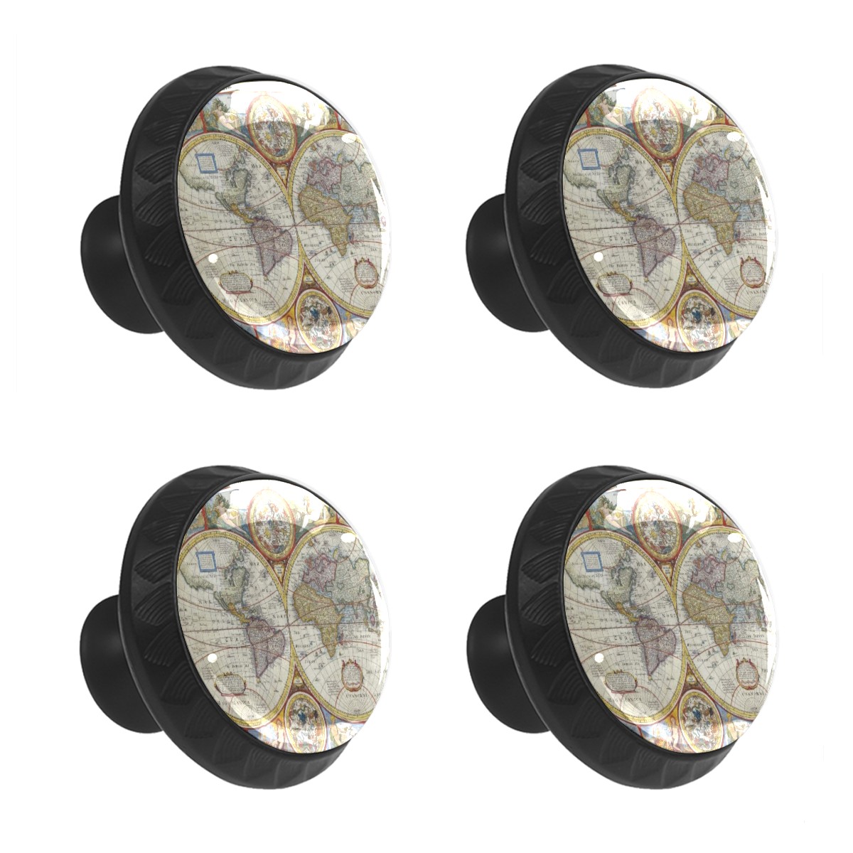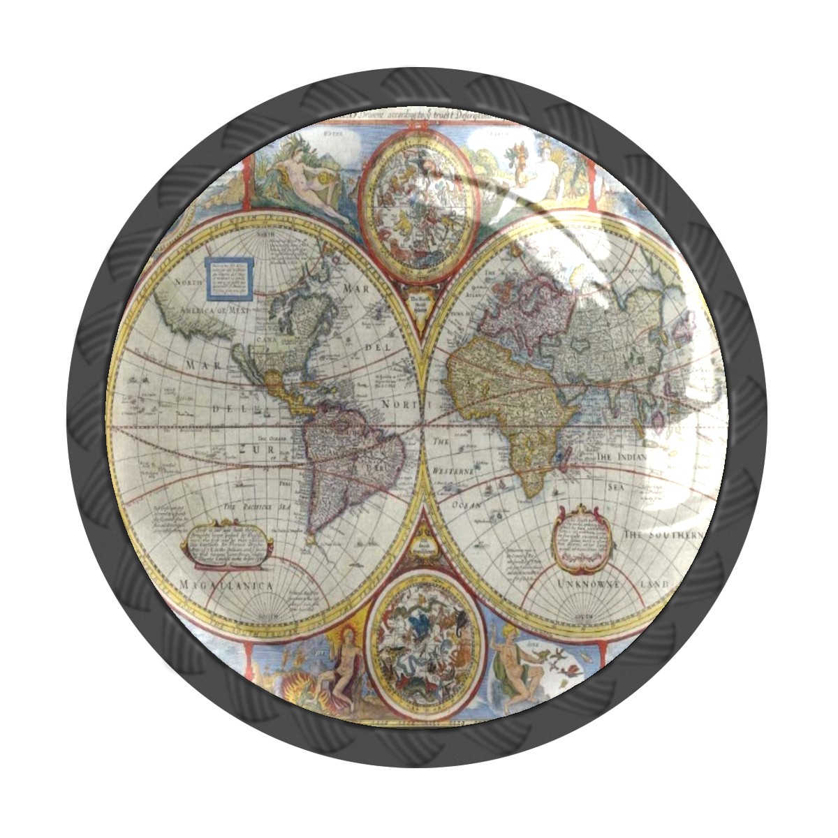 Cabinet Drawer Knobs Set of 4 World Map Cabinet Furniture Knobs Drawer Pulls Handle Crystal Glass Round Cupboard Knobs with Screws for Cabinets Kitchen Dresser Wardrobe DIY