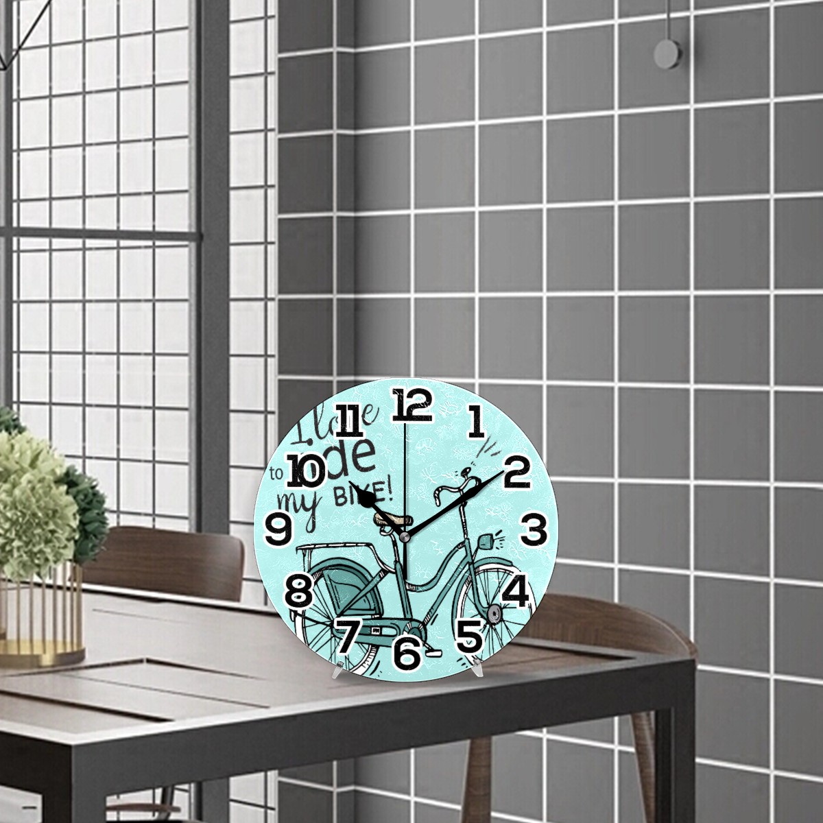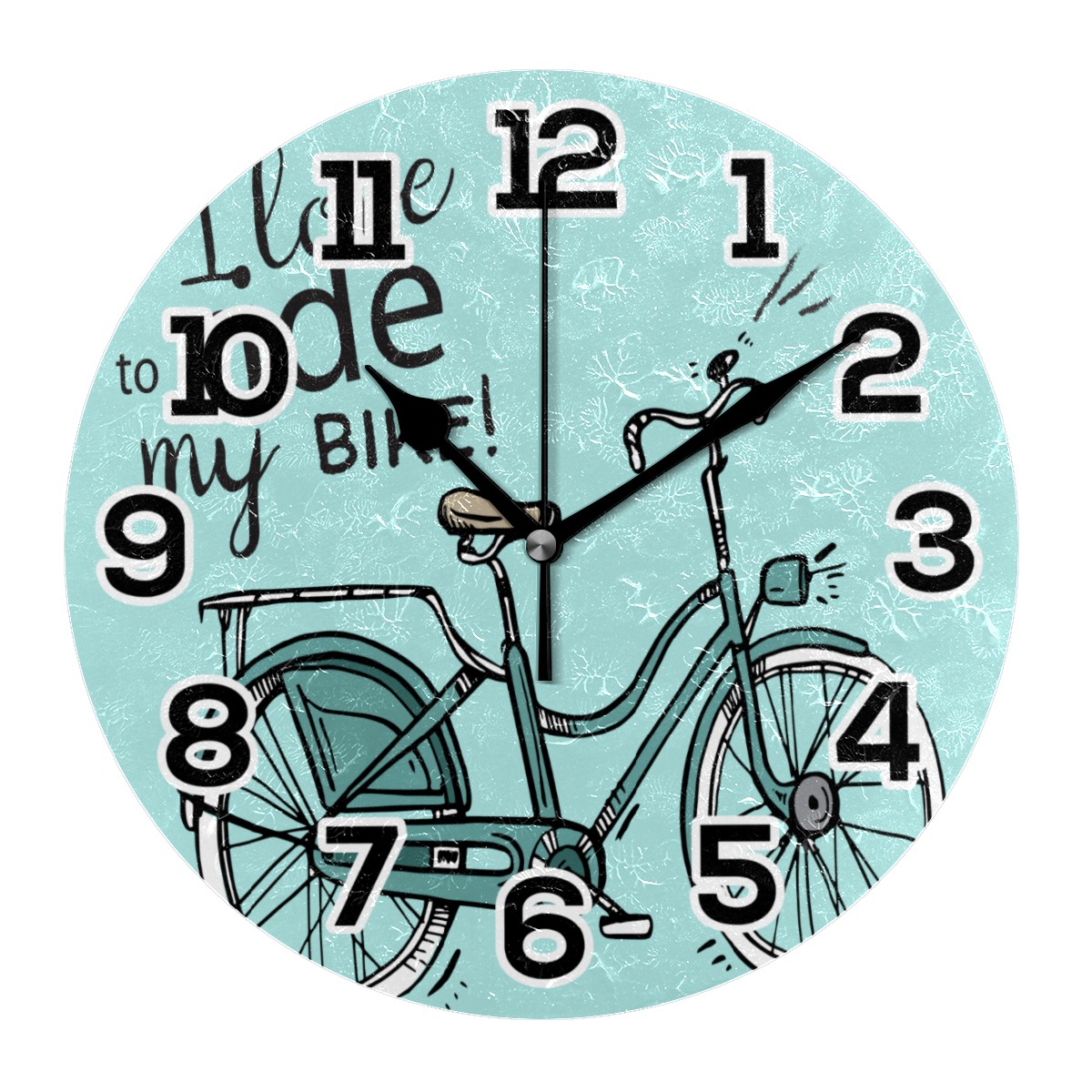 Vintage I Love Ride My Bike Clock Wall Decor Acrylic Decorative Round Battery Operated Wall Clocks for Home Bedroom Living Room Decor Silent Non Ticking