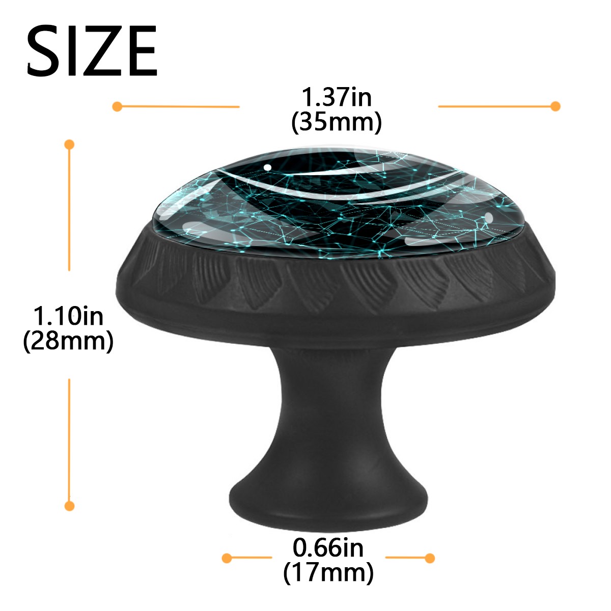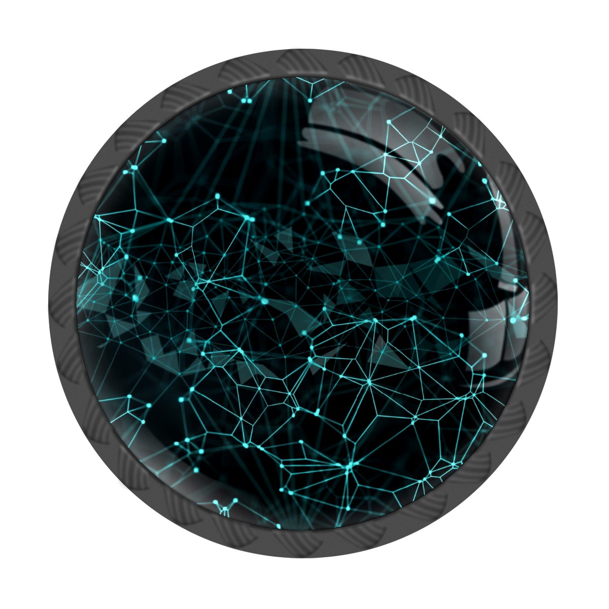 Cabinet Drawer Knobs Set of 4 Abstract Digital Dots Lines Dark Cabinet Furniture Knobs Drawer Pulls Handle Crystal Glass Round Cupboard Knobs with Screws for Cabinets Kitchen Dresser Wardrobe DIY