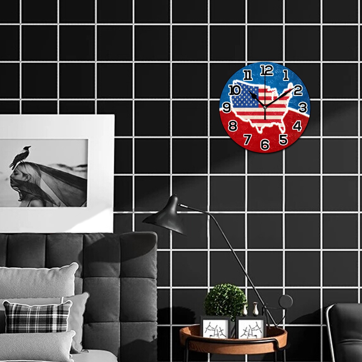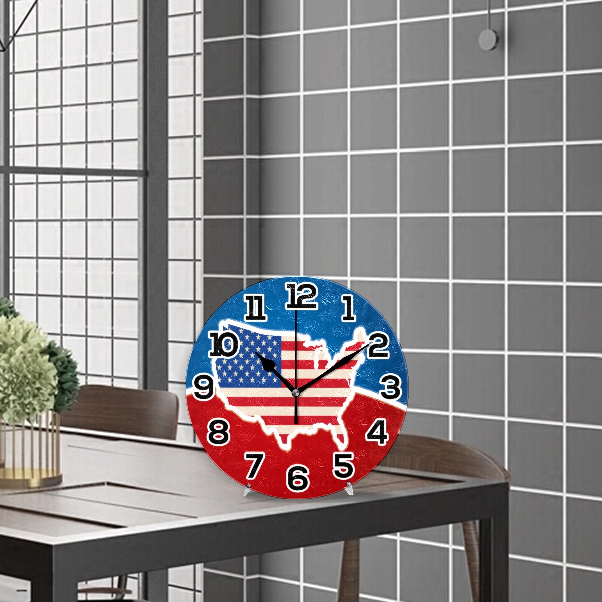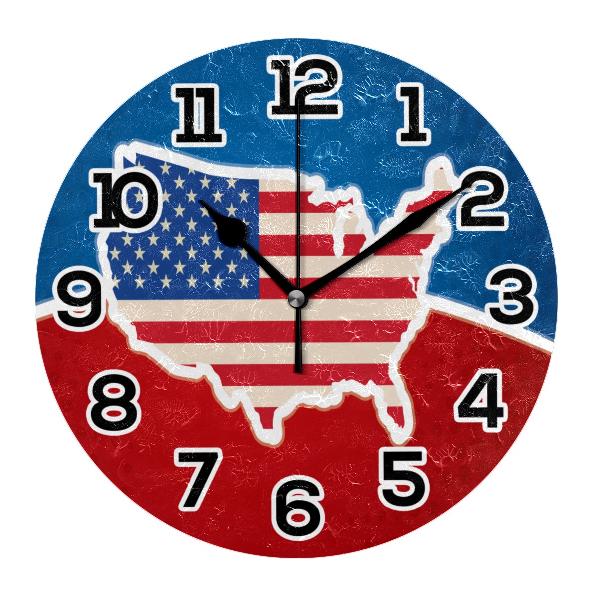 USA American Map Flag Clock Wall Decor Acrylic Decorative Round Battery Operated Wall Clocks for Home Bedroom Living Room Decor Silent Non Ticking