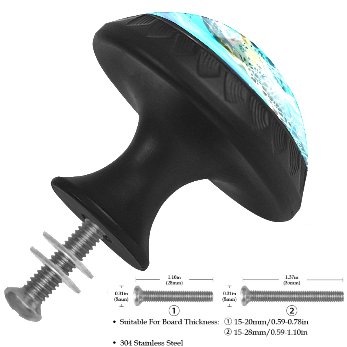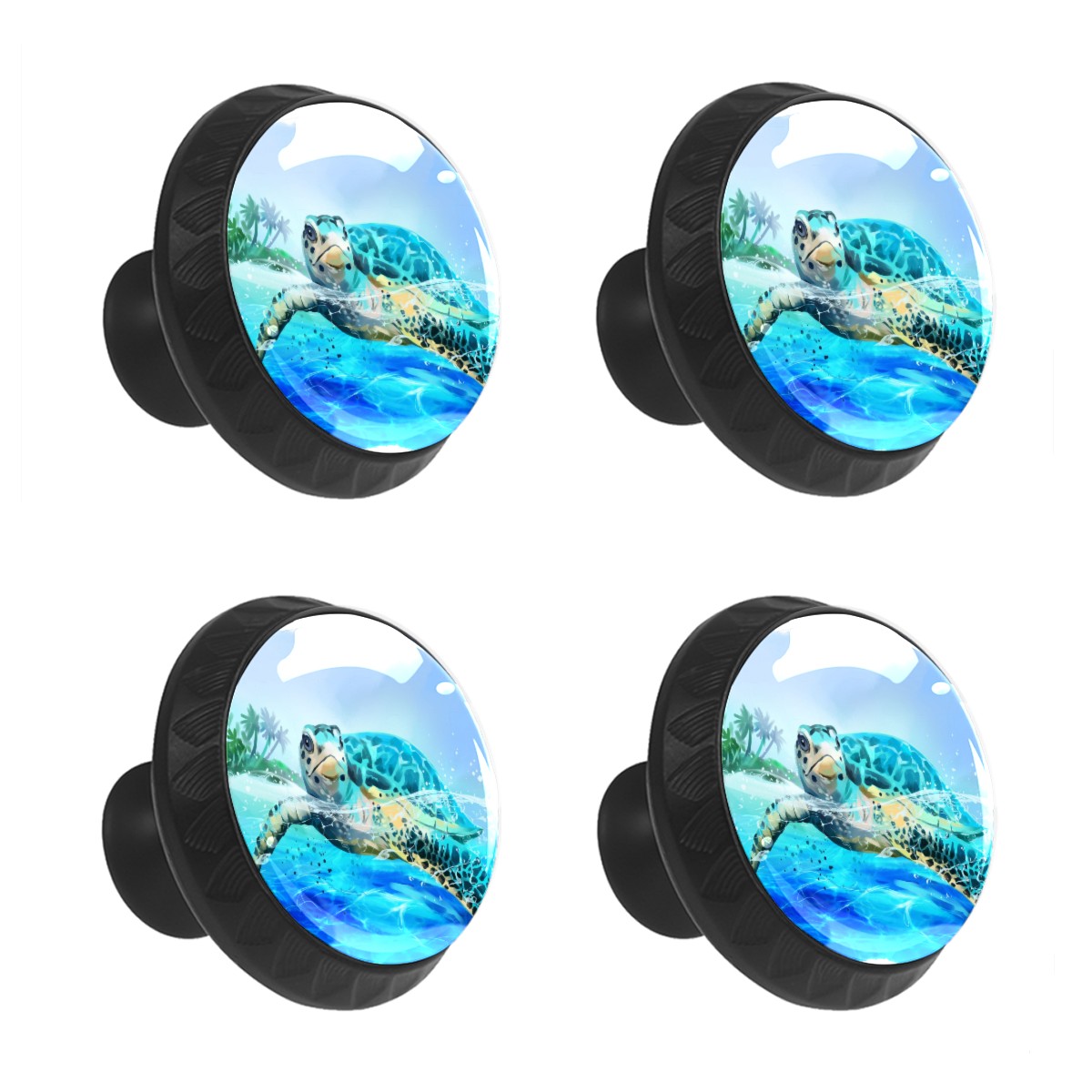 Cabinet Drawer Knobs Set of 4 Sea Turtle Swimming Summer Cabinet Furniture Knobs Drawer Pulls Handle Crystal Glass Round Cupboard Knobs with Screws for Cabinets Kitchen Dresser Wardrobe DIY