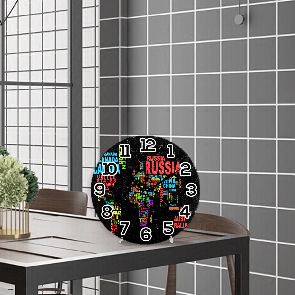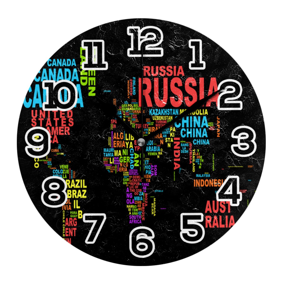 Black World Map Russia Canada Clock Wall Decor Acrylic Decorative Round Battery Operated Wall Clocks for Home Bedroom Living Room Decor Silent Non Ticking