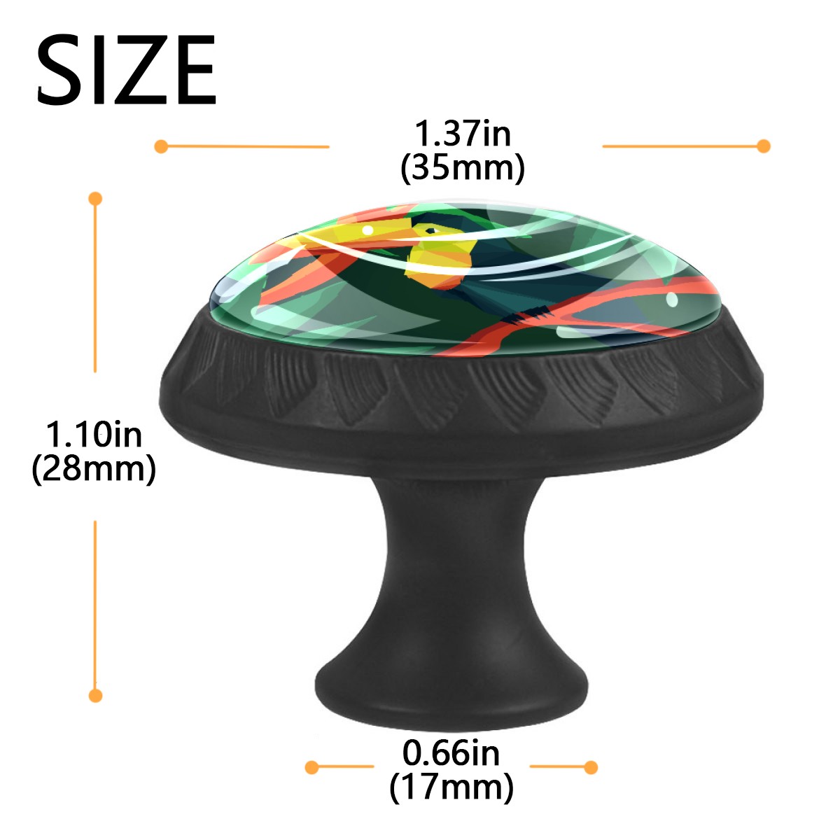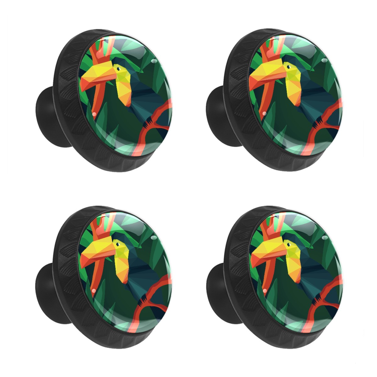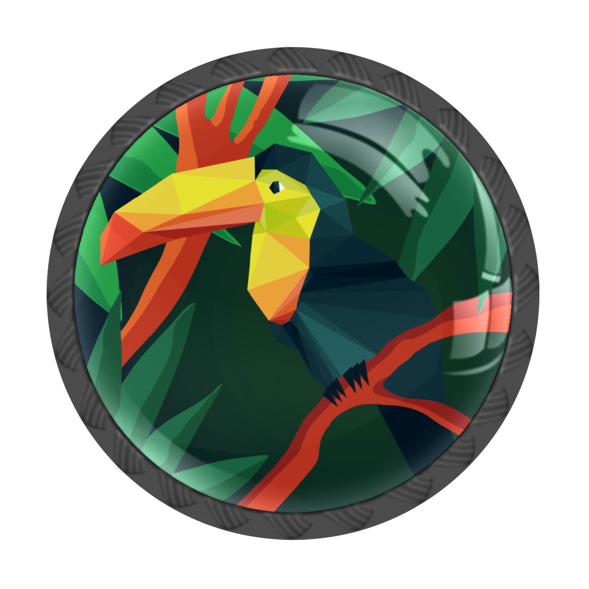 Cabinet Drawer Knobs Set of 4 Origami Toucan Tropical Red Green Cabinet Furniture Knobs Drawer Pulls Handle Crystal Glass Round Cupboard Knobs with Screws for Cabinets Kitchen Dresser Wardrobe DIY