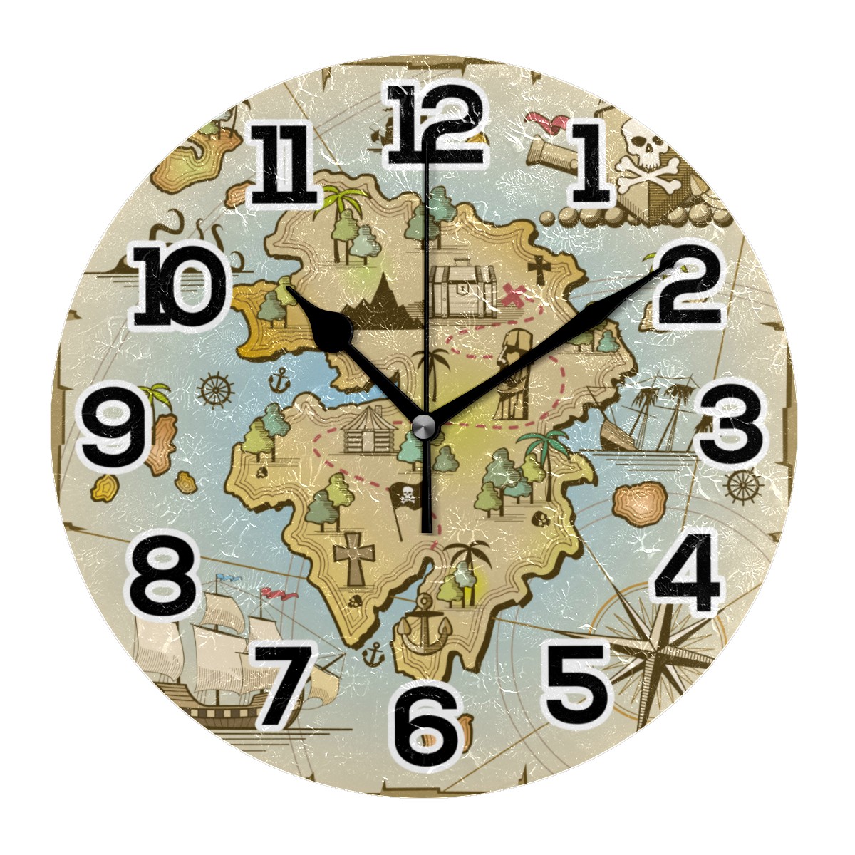 Antique Nautical World Map Compass Clock Wall Decor Acrylic Decorative Round Battery Operated Wall Clocks for Home Bedroom Living Room Decor Silent Non Ticking