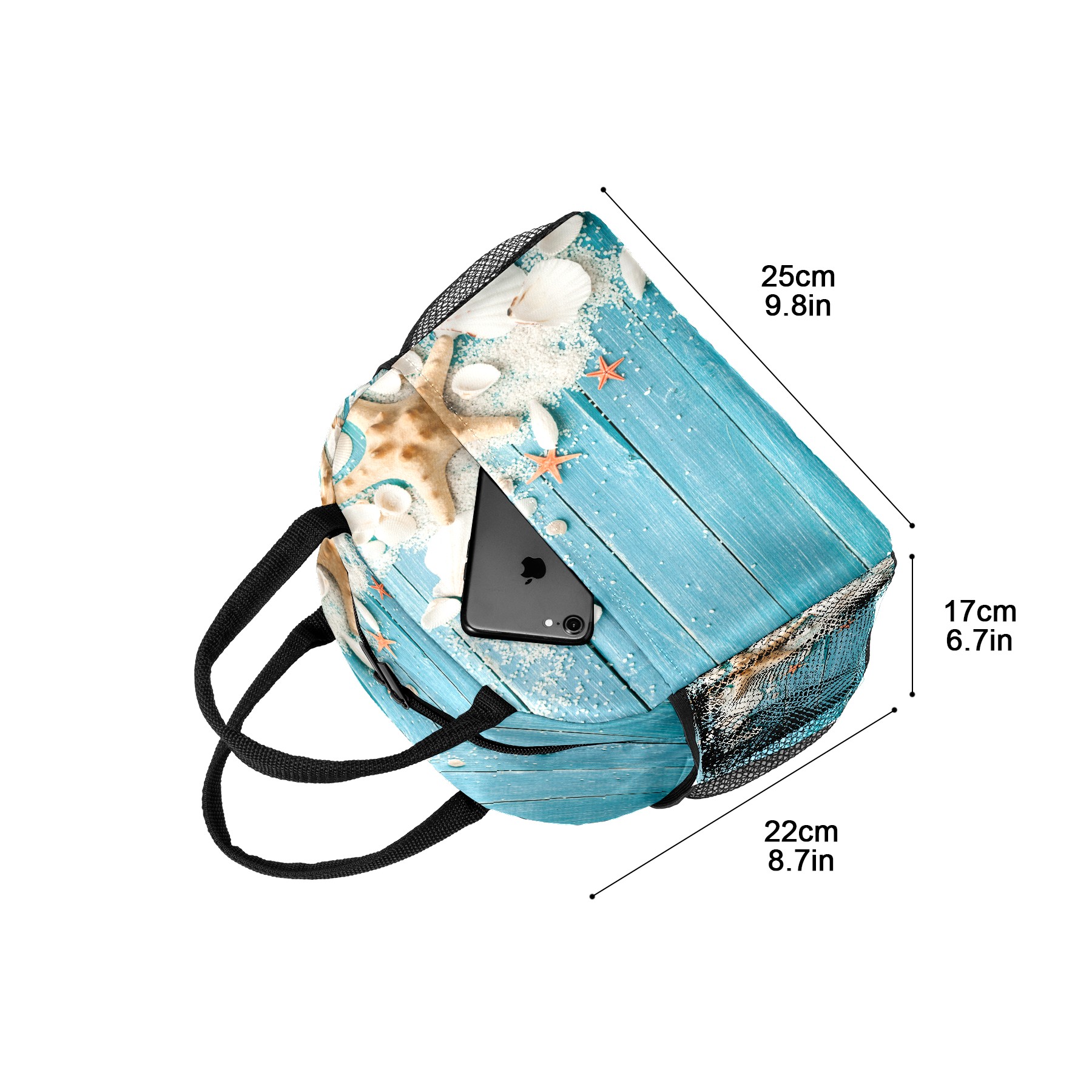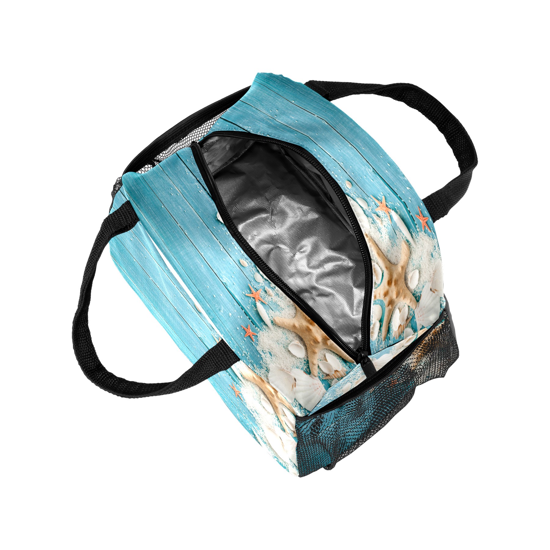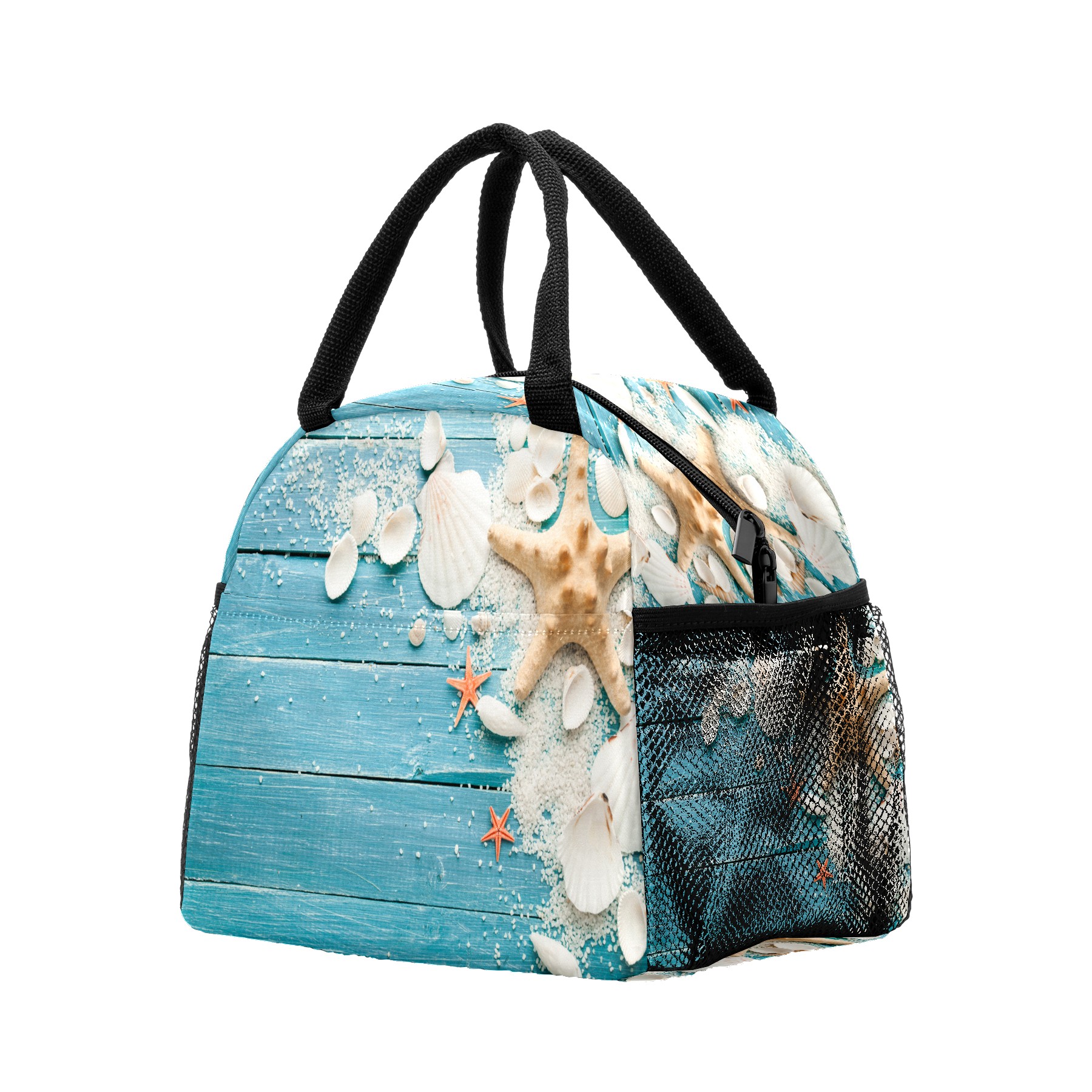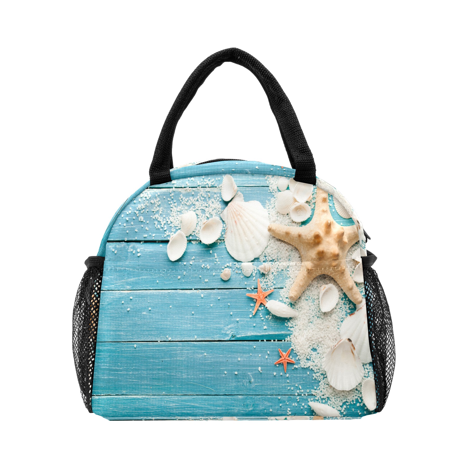 Lunch Bag for Women Men, Summer Beach Wood Shell Starfish Insulated Reusable Lunch Box Thermal Cooler Tote Bag for Work Picnic Hiking Travel Beach