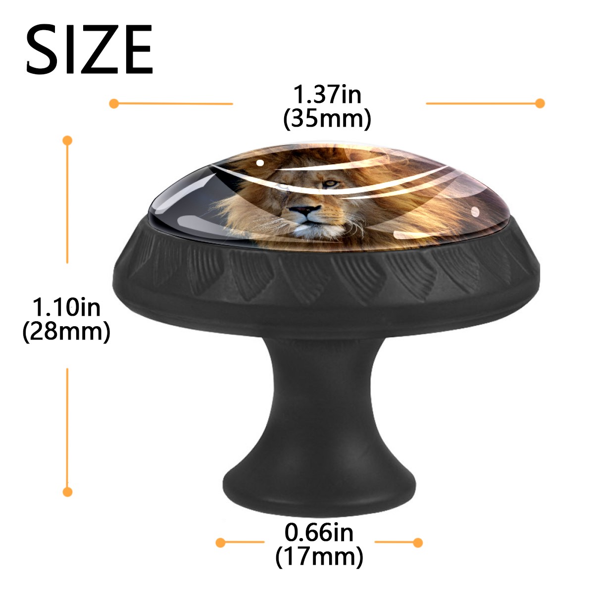 Cabinet Drawer Knobs Set of 4 King Of Animal Lion Cabinet Furniture Knobs Drawer Pulls Handle Crystal Glass Round Cupboard Knobs with Screws for Cabinets Kitchen Dresser Wardrobe DIY