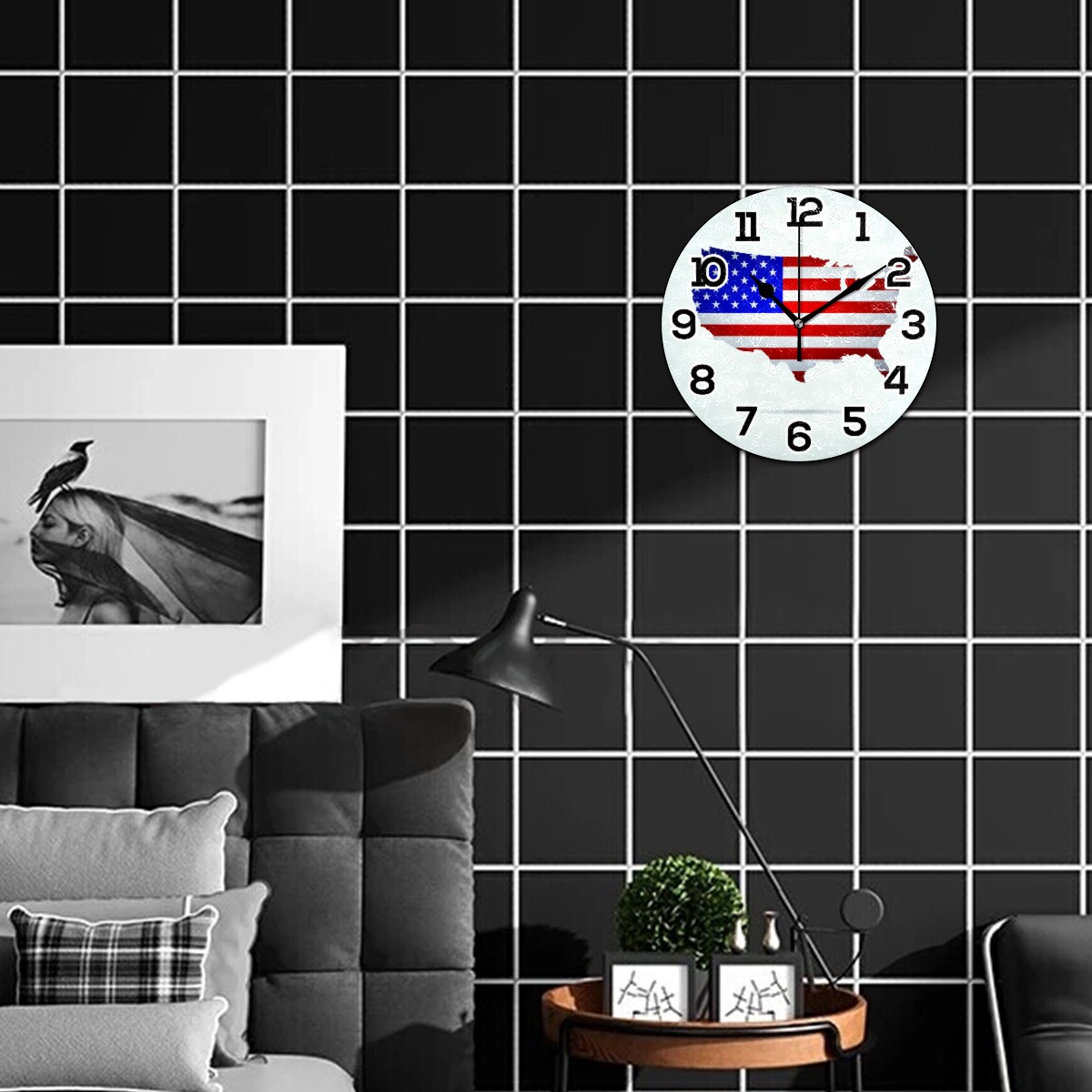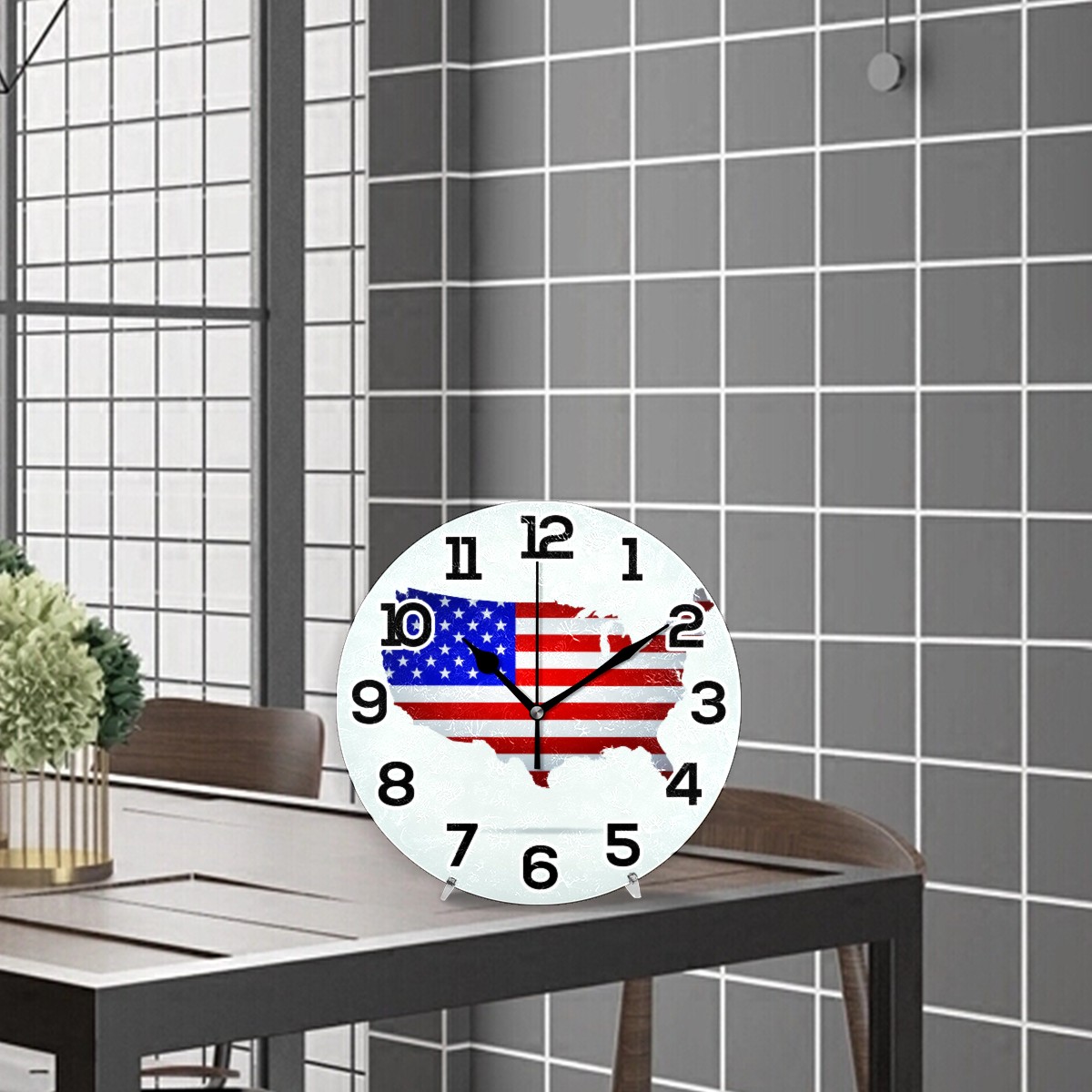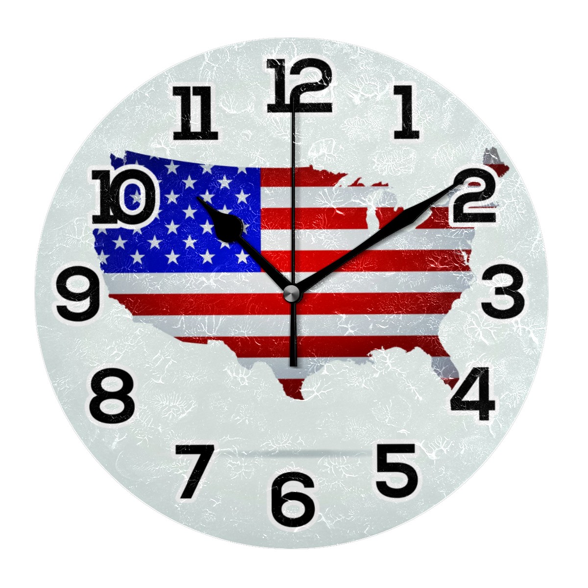 American Flag Map Clock Wall Decor Acrylic Decorative Round Battery Operated Wall Clocks for Home Bedroom Living Room Decor Silent Non Ticking