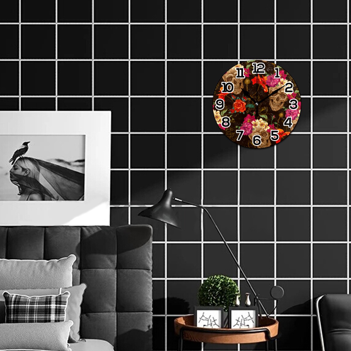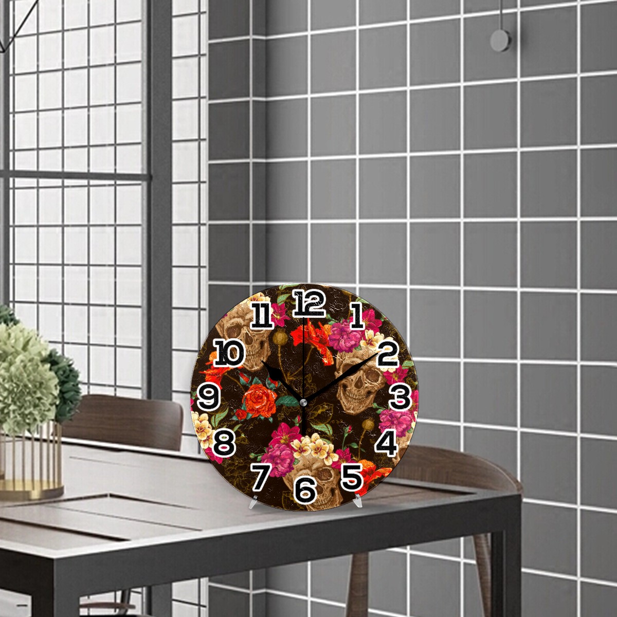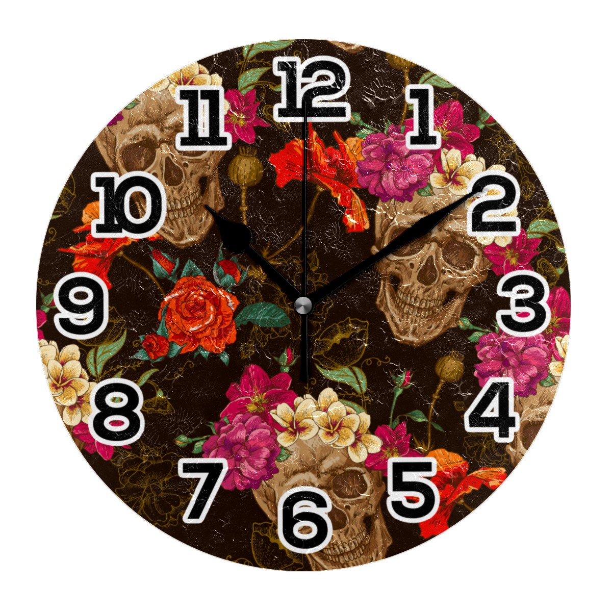 Vintage Sugar Skull Floral Pattern Clock Wall Decor Acrylic Decorative Round Battery Operated Wall Clocks for Home Bedroom Living Room Decor Silent Non Ticking