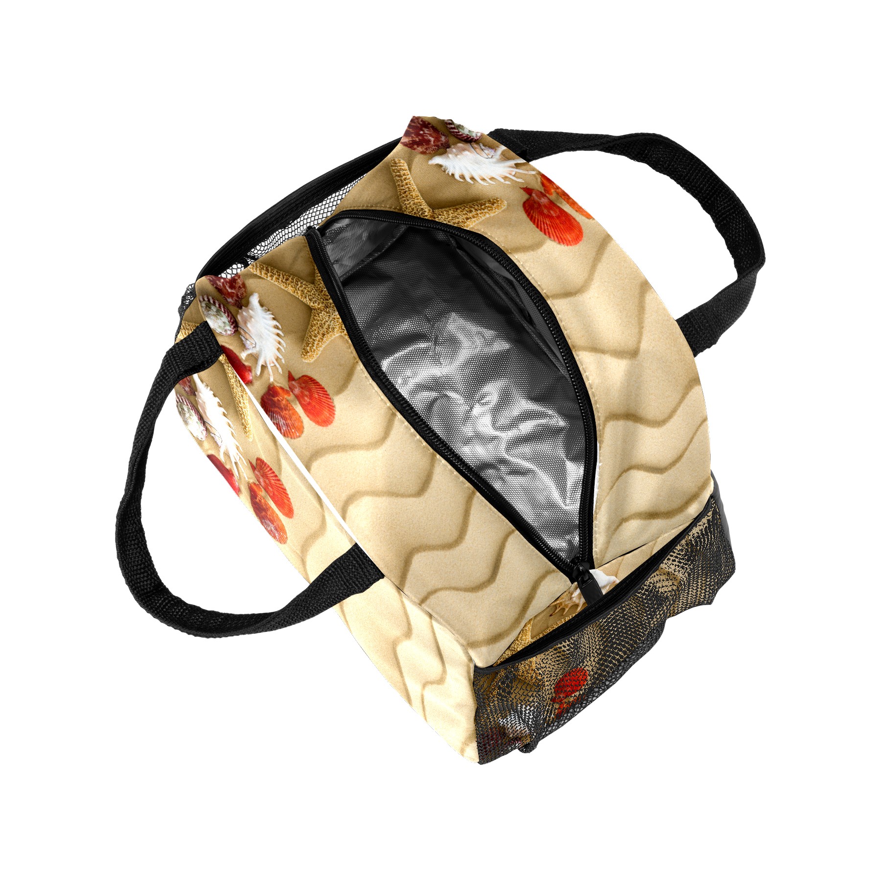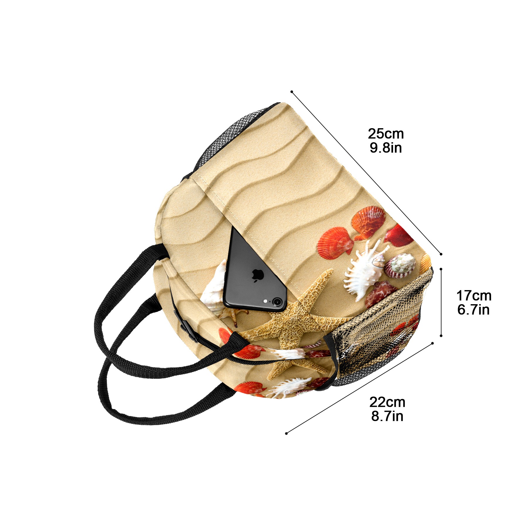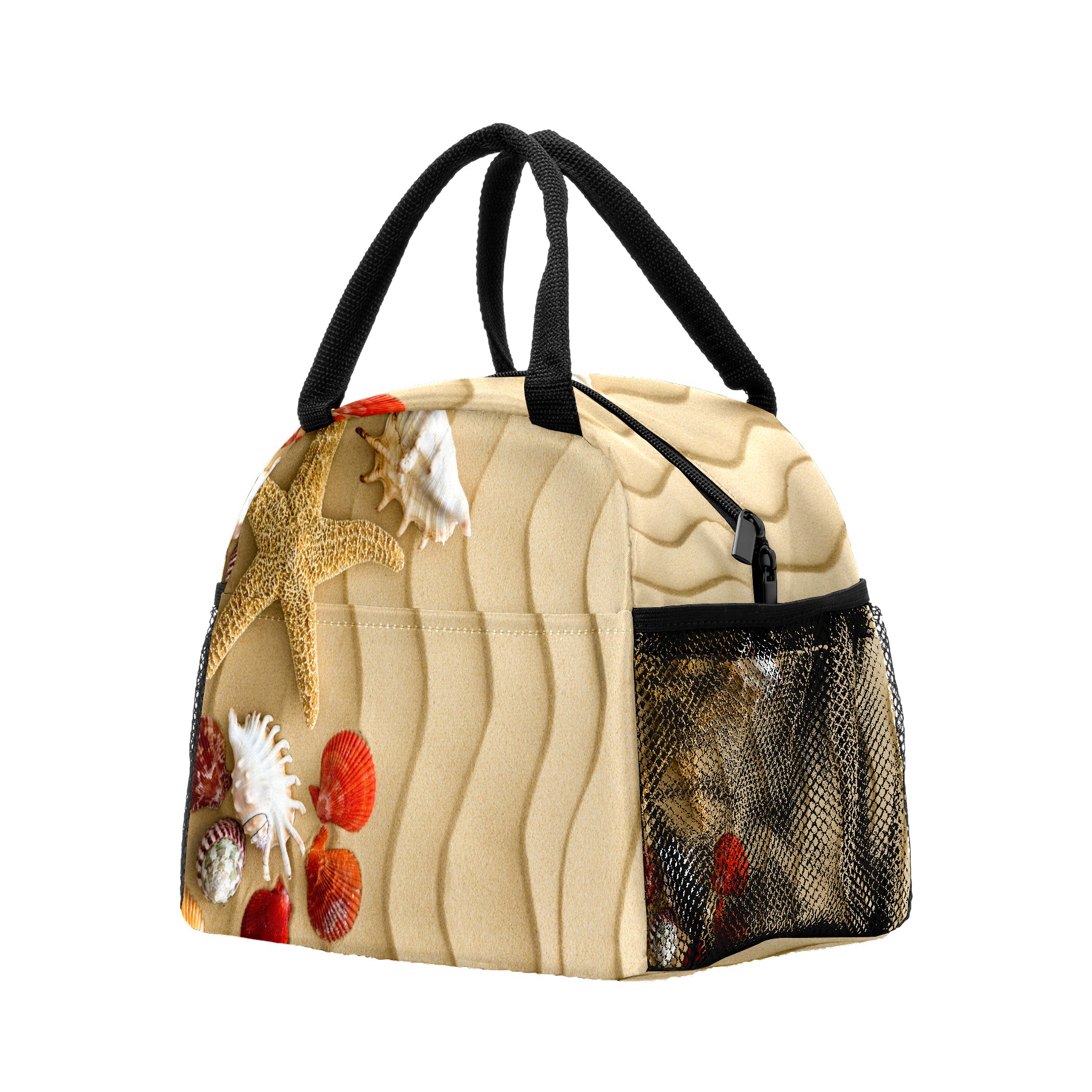 Lunch Bag for Women Men, Summer Beach Sand Seashell Starfish Insulated Reusable Lunch Box Thermal Cooler Tote Bag for Work Picnic Hiking Travel Beach