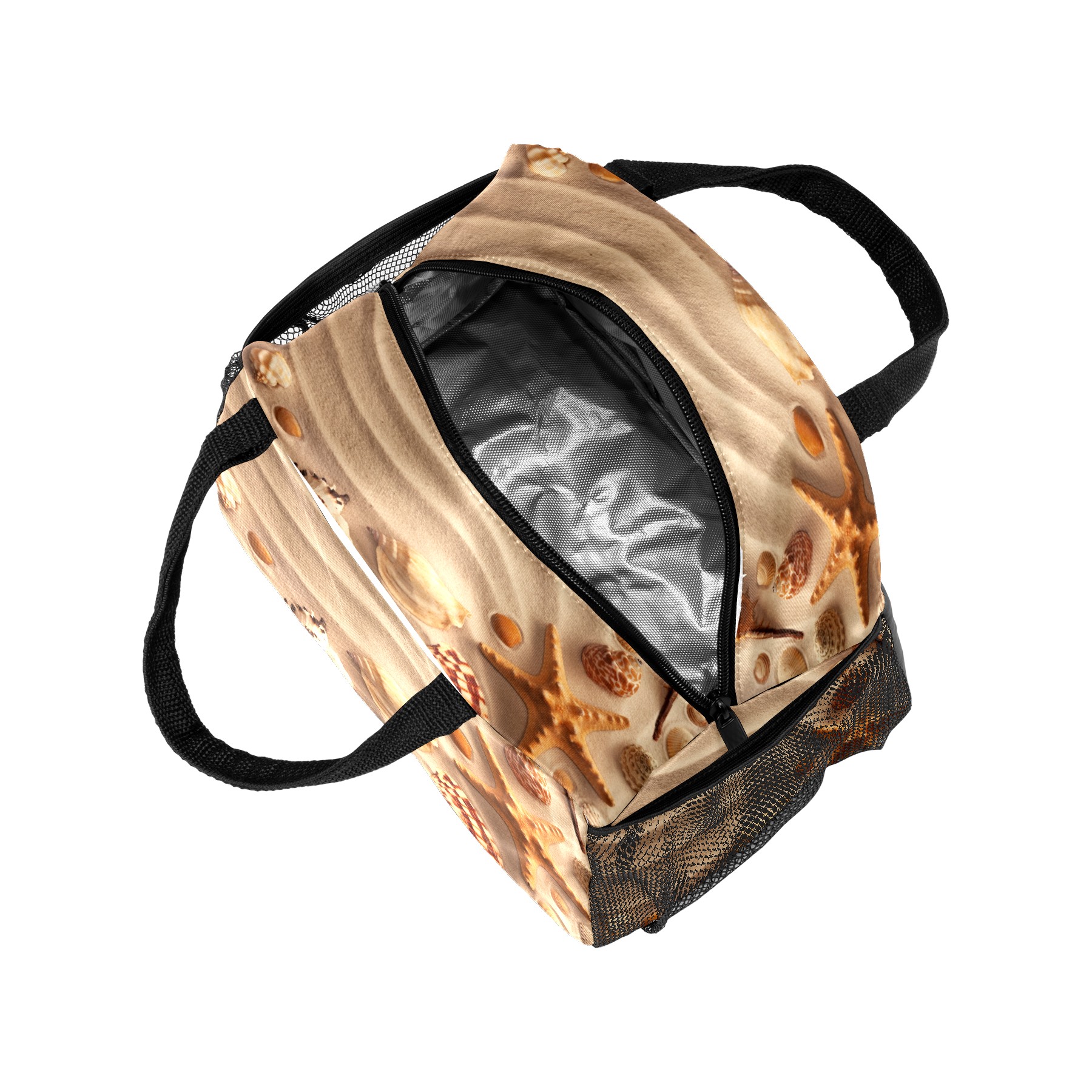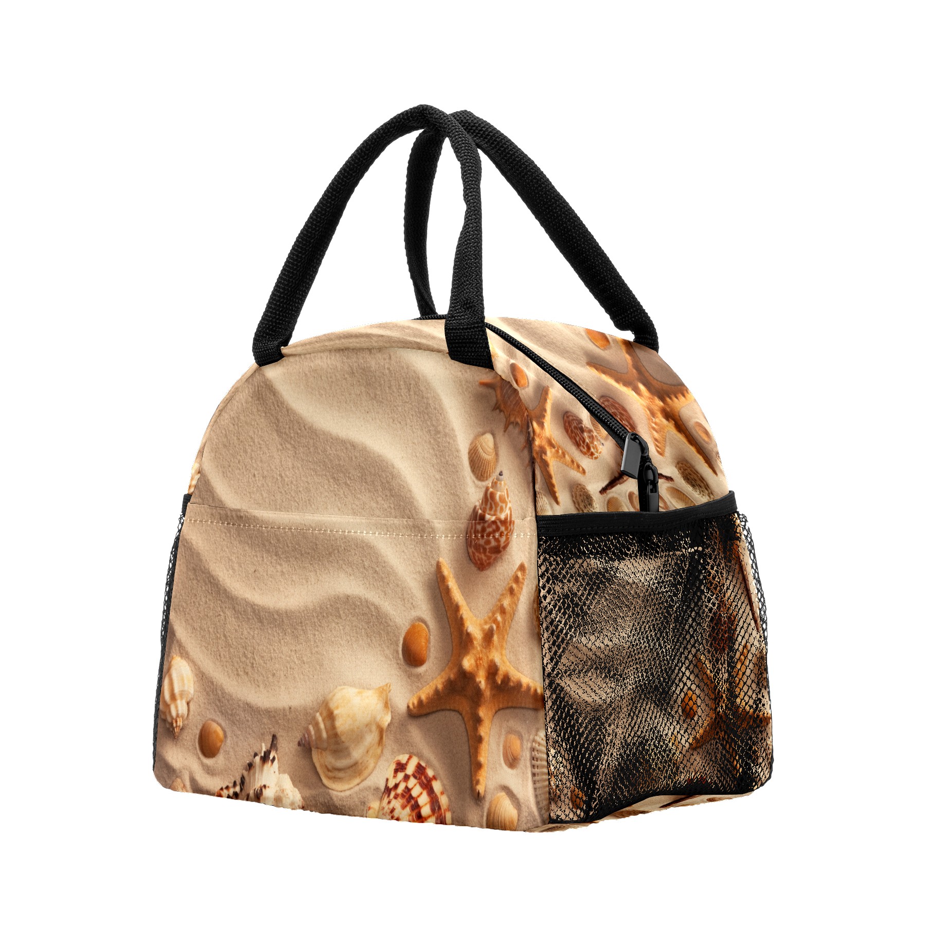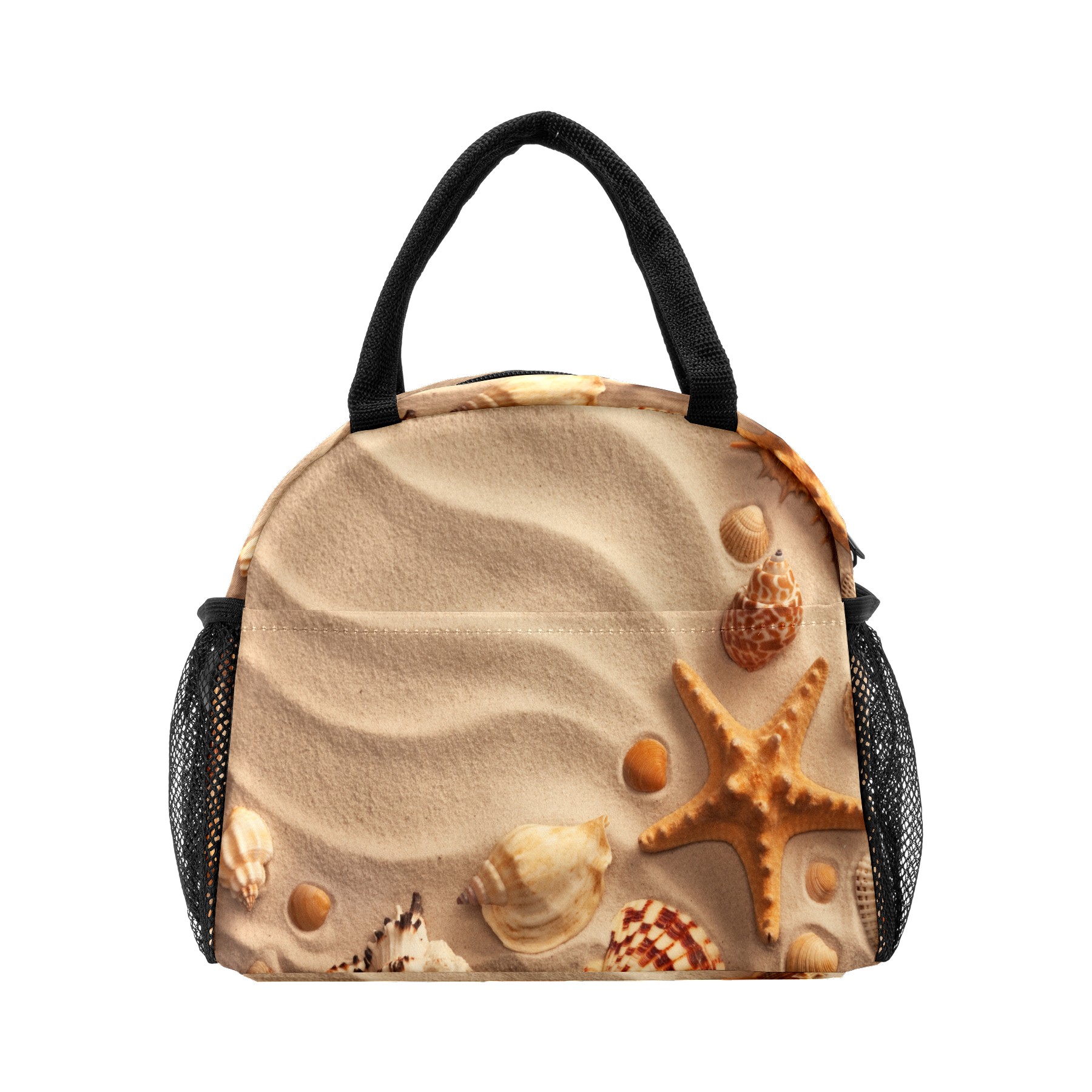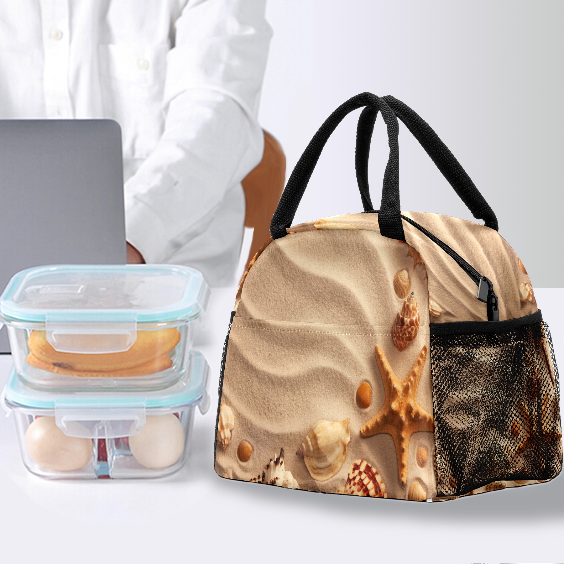Lunch Bag for Women Men, Summer Beach Sand Starfish Seashell Insulated Reusable Lunch Box Thermal Cooler Tote Bag for Work Picnic Hiking Travel Beach
