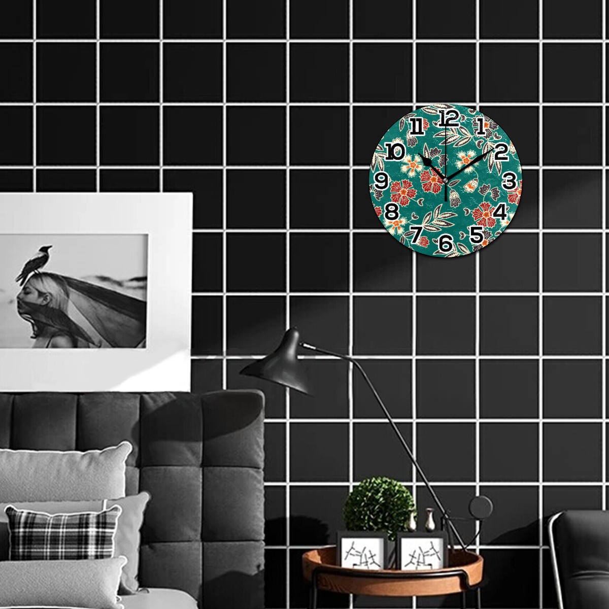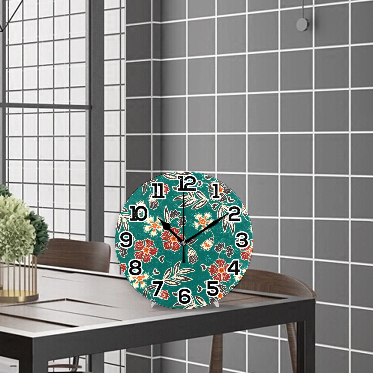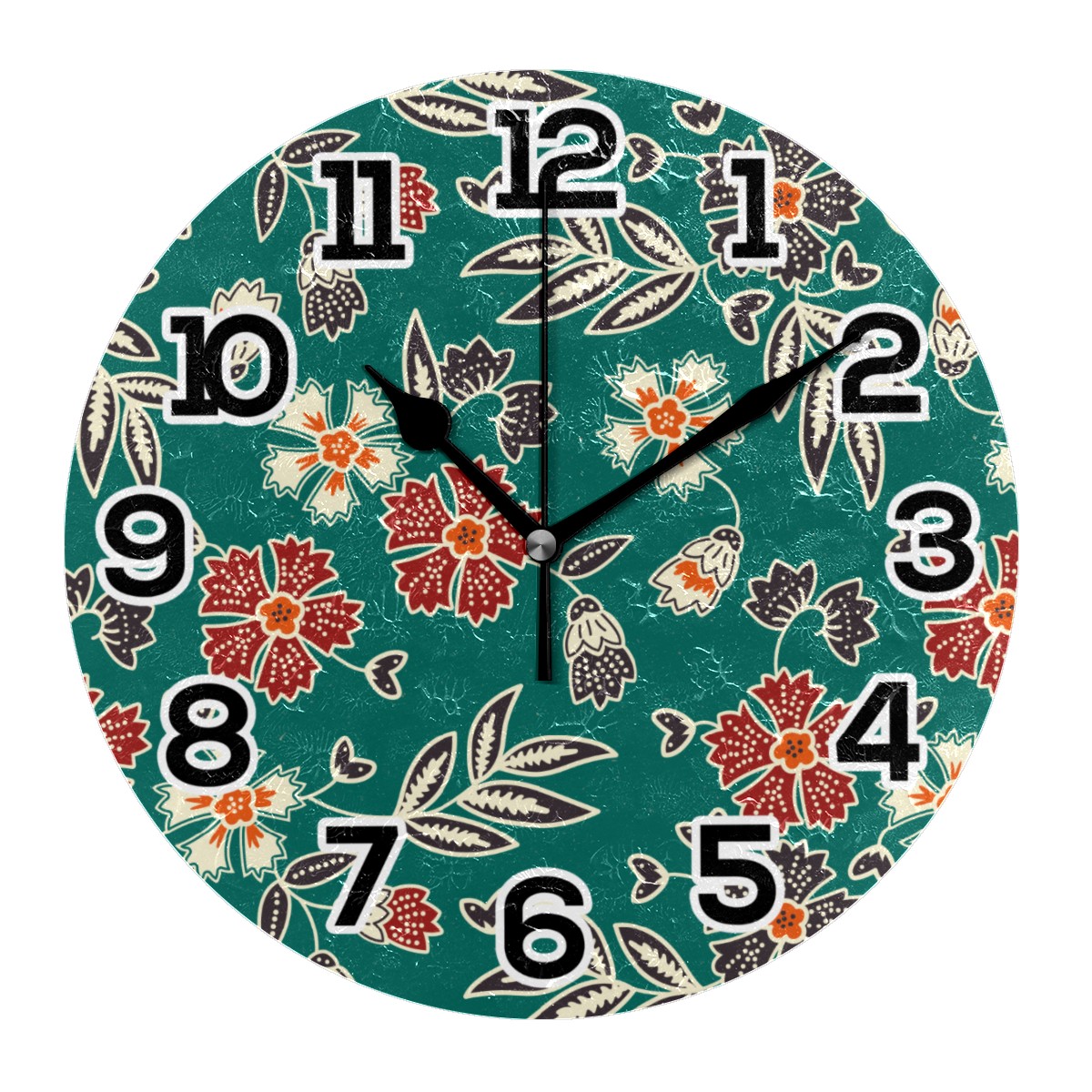 Vintage Floral Print Clock Wall Decor Acrylic Decorative Round Battery Operated Wall Clocks for Home Bedroom Living Room Decor Silent Non Ticking