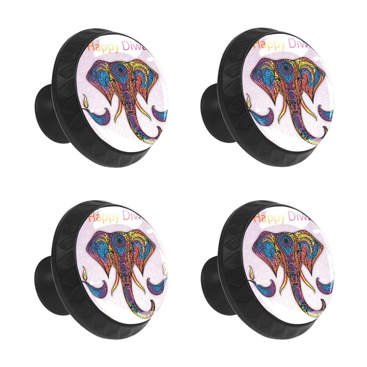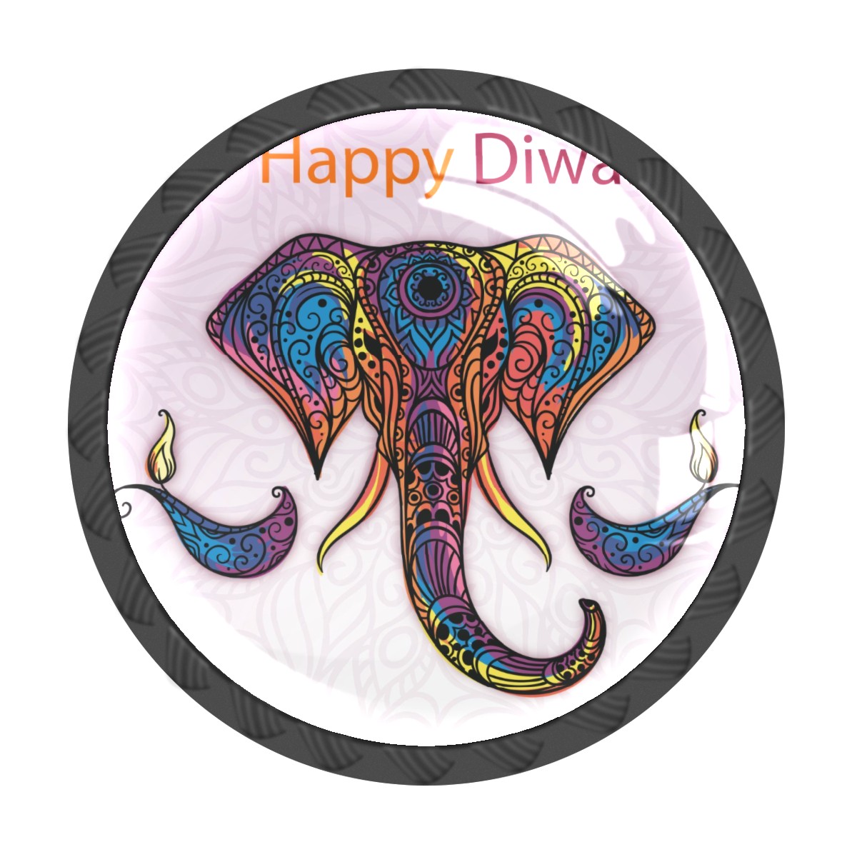 Cabinet Drawer Knobs Set of 4 Hand-drawn-colored-ornamental-elephant-background-happy-diwali Cabinet Furniture Knobs Drawer Pulls Handle Crystal Glass Round Cupboard Knobs with Screws for Cabinets Kitchen Dresser Wardrobe DIY