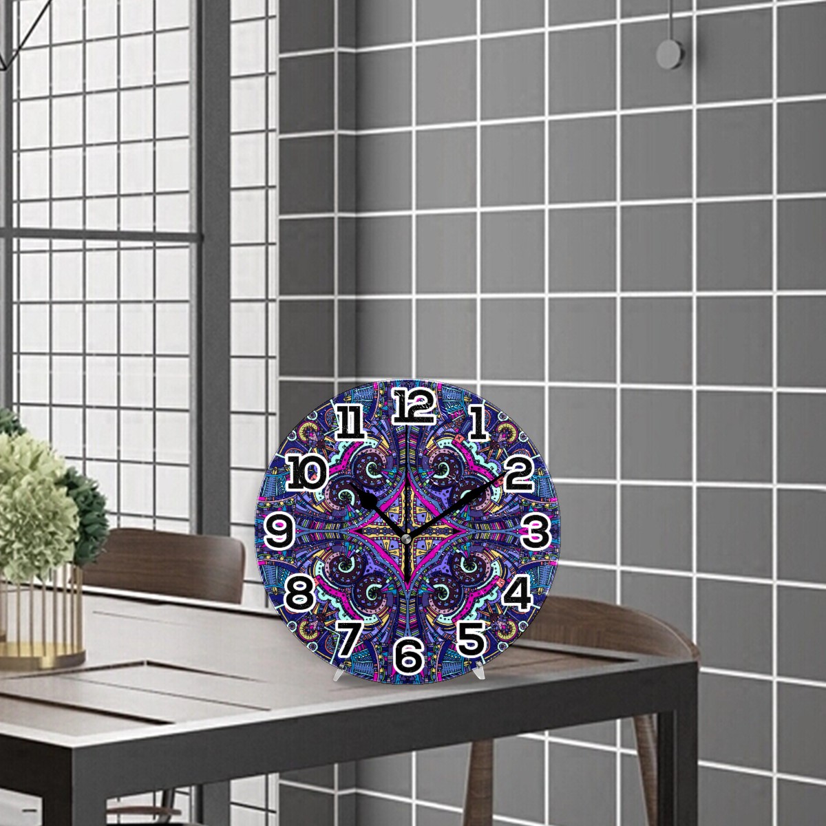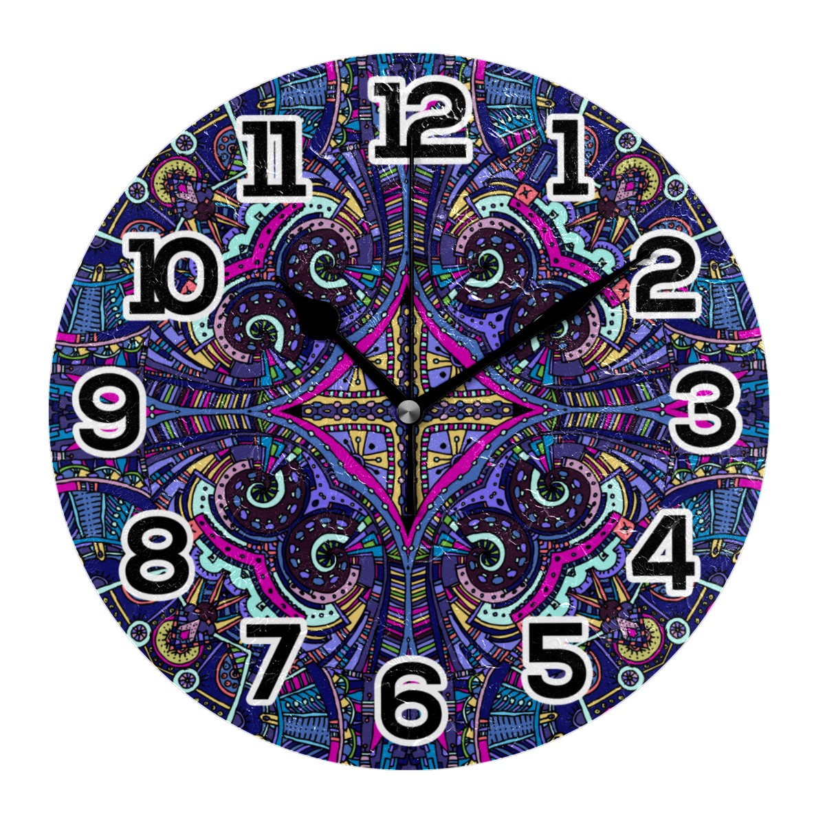 Trippy Mandala Ethnic Boho Floral Print Clock Wall Decor Acrylic Decorative Round Battery Operated Wall Clocks for Home Bedroom Living Room Decor Silent Non Ticking