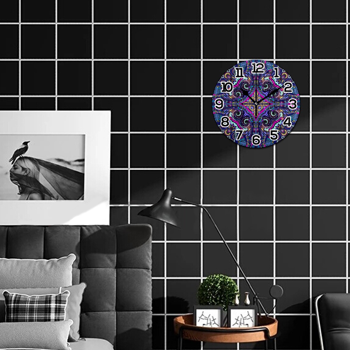 • <p>Our wall clock is perfect for hanging outdoors or indoors,&nbsp; living room, bedroom, kitchen, bathroom, office, dining room, sewing room or any other room. Beautify your space, bring different color to your space. It is not only a decoration, but also a great gift for Christmas/Birthday/Kids/Family/Friend.</p><p></p><p>Product Size: 9.5" diameter x 0.25" thickness;</p><p></p><p>Material: MDF frame, Wood mechanism housing, Metal clock hands.</p><p></p><p>Non ticking: Quiet sweep second hand, no ticking to ensure a good sleeping or working environment.</p><p></p><p>Power Source: 1 x AA battery(not included)</p><p></p><p>Package Included: ONE Wall Clock</p><p></p><p>LARGE NUMBER</p><p>Large white numbers on the dark wood dial face, easy to see from a distance or side. Perfect for grandpa and grandma, parents or any others have poor sight.</p><p>Silent Movement</p><p>Quality Scanning Quartz Movement ensure accurate time and absolutely silent environment. Not bother you reading, working, thinking, conversing or sleeping.</p><p>CUSTOMER SERIVCE</p><p>Please feel free to contact us if you have any questions.</p>