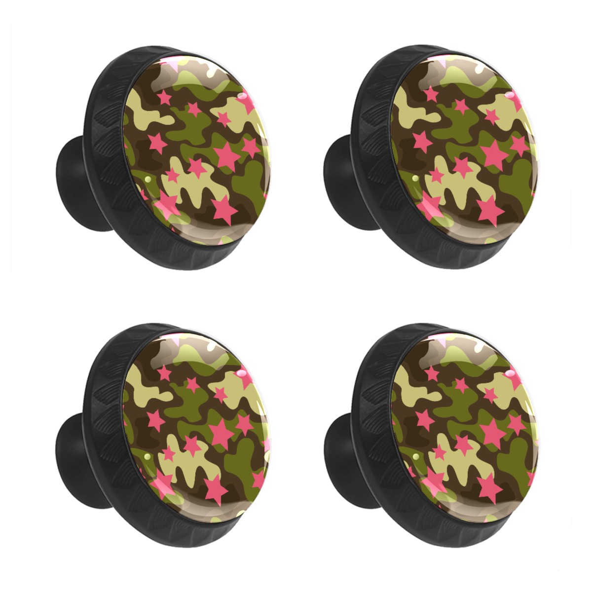 Cabinet Drawer Knobs Set of 4 Pink Star Pattern Camouflage Color Cabinet Furniture Knobs Drawer Pulls Handle Crystal Glass Round Cupboard Knobs with Screws for Cabinets Kitchen Dresser Wardrobe DIY